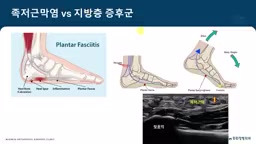 진단: 초음파 검사 시 족저근막의 두께가 두꺼워져 있음을 확인할 수 있다 .