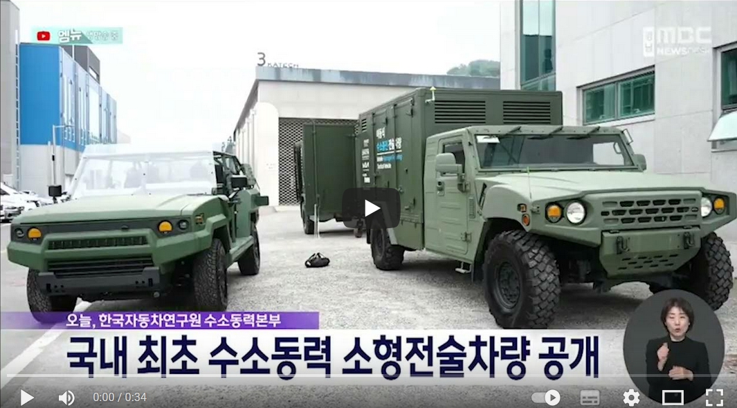 한국 자동차 연구원은 창원 수소동력본부에서 국내 최초로 수소연료전지를 탑재한 전술 차량을 공개하였다.