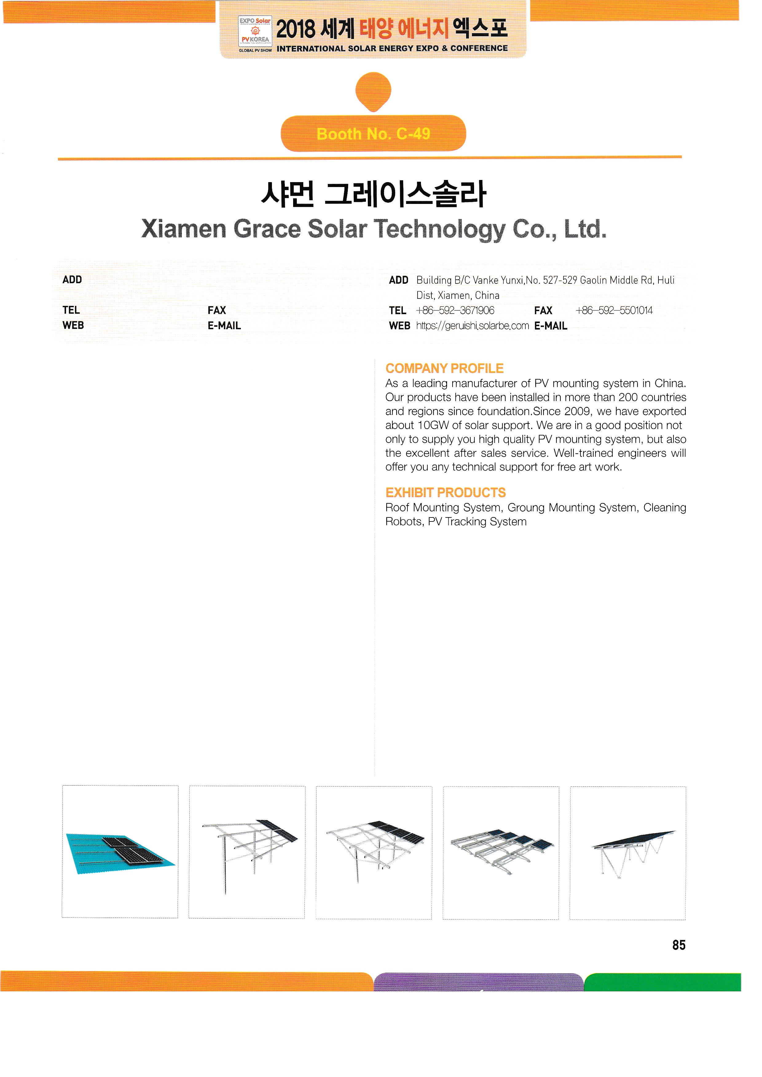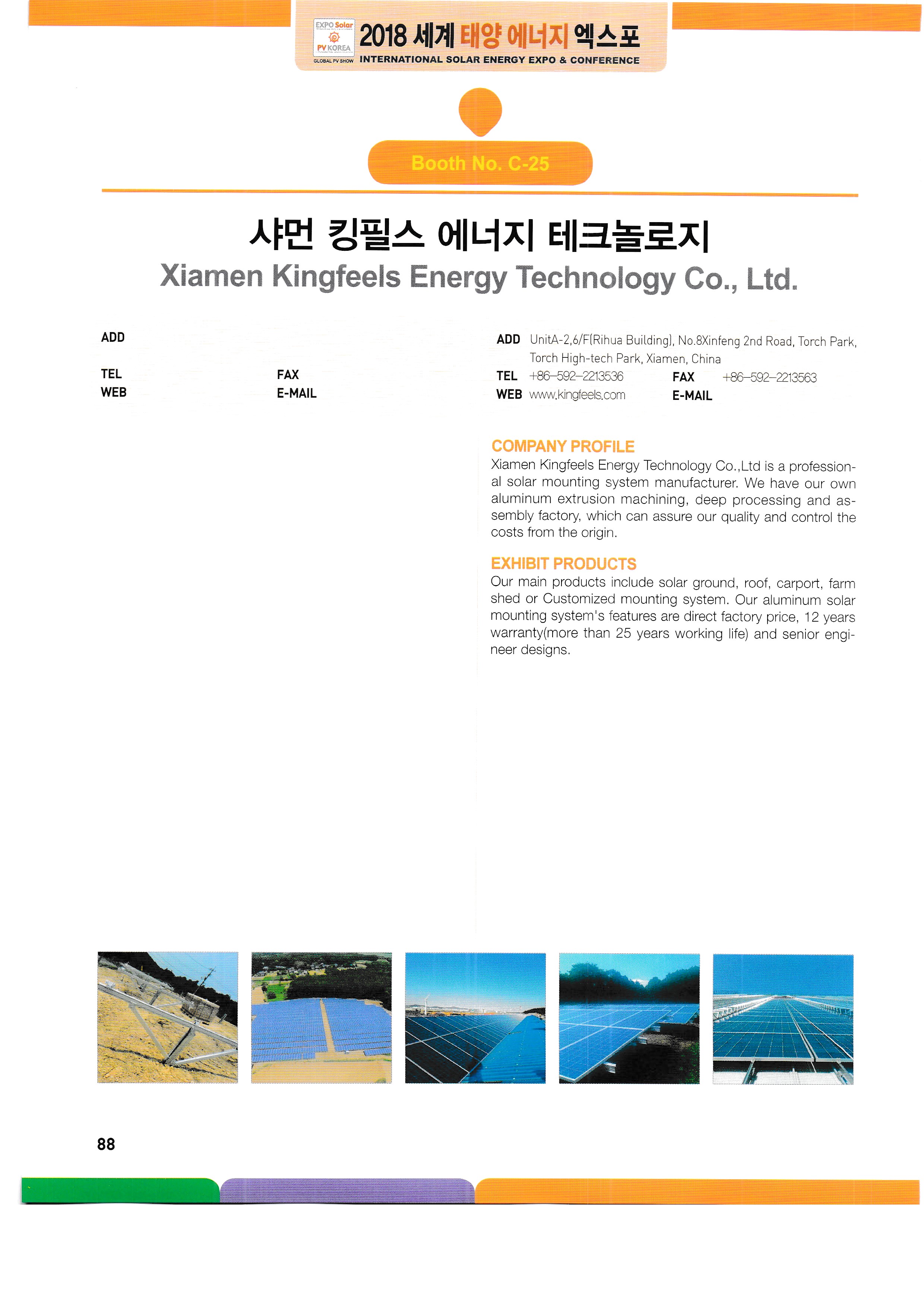 Xiamen Grace Solar و Xiamen Kissen و Xiamen Kingstar New Energy Tech و Xiamen Parson Solar Technology و Xiamen Photons Solar Technology و Seoul Energy Corporation و Sunman Shanghai و Shenyang و Sun Software و Seongchang و Sehwa Energy Industries و Solar Light و Solar Korea ، تعويم الأرز بالطاقة الشمسية ، المطارد الشمسي ، الاتصال الشمسي ، Solar Today Carbon Zero ، Solar Flex ، Scotra ، Stin Korea ، Shinbon Technology ، Shinsung ENG ، Shinsung Control ، Shinwoo Industry ، Shin SCC ، Shenzhen Kesta ،