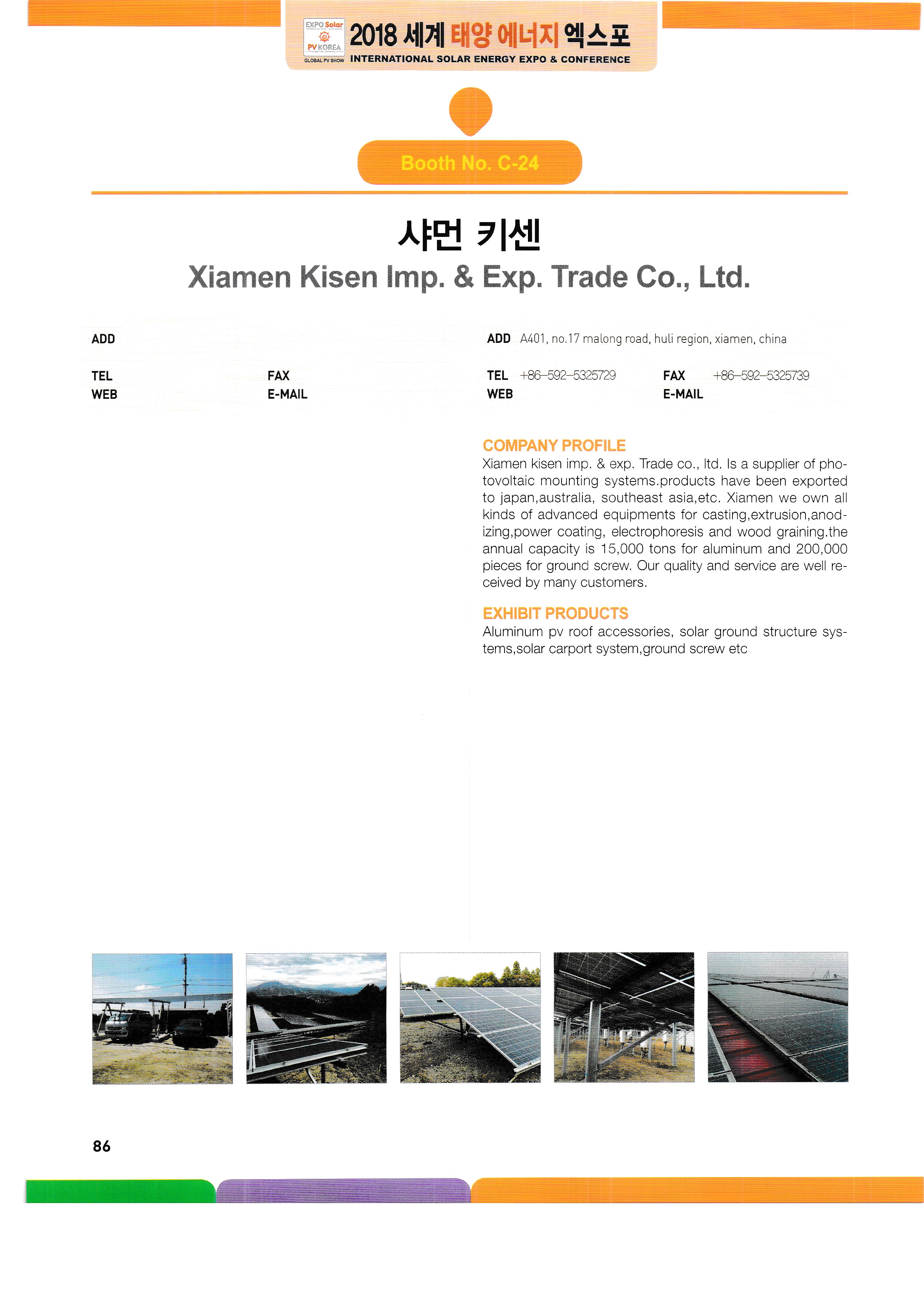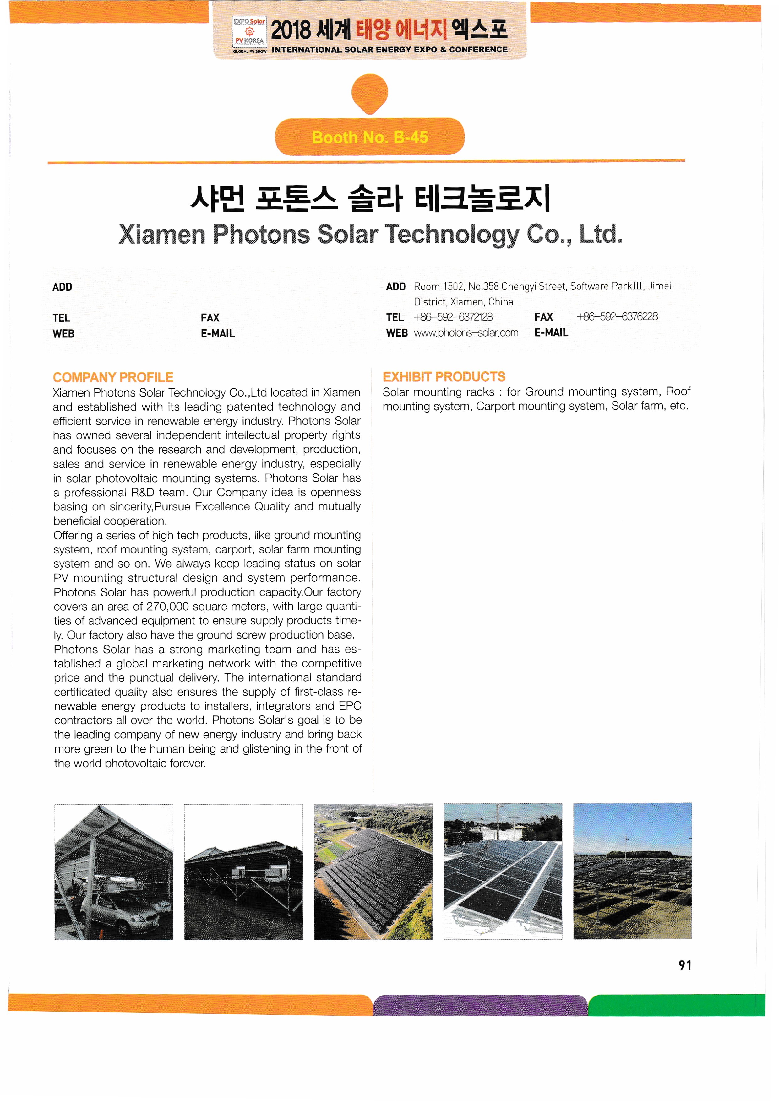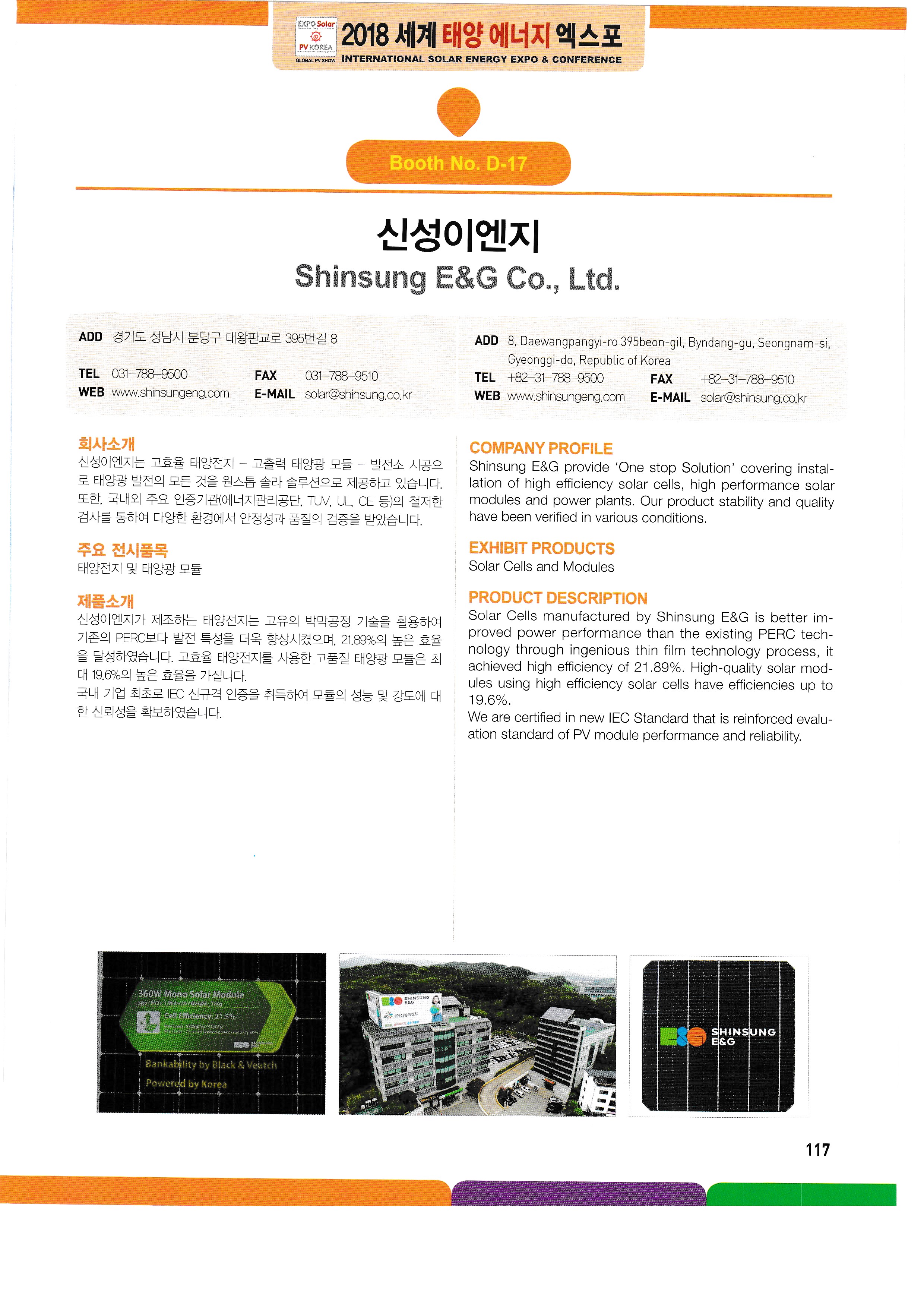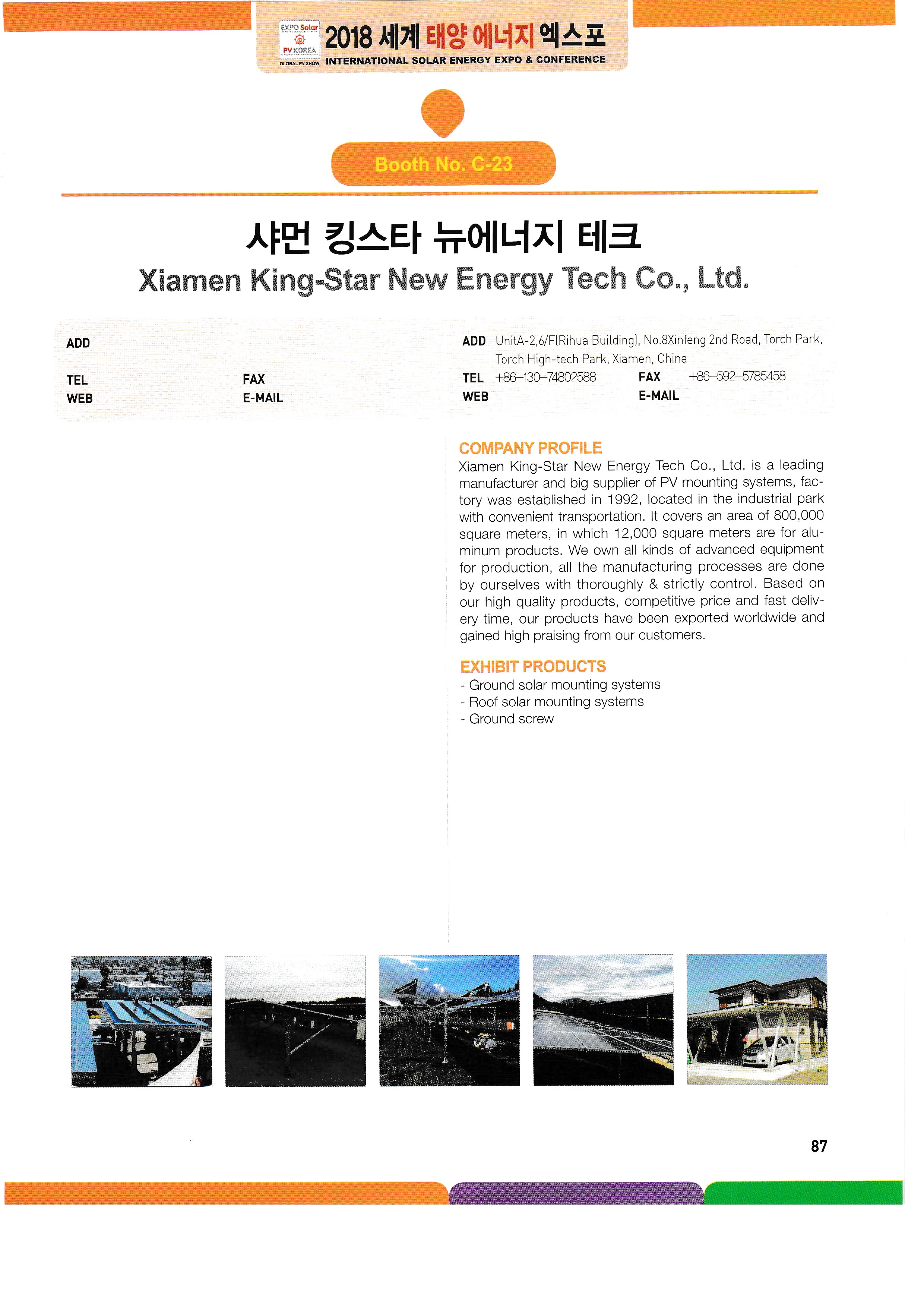 샤먼 그레이스솔라, 샤먼 키센, 샤먼 킹스타 뉴에너지 테크, 샤먼 패슨 솔라 테크놀로지, 샤먼 포톤스 솔라 테크놀로지, 서울에너지공사, 선맨 상해, 선방, 선소프트웨어, 성창, 세화에너지산업, 솔라라이트, 솔라시스코리아, 솔라이스플롯, 솔라체이서, 솔라커넥트, 솔라투데이 탄소제로, 솔라플렉스, 스코트라, 스틴코리아, 신본테크놀로지, 신성이엔지, 신성컨트롤, 신우산업, 신흐에스이씨, 심천 케이스타,