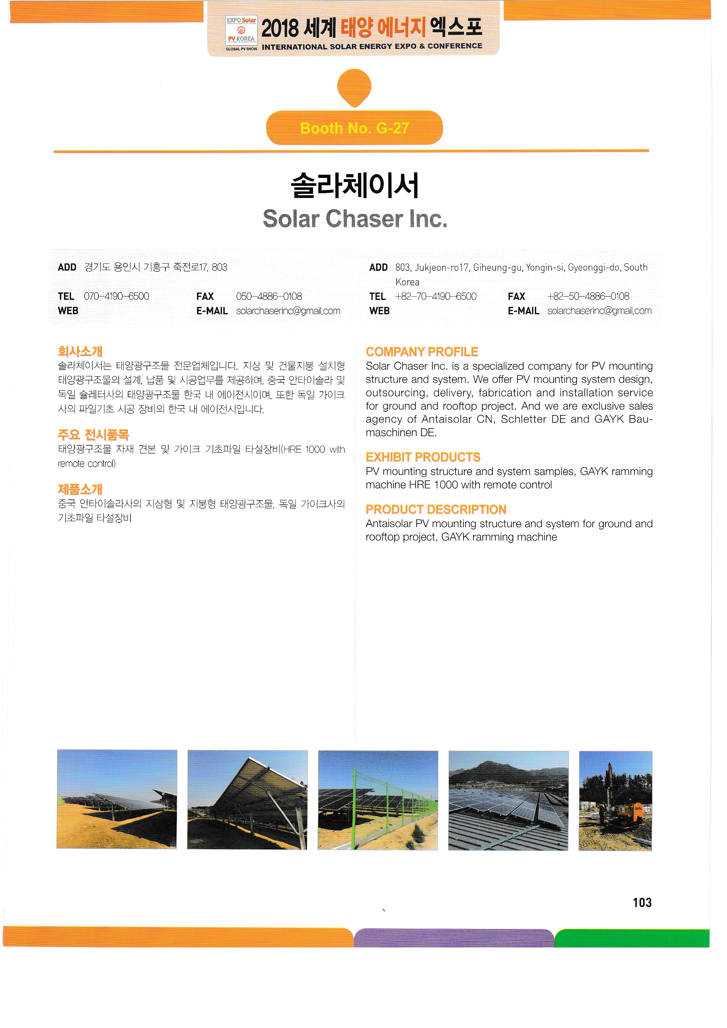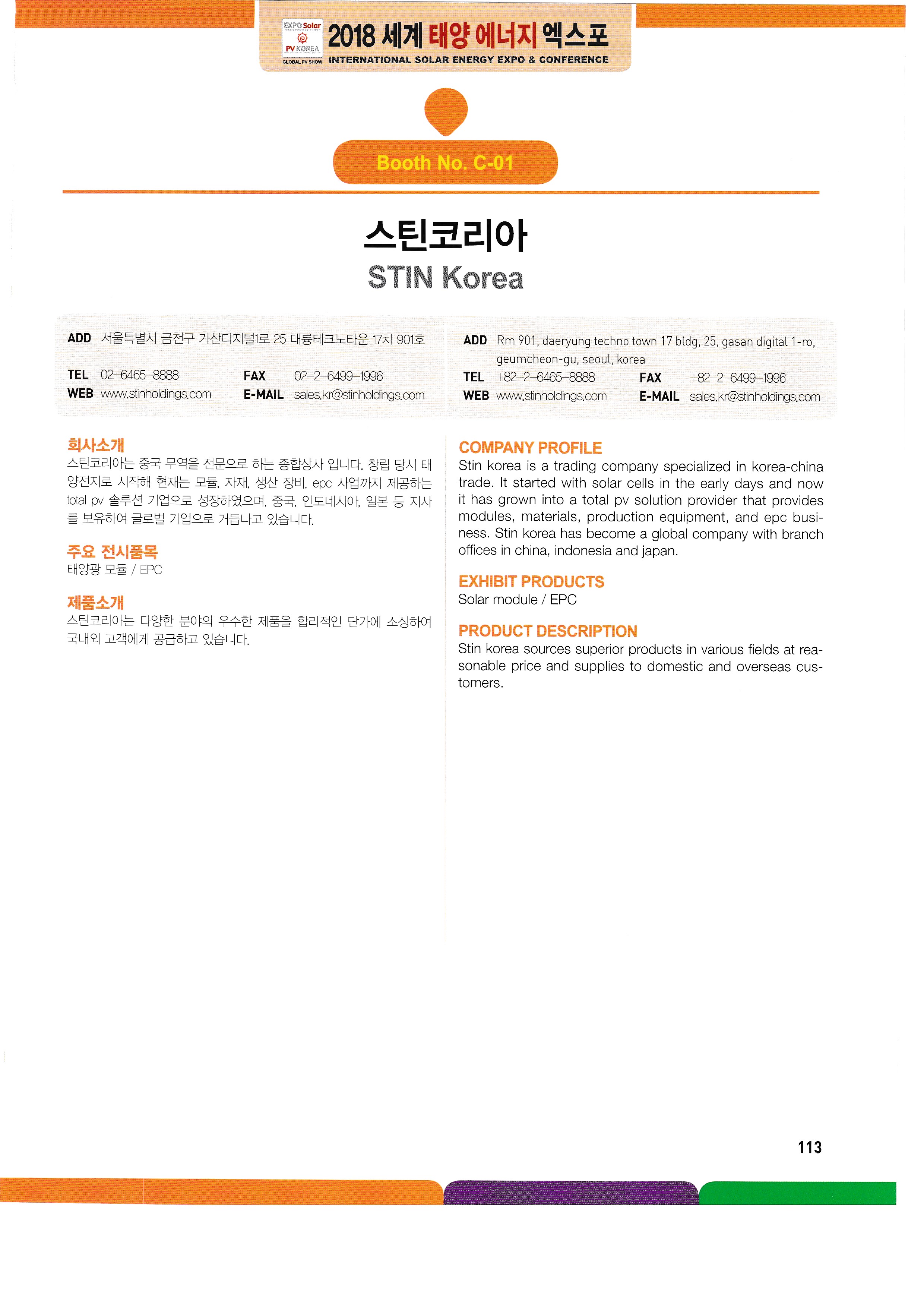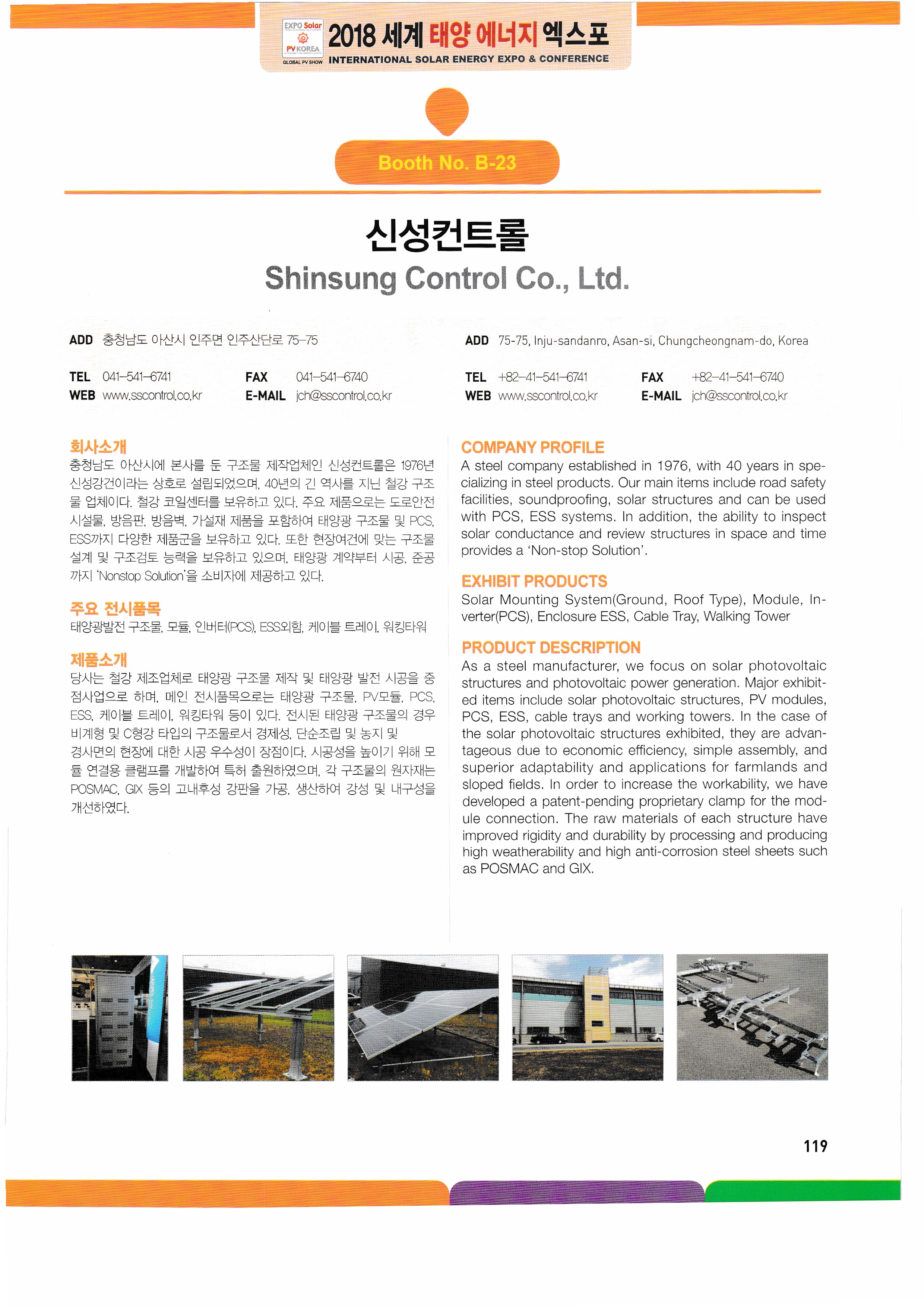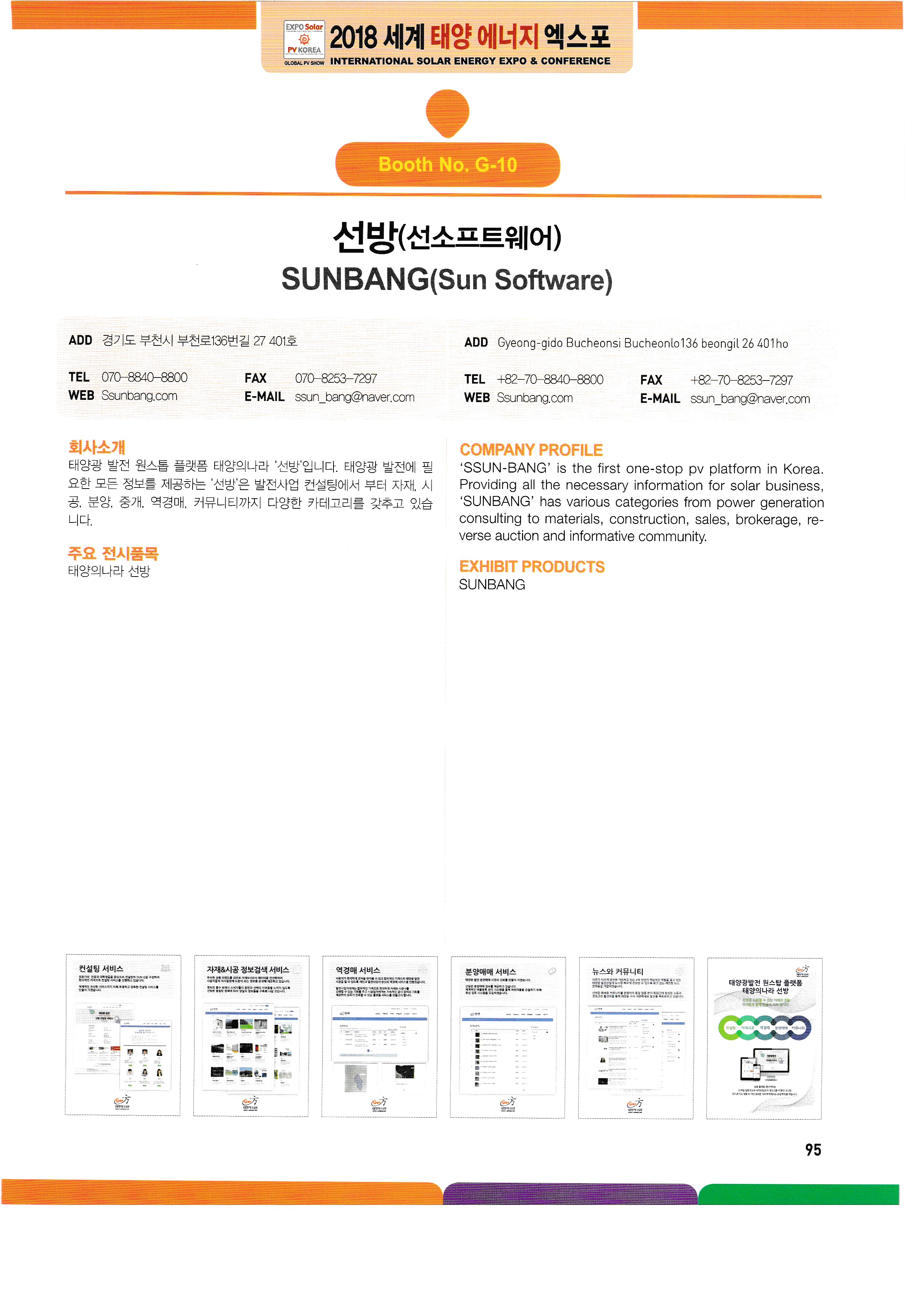 샤먼 그레이스솔라, 샤먼 키센, 샤먼 킹스타 뉴에너지 테크, 샤먼 패슨 솔라 테크놀로지, 샤먼 포톤스 솔라 테크놀로지, 서울에너지공사, 선맨 상해, 선방, 선소프트웨어, 성창, 세화에너지산업, 솔라라이트, 솔라시스코리아, 솔라이스플롯, 솔라체이서, 솔라커넥트, 솔라투데이 탄소제로, 솔라플렉스, 스코트라, 스틴코리아, 신본테크놀로지, 신성이엔지, 신성컨트롤, 신우산업, 신흐에스이씨, 심천 케이스타,