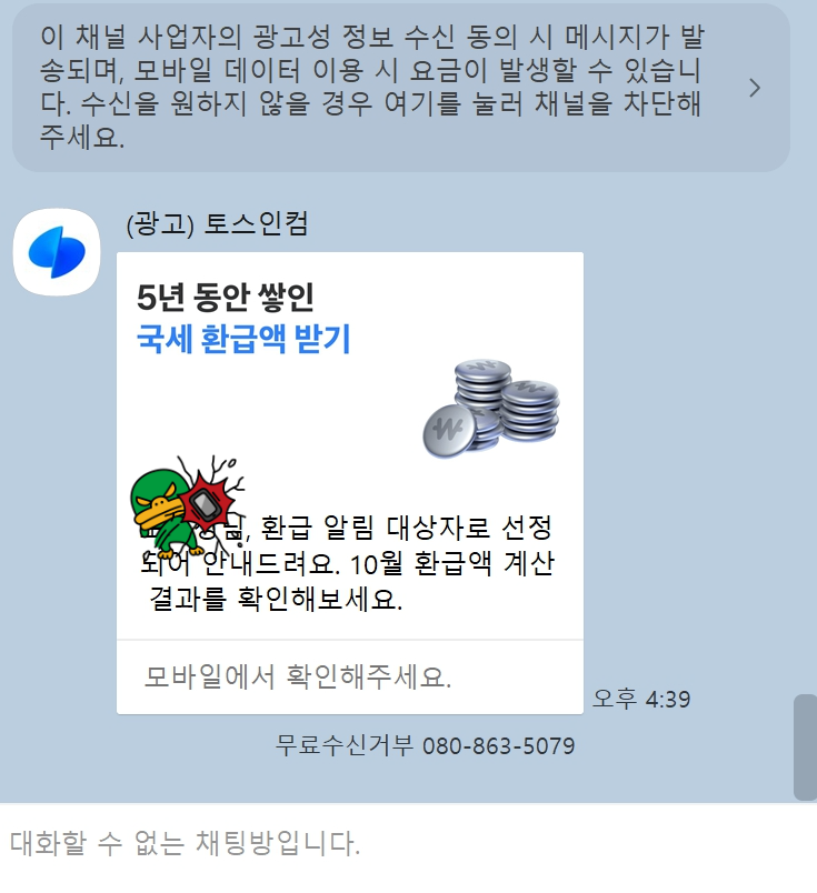 "환급알림대상자" 라는 미꾸라지성 발언으로 광고를 클릭하게 장난질을 한다.