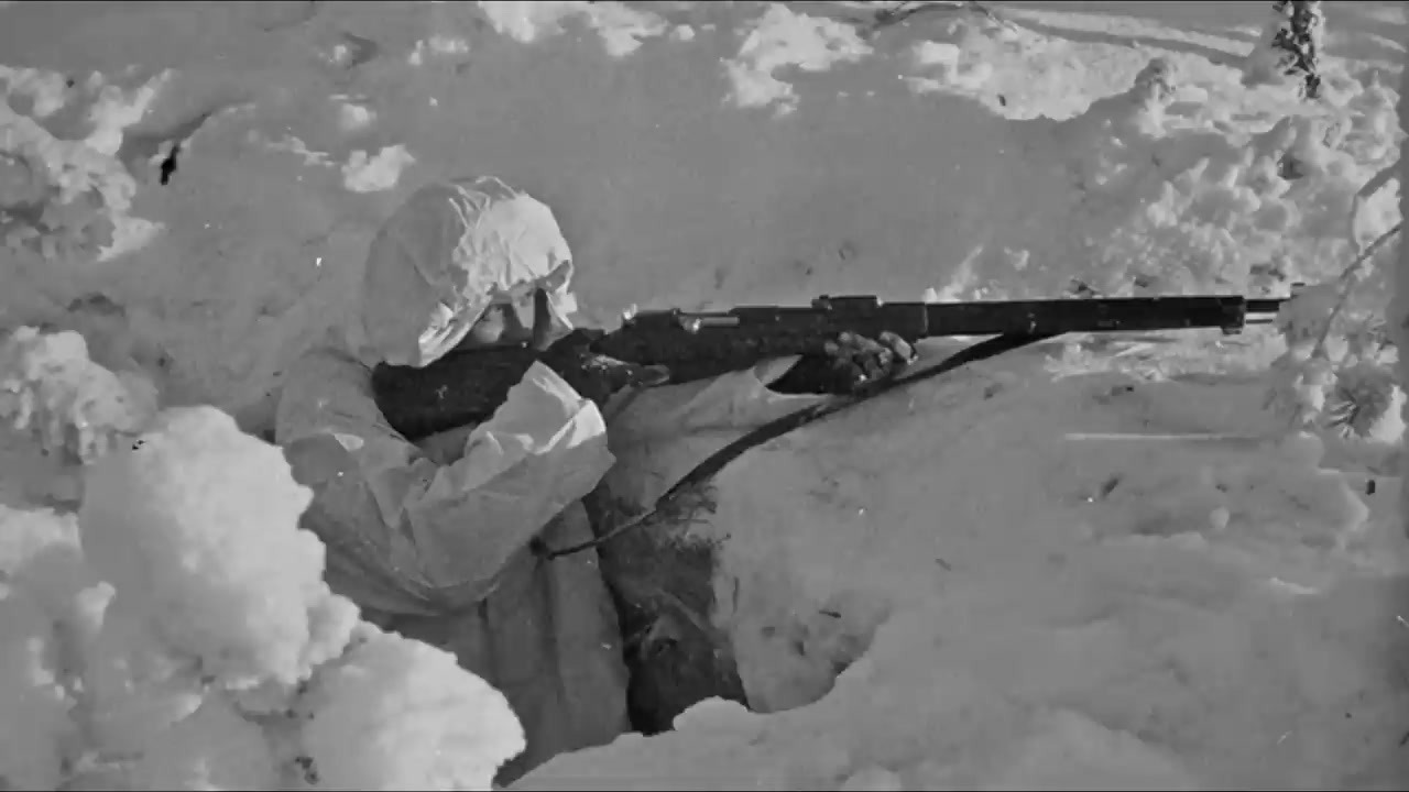 그는 홀로 스키를 타고 소련군 진지 뒤편 무인지대로 들어가 은신처를 만들고 기다렸습니다.