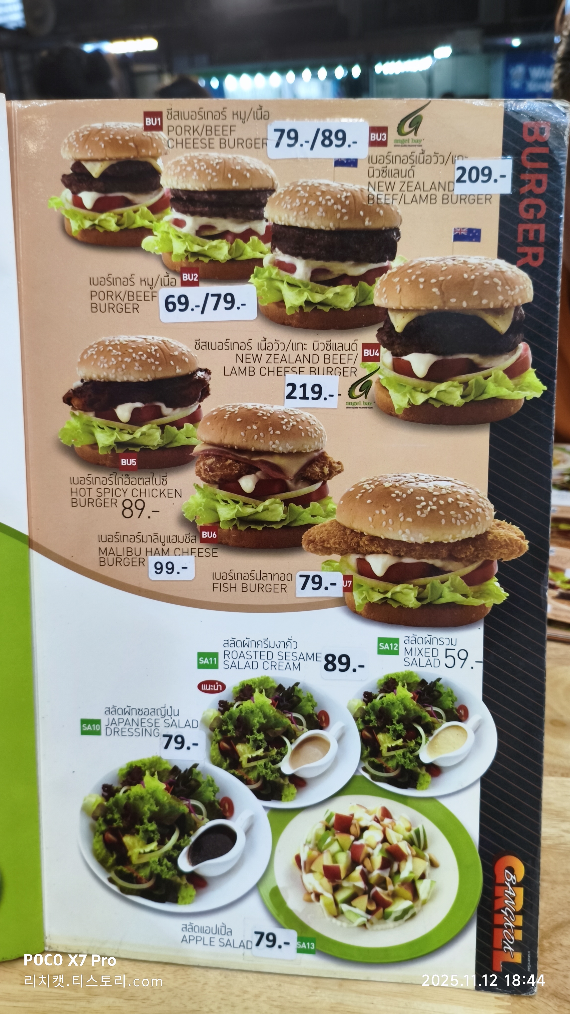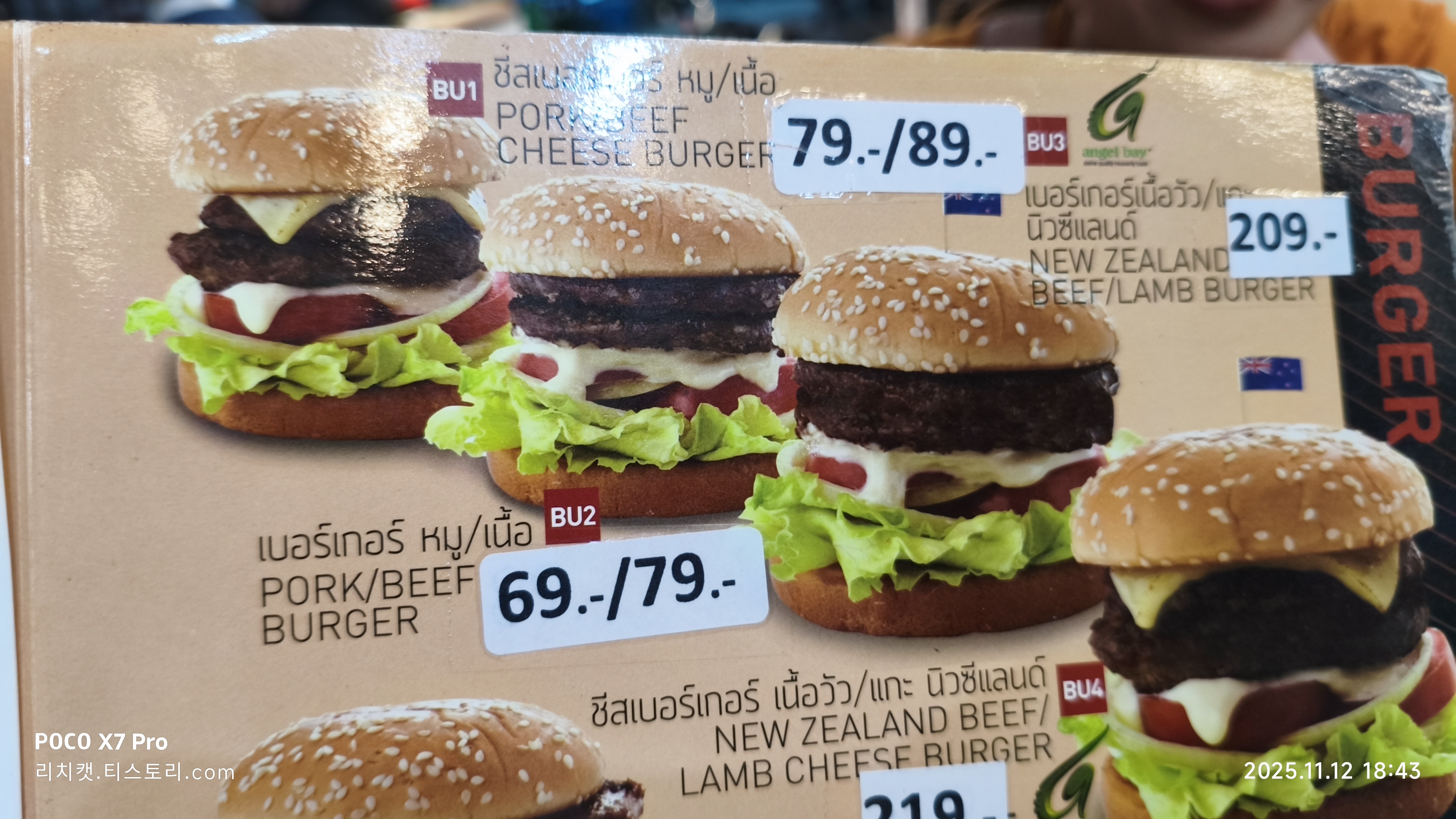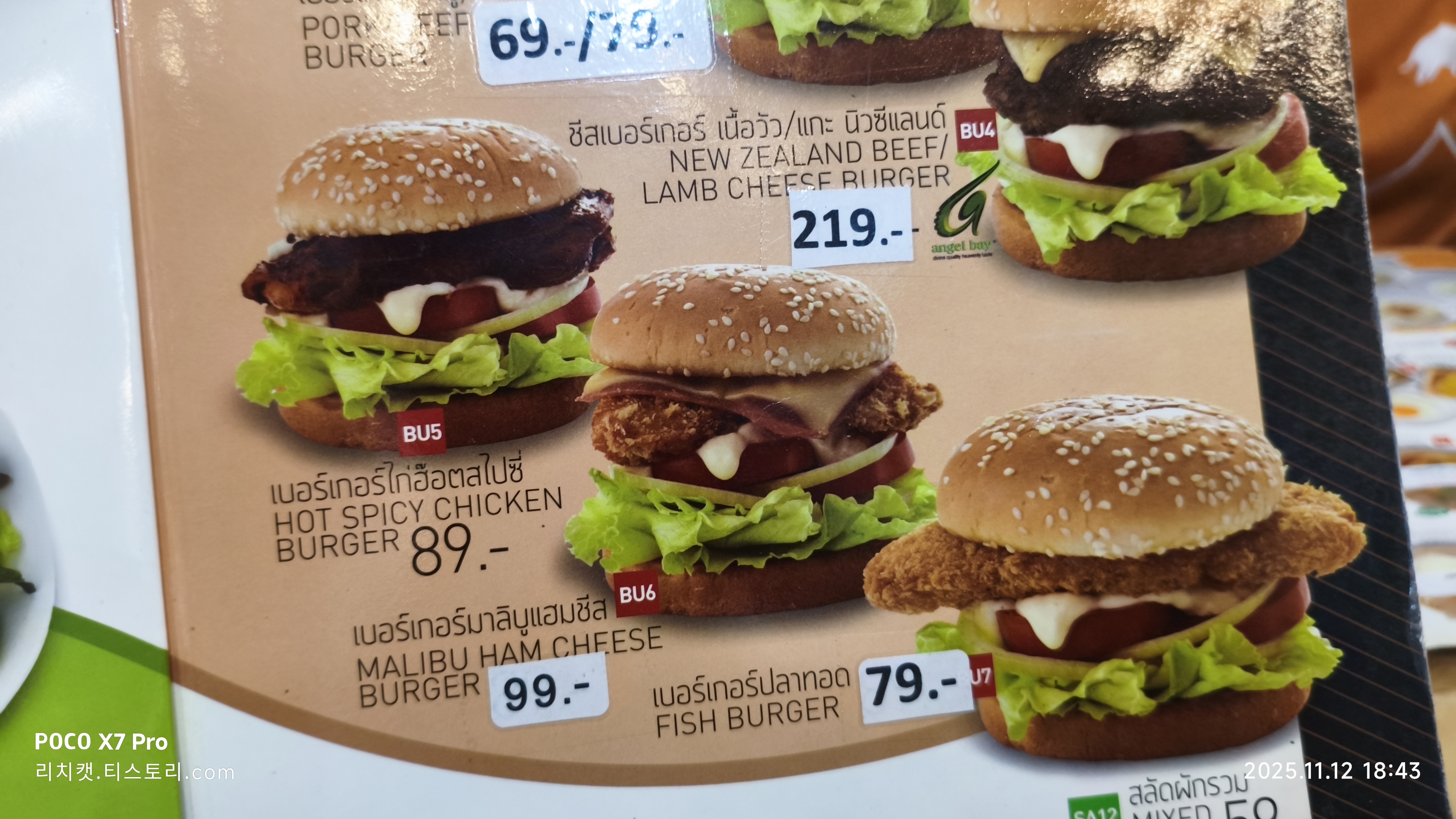 햄버거 시장조사. 태국 대학로 경양식집 음식가격