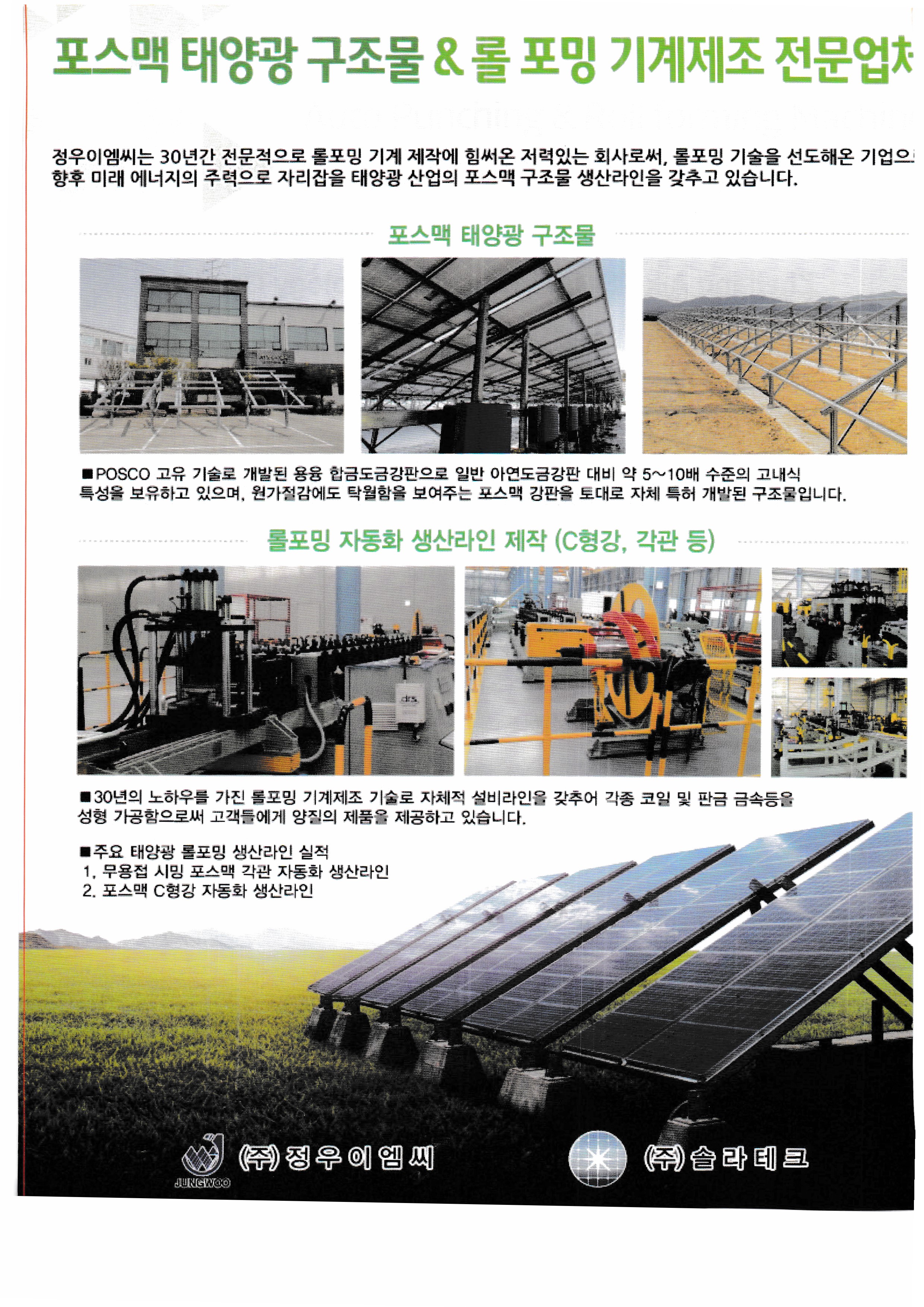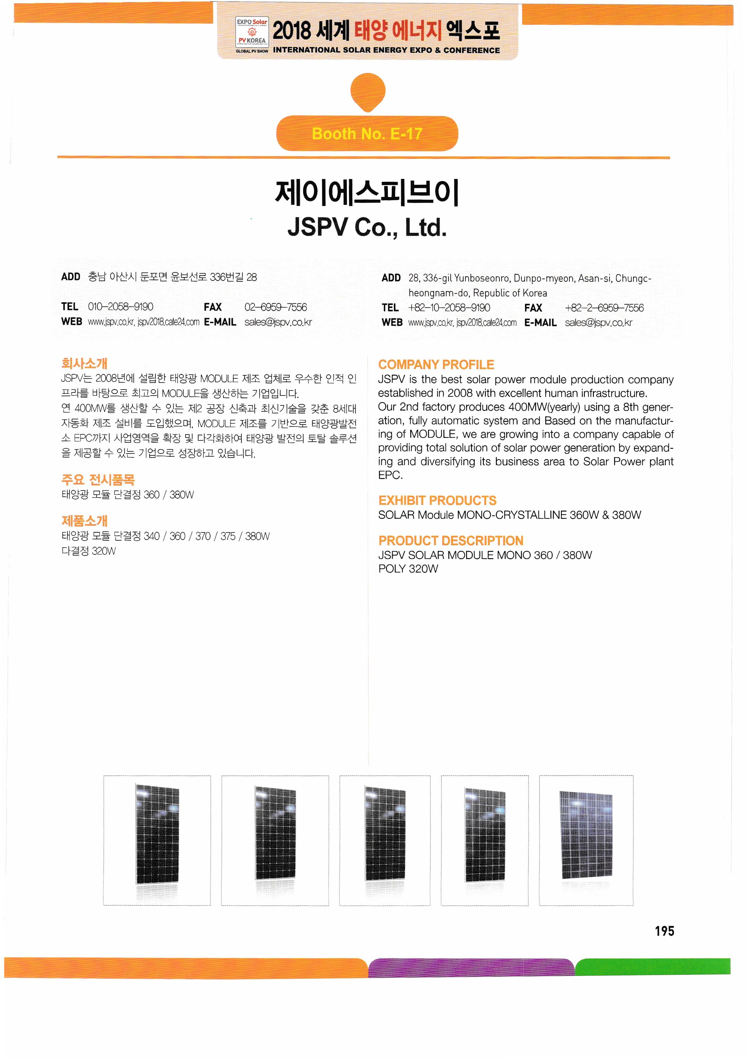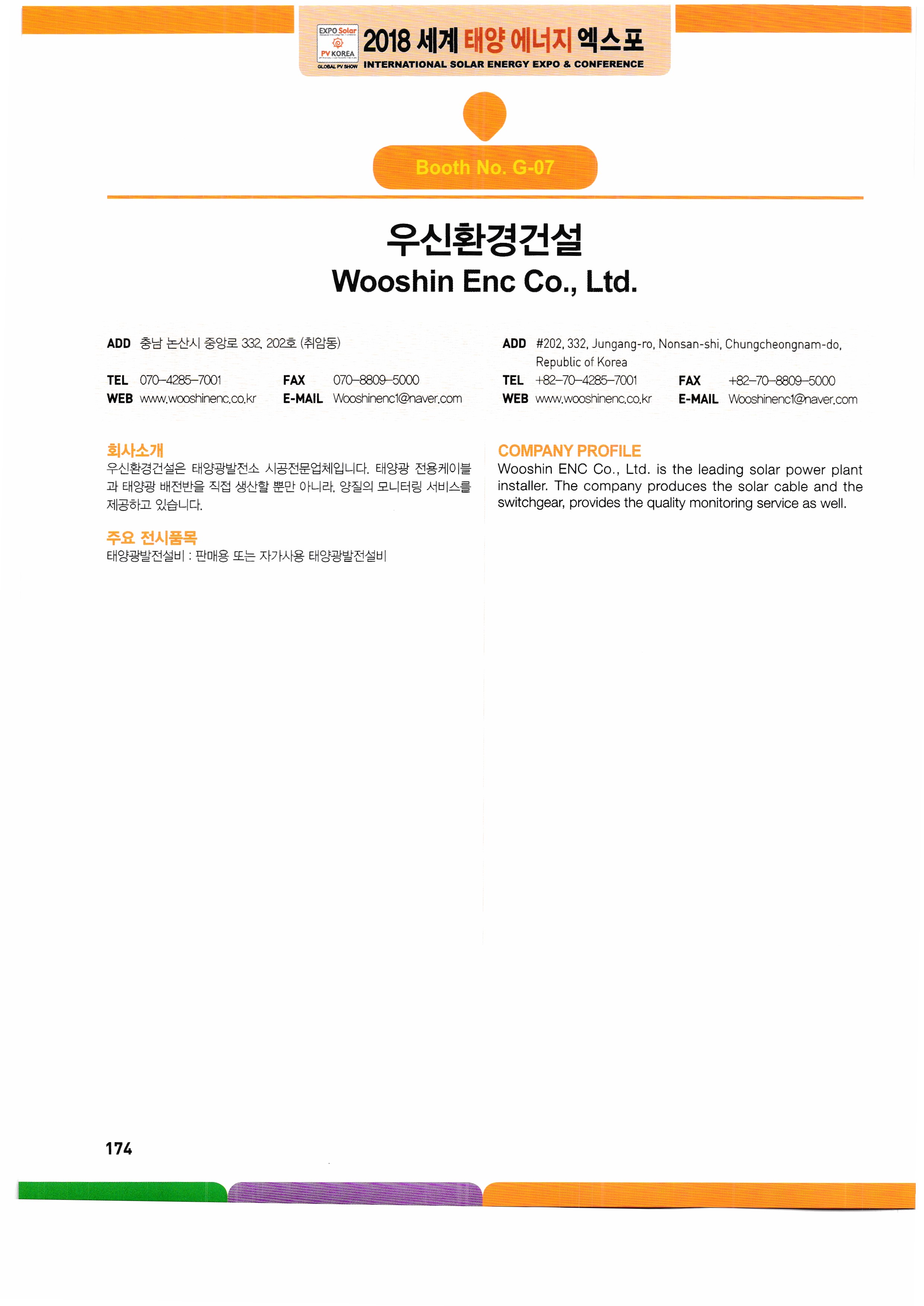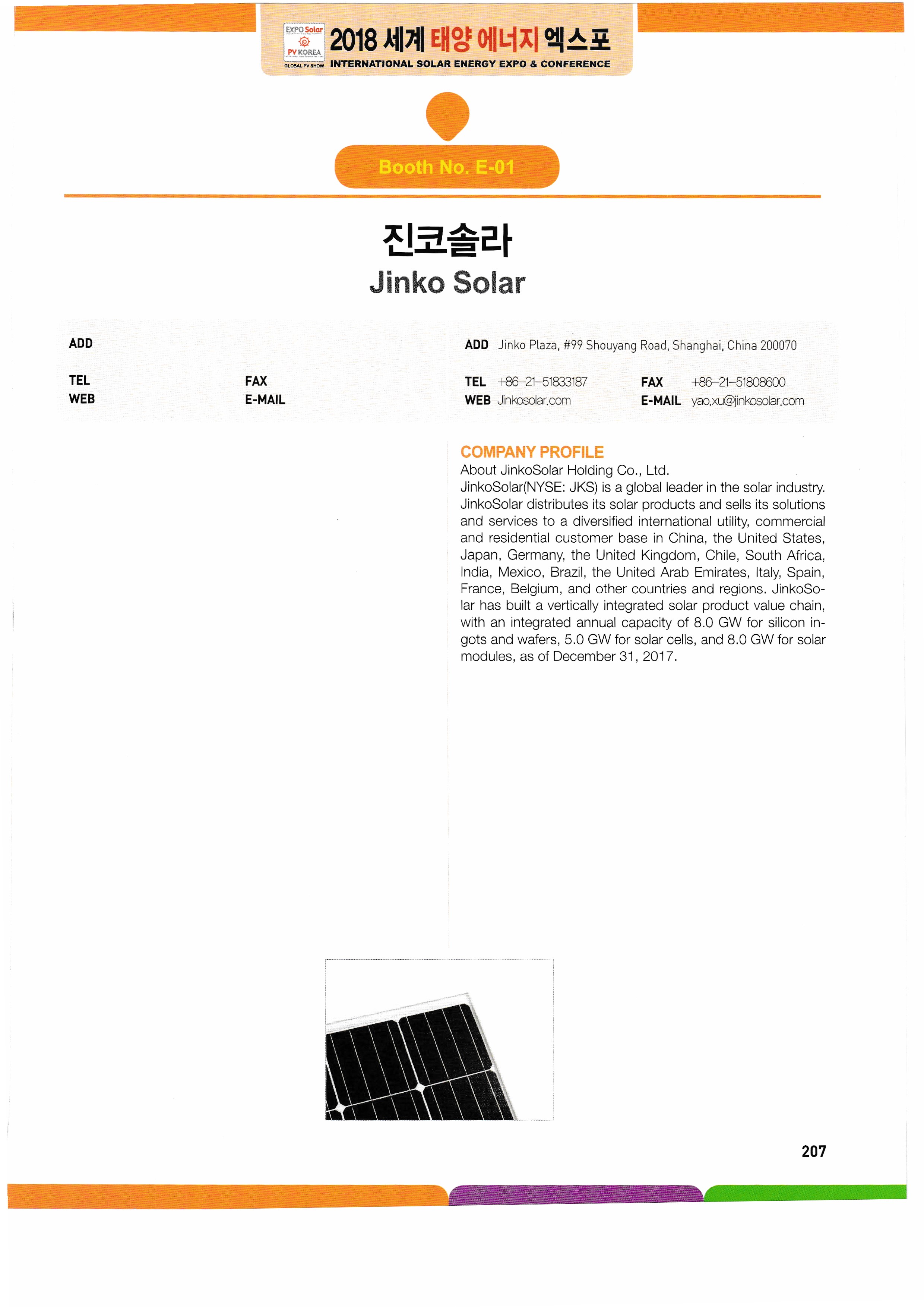 WK Dry Machinery, Woori Industrial Systems, Wooshi Lead Intelligent, Wooshi Suntec Power, Wooshin Environmental Construction, Woohyung Electronics, Wonkwang S&T, Principle Solutions, InnoClass, ICTC, ESCC, Eum ITC, Icheon Engineering, Yingri Green Energy, Jasco Solar, Giants Korea, Artisan Industry, Zhejiang Ecosolar, Jungwoom MC, Zenad, JSPV, JASola, JW Tech, GSLAS, GeoBlue Lab, G2Power, GPL, JinkoSolar, China National Building Mat real,