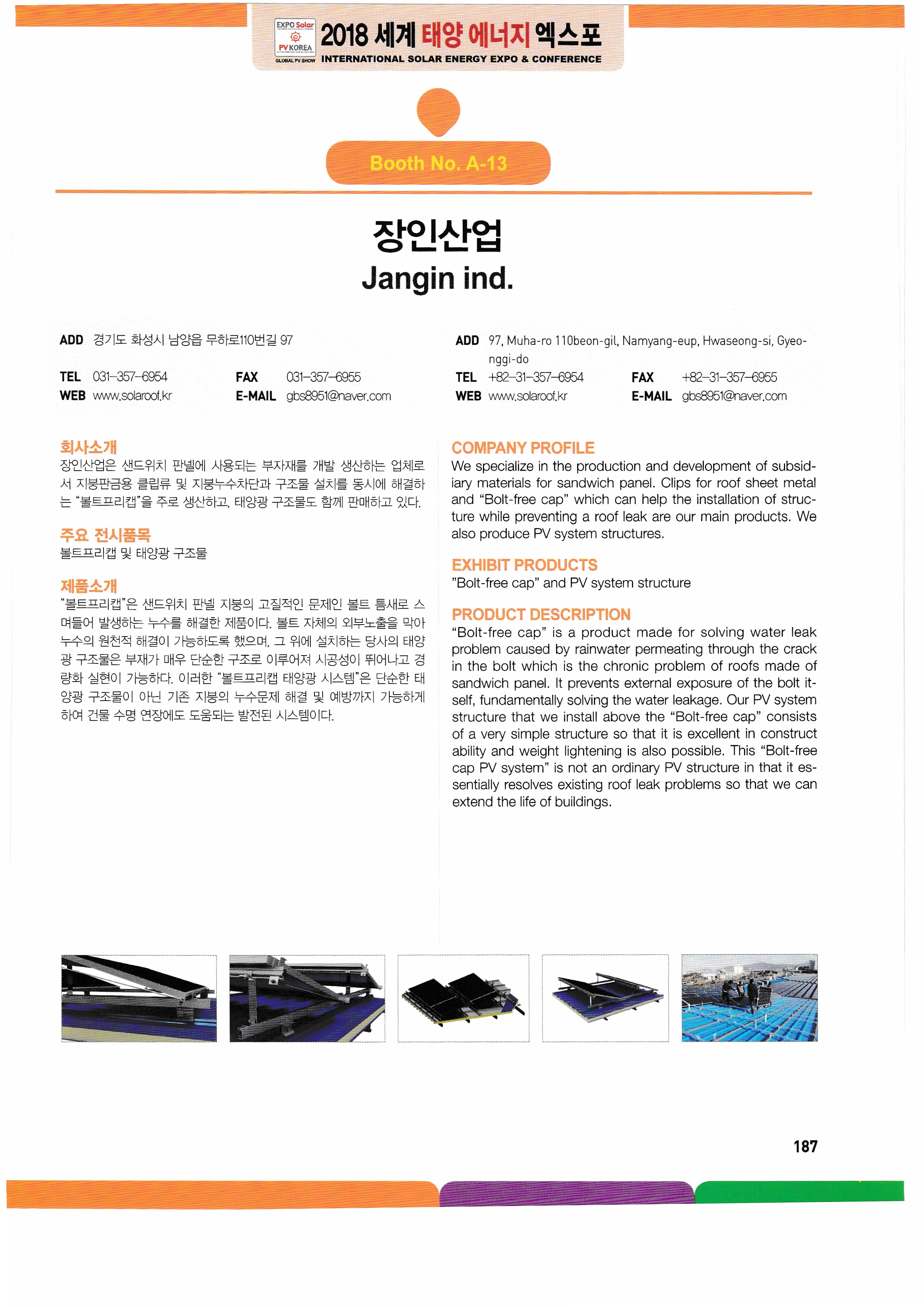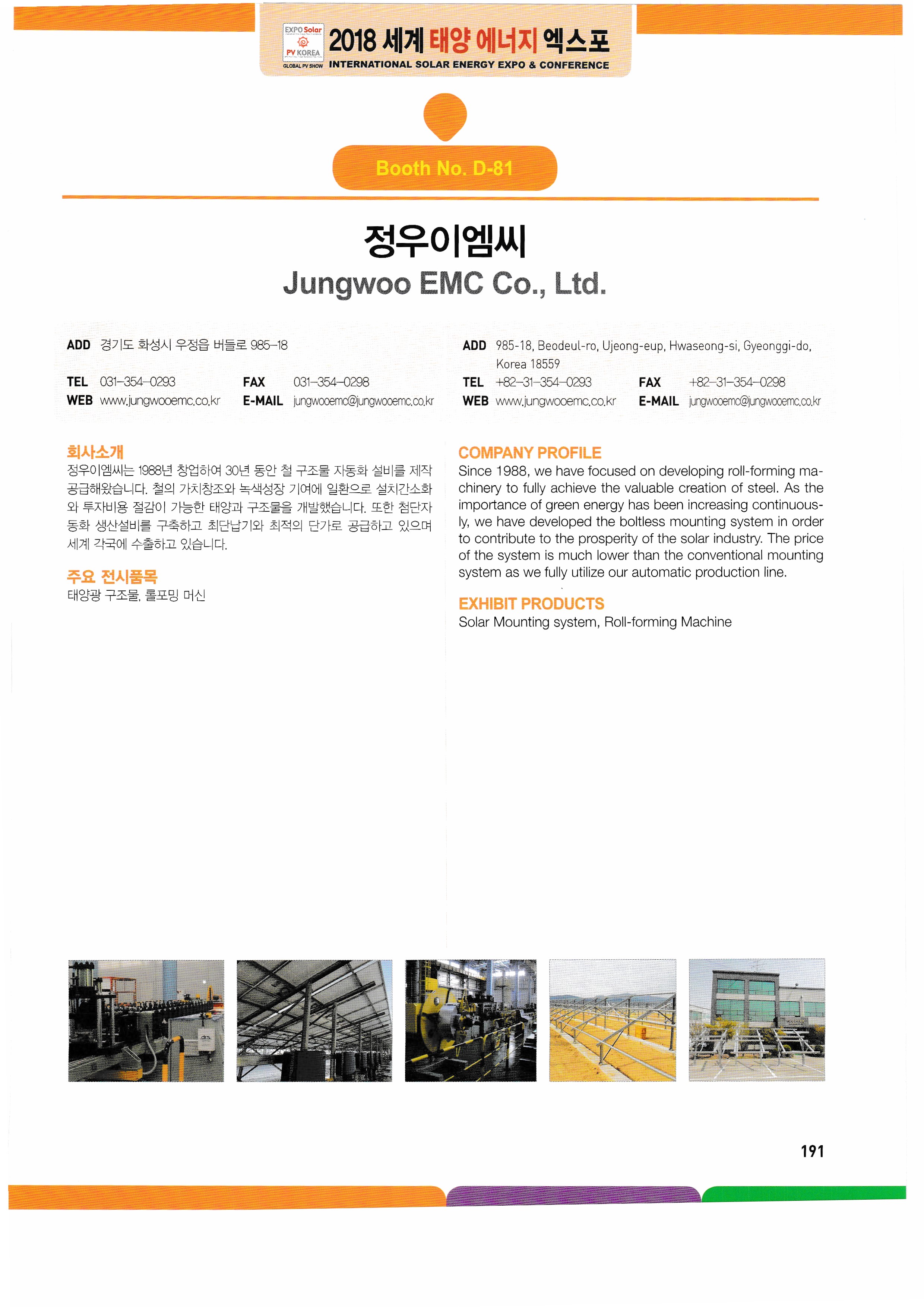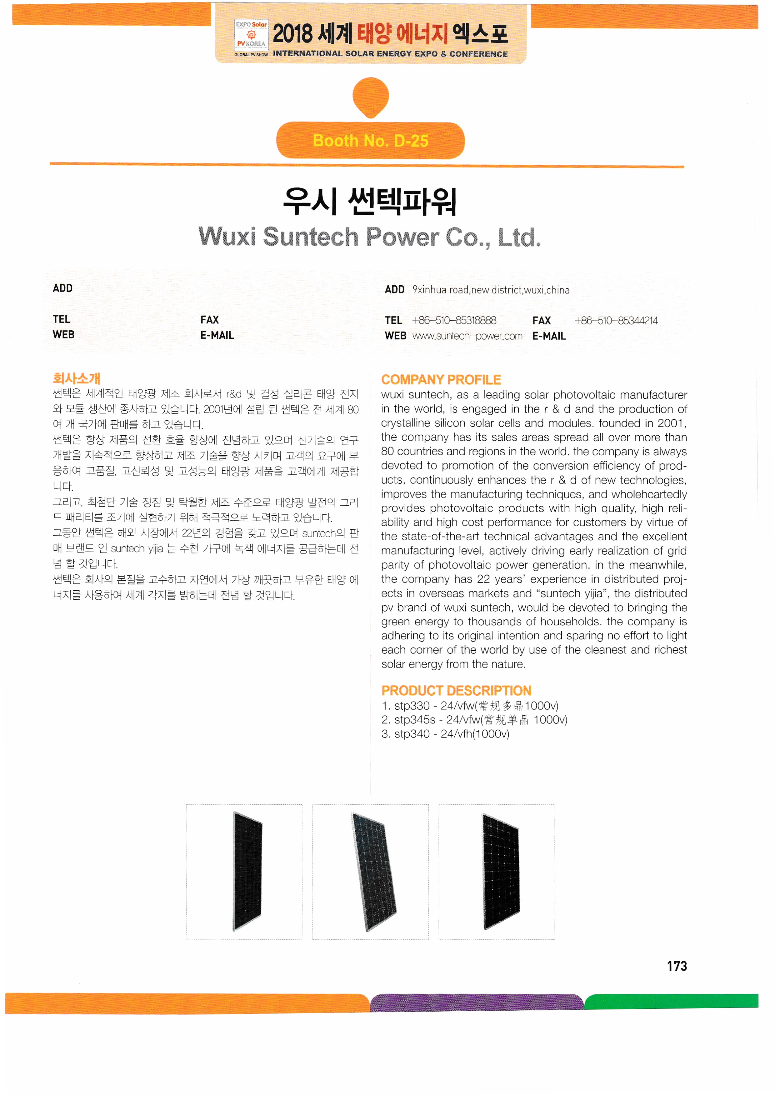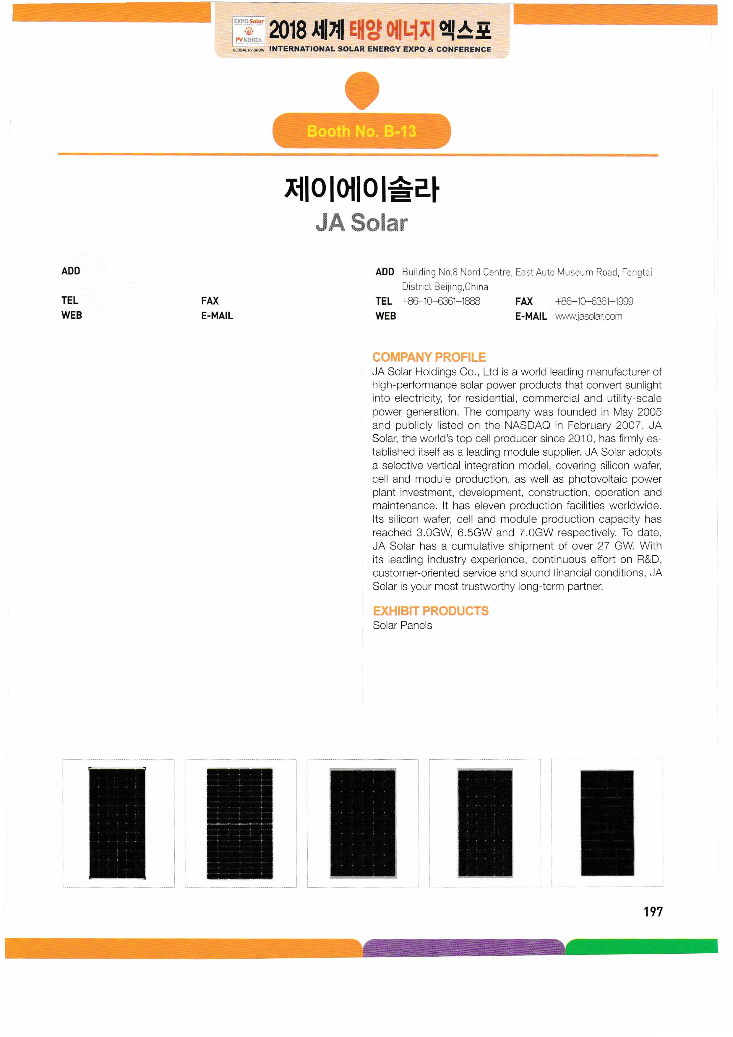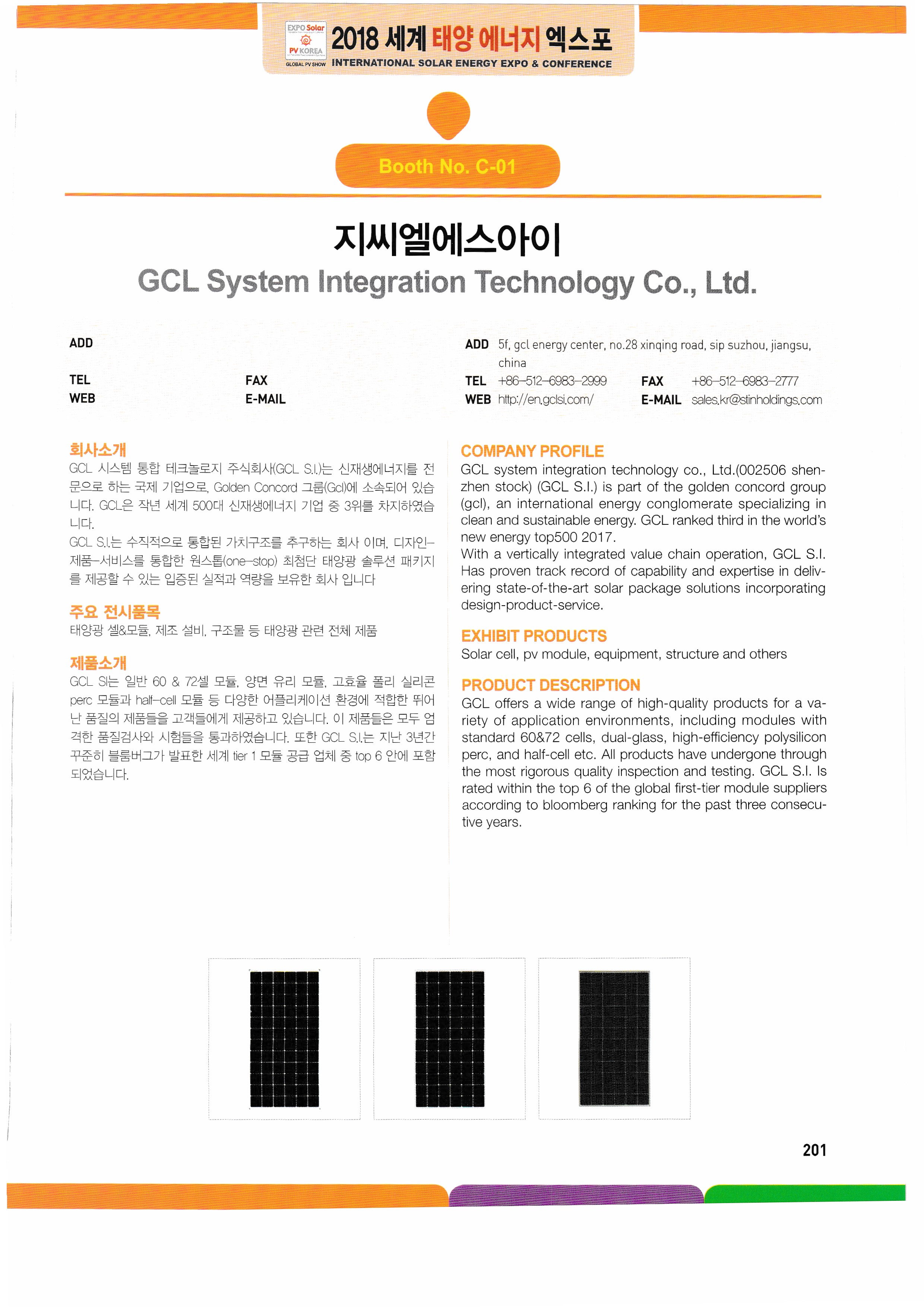 WK Dry Machinery, Woori Industrial Systems, Wooshi Lead Intelligent, Wooshi Suntec Power, Wooshin Environmental Construction, Woohyung Electronics, Wonkwang S&T, Principle Solutions, InnoClass, ICTC, ESCC, Eum ITC, Icheon Engineering, Yingri Green Energy, Jasco Solar, Giants Korea, Artisan Industry, Zhejiang Ecosolar, Jungwoom MC, Zenad, JSPV, JASola, JW Tech, GSLAS, GeoBlue Lab, G2Power, GPL, JinkoSolar, China National Building Mat real,