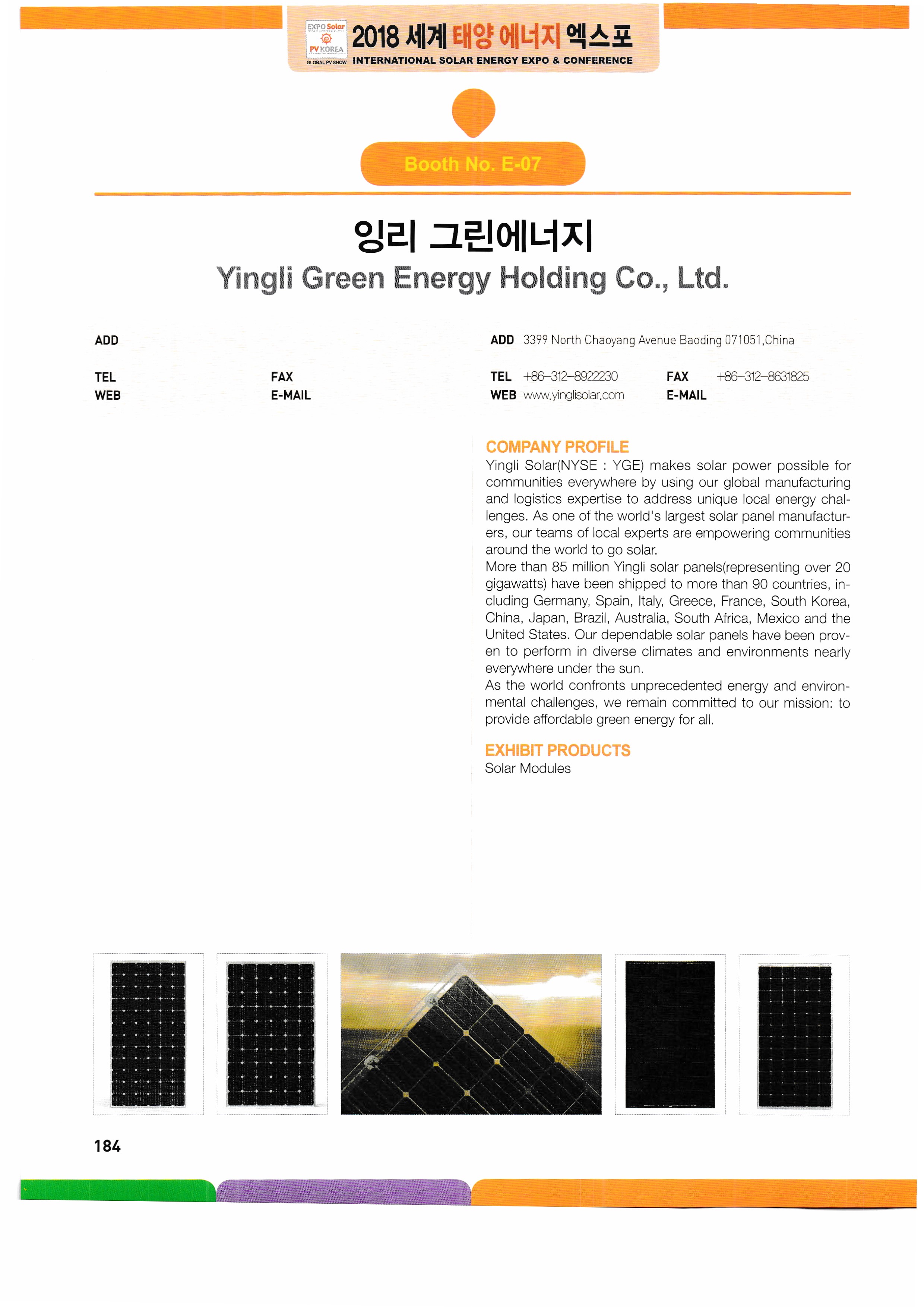 5: World Solar Energy Expo, World Carbon Zero Expo, World Energy Storage System Expo, Corporate Address Book /