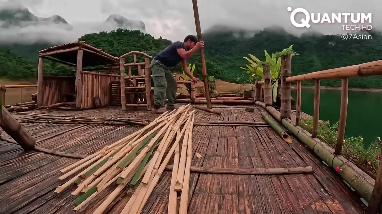베트남의 외딴 호수에서 대나무와 주변 자원을 활용하여 부유식 주거지, 농장, 어장, 도구 등을 직접 만들며 자급자족하는 수상 마을을 건설했습니다.