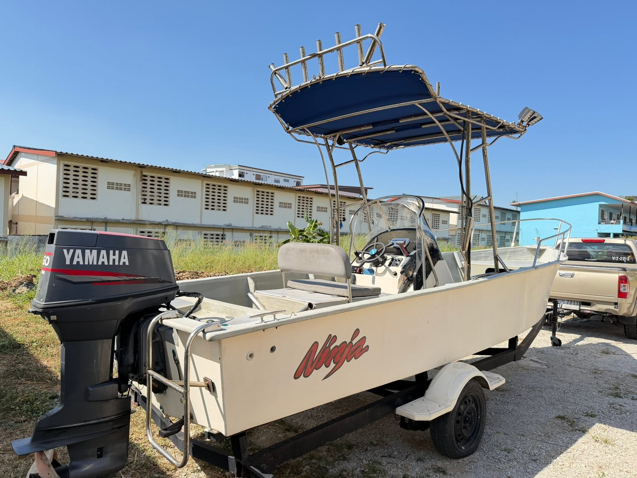 놀라운 특가! 189,000바트에 19피트 보트를 만나보세요! 야마하 60마력 2행정 엔진 장착. 아름다운 상태, 유압식 조향 장치, 스테인리스 스틸 지붕, 전체 캐노피, 오징어 및 어류 낚시용 조명까지 완비. 바로 사용 가능. 최상급 상태. 0914108220. 보윈, 촌부리.