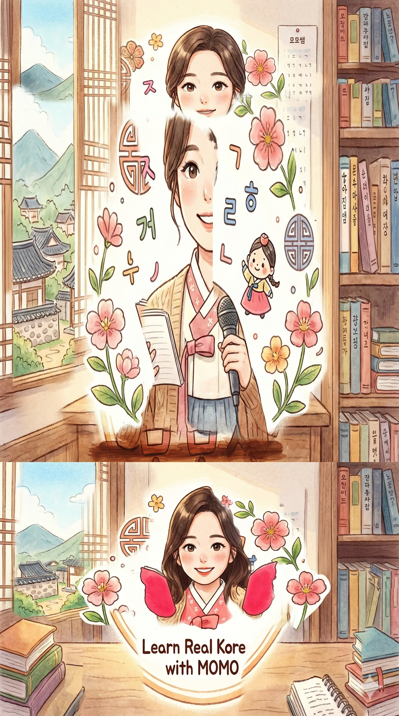 - 의미: '한국어 공부'를 딱딱한 학습이 아닌, 매일의 **'분위기'와 '일상'**으로 느끼게 해준다는 뜻입니다.