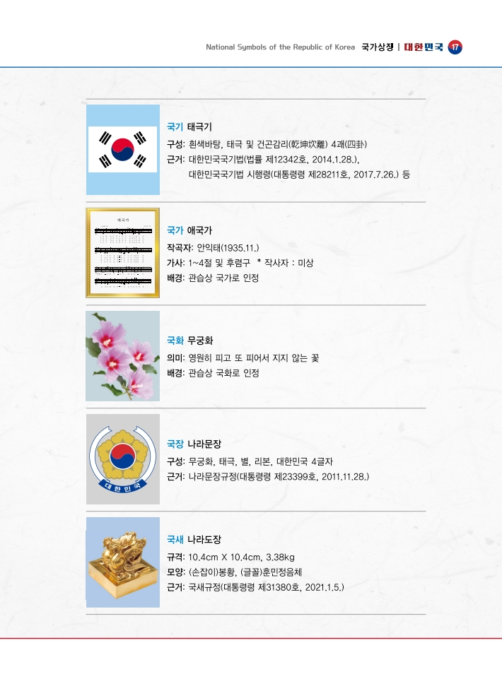 행정안전부에서 발행한 대한민국 국가상징 홍보책자.