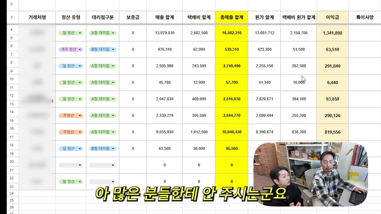순수익: 2억 매출에 10%에서 13% 정도의 마진율을 유지하고 있다.