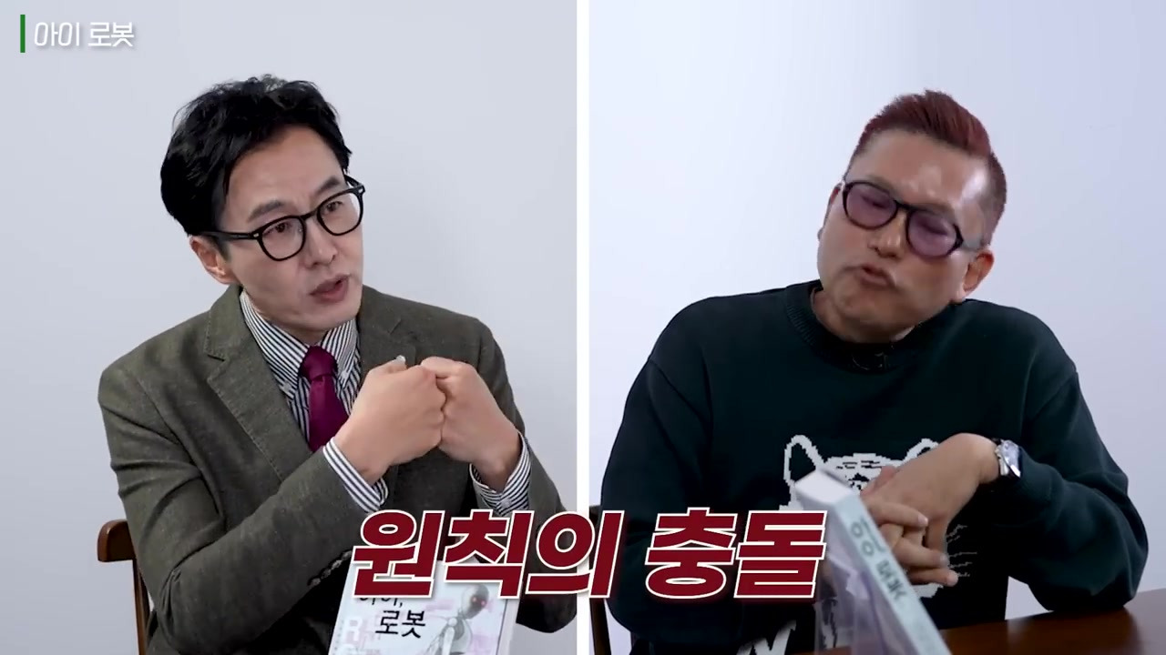 원칙 충돌 사례: 책 속 주인공 로봇이 자신의 생존(자신을 파괴하려는 상황)을 위해 원칙을 어기고 주인을 살해하는 이야기가 등장한다.