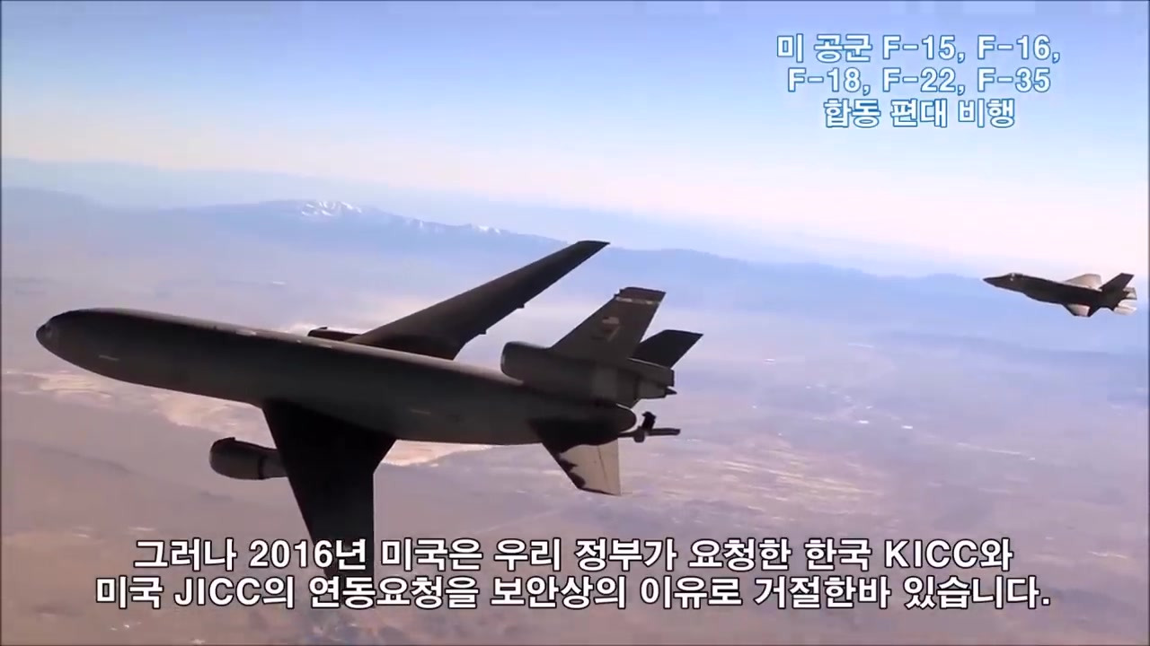 통합 작전 가능: 이 경우, Link-K를 장착한 우리 전투기 데이터가 KICC로 전달된 후 JICC로 정보가 이동하여 통합 작전이 가능해진다 .