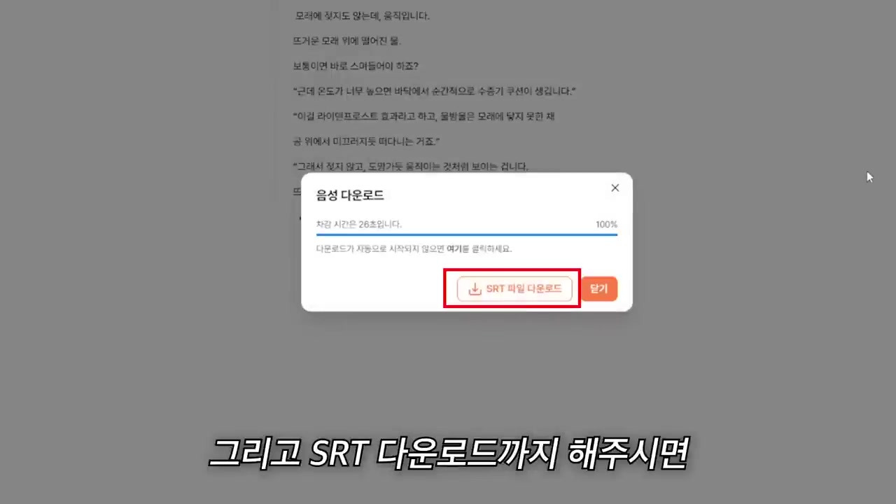 다운로드: 음성 파일과 SRT 파일을 모두 다운로드함