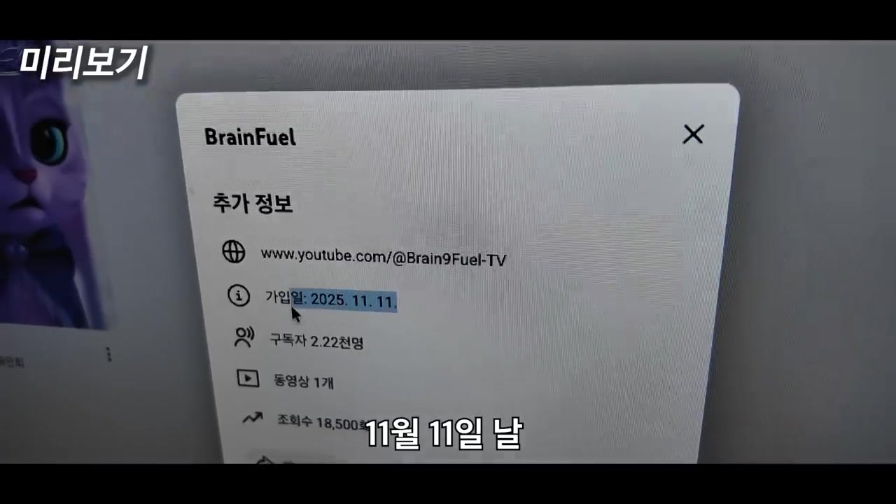 사례 2: 또 다른 채널은 2,200명의 구독자를 보유하고 있으며, 이 채널 역시 영상 하나로 11월 11일에 만들어졌습니다.