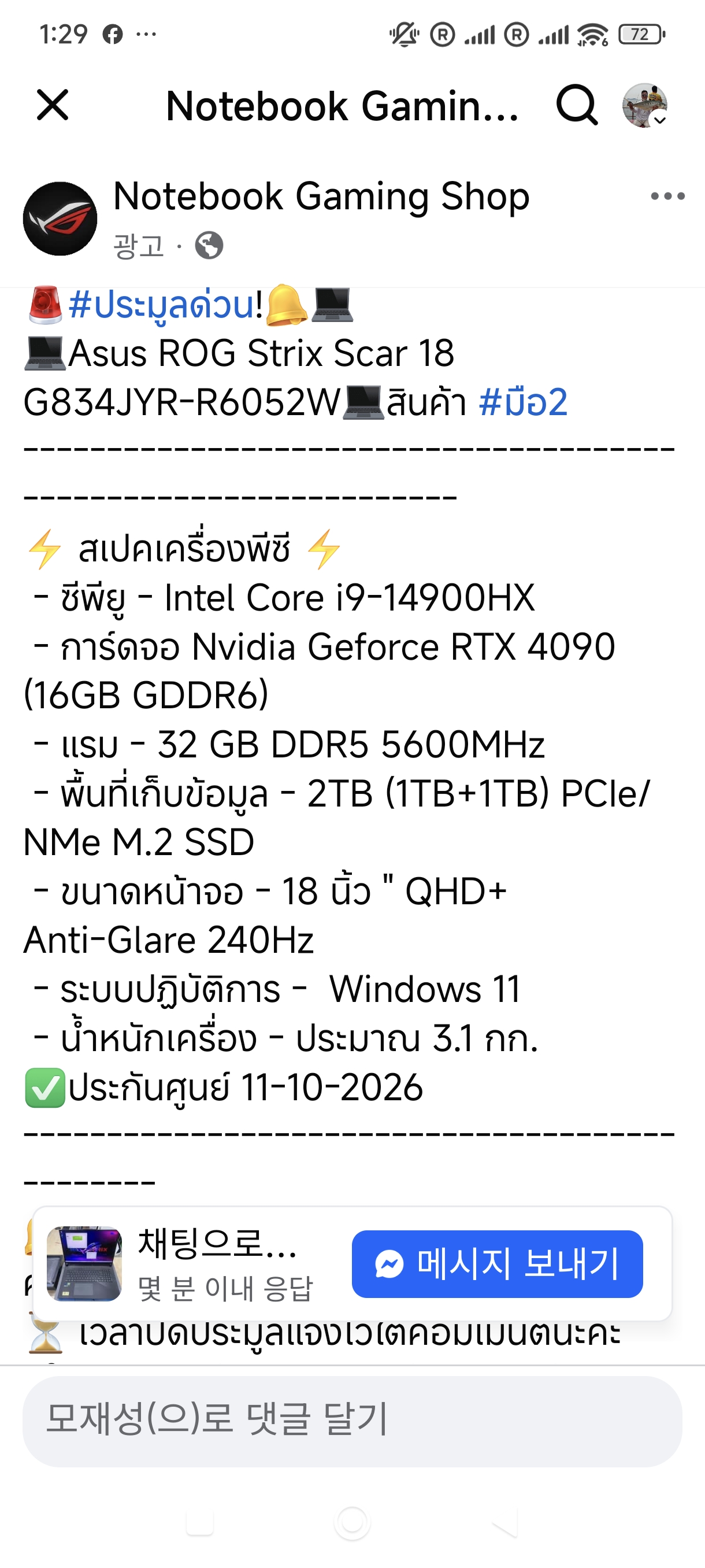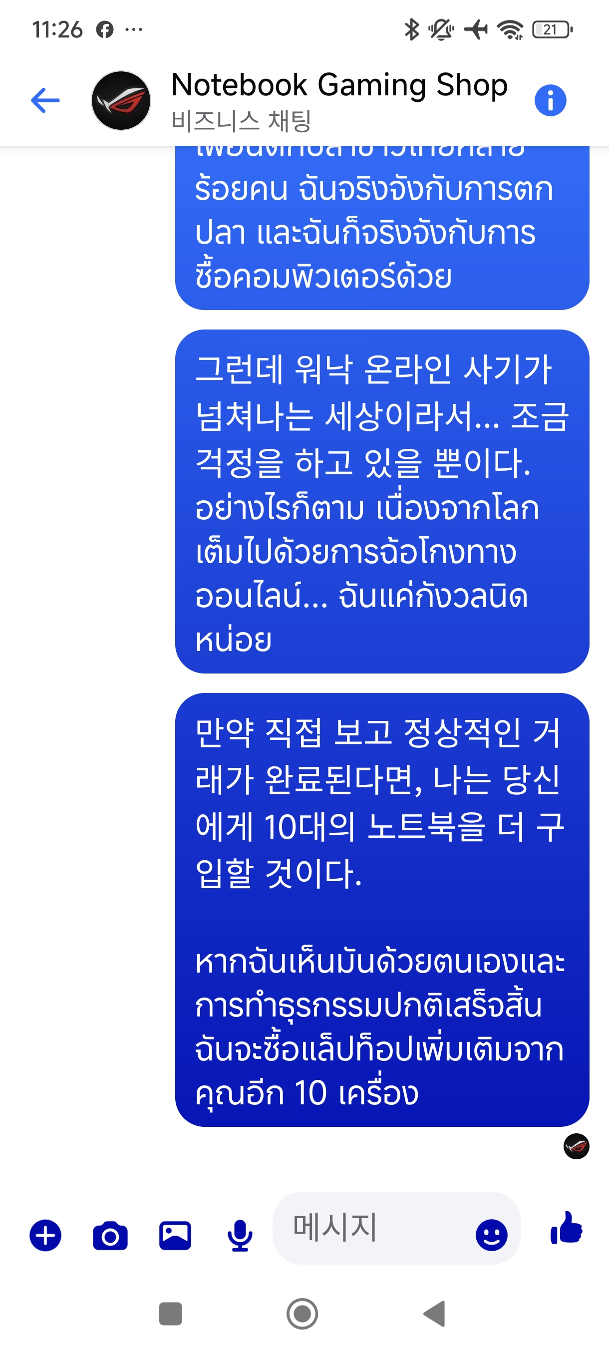 I stopped the transaction and said I would go to Phuket to see it in person and do the transaction. Then the next day, the account disappeared and I couldn't even use messenger.