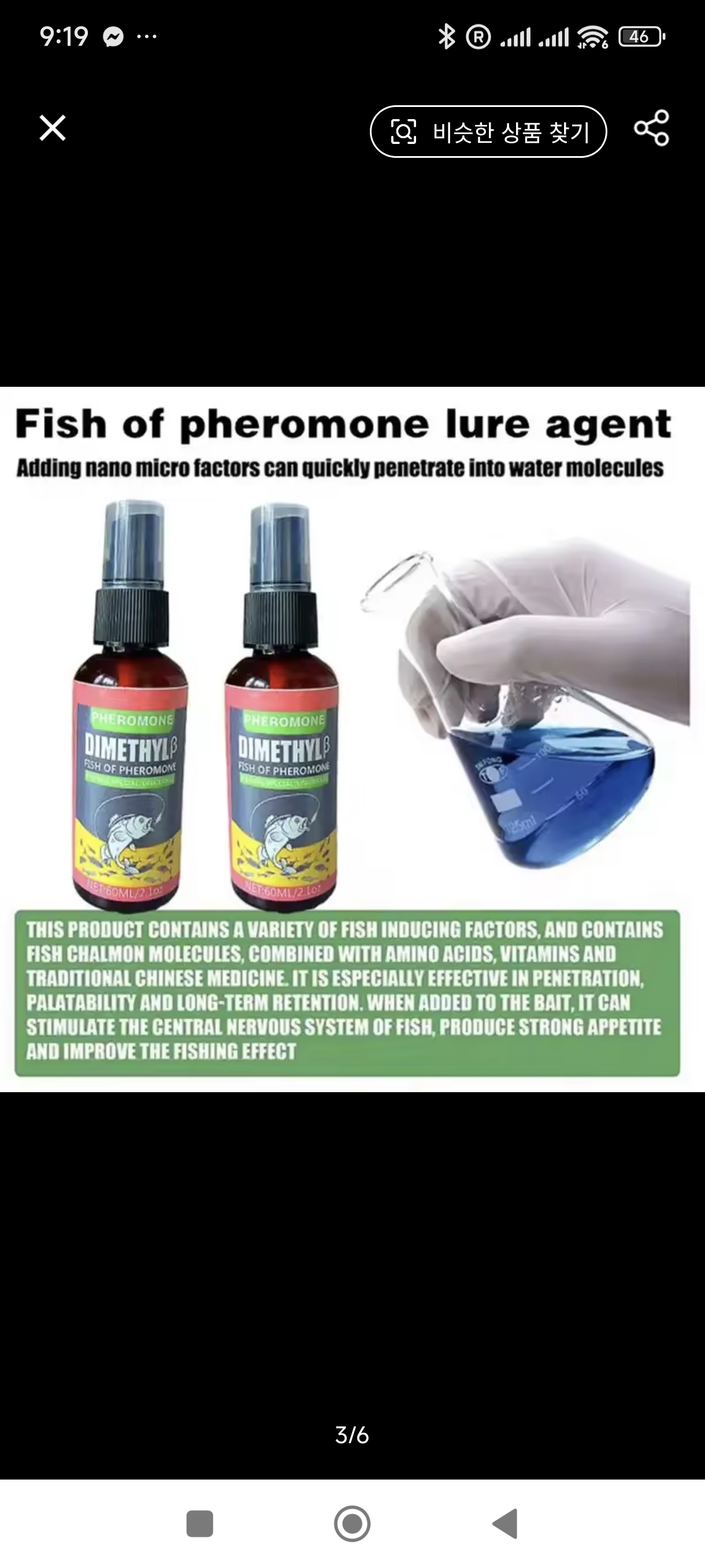 이미지 속 제품은 **DMPT(Dimethyl-beta-propiothetin)**를 주성분으로 하는 강력한 물고기 유인제입니다. 요청하신 제조 원료, 제조 방법, 그리고 고객들의 효과에 대한 의견을 정리해 드립니다.