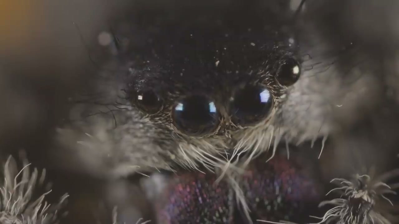 이 거미는 일반적인 점프하는 거미보다 약 5배 작아 렌즈 테스트에 적합하다.
