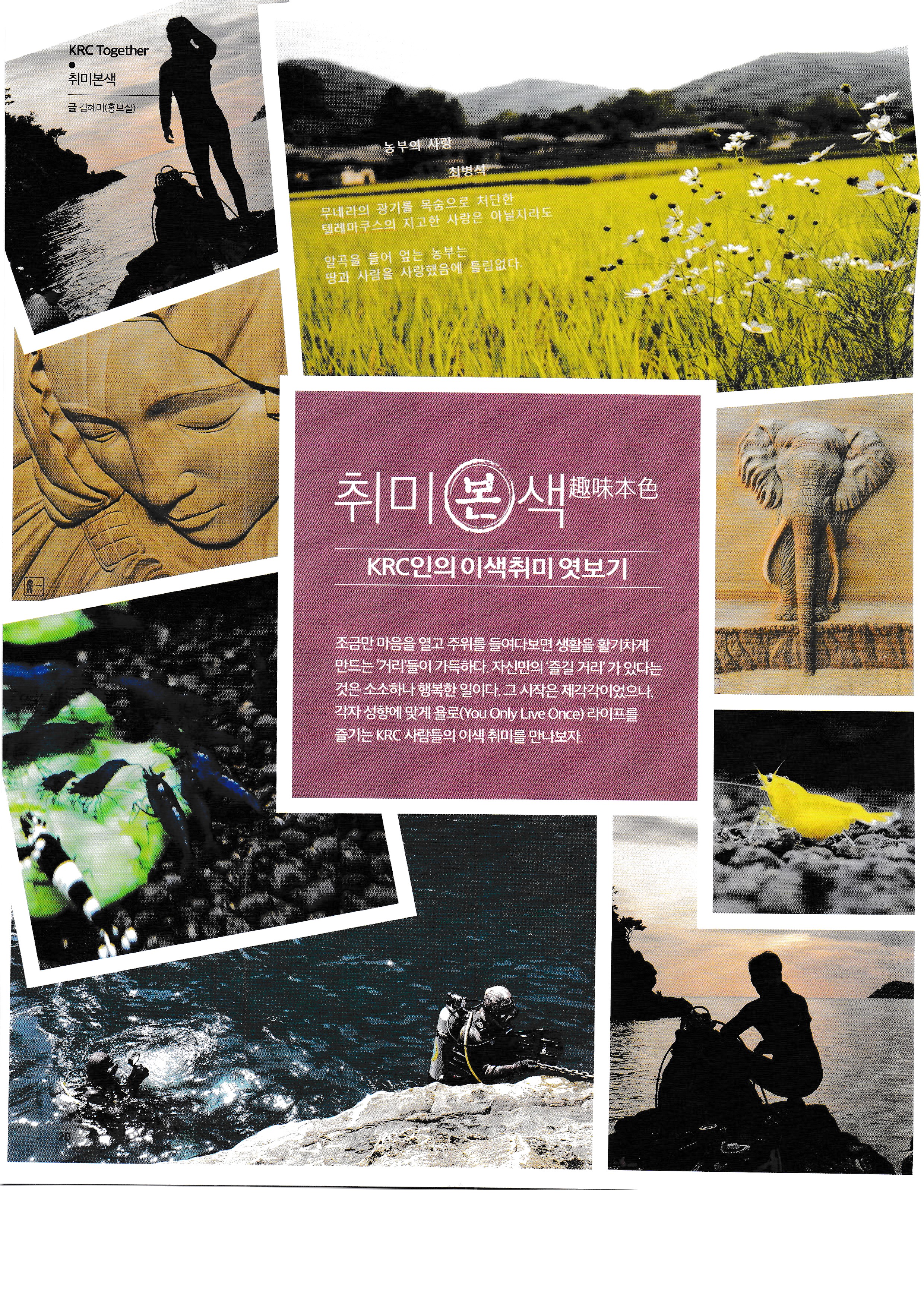 모두들, 다양한 취미활동을 하라. 삶의 활력소이다. 정신건강에도 도움이 될 것이다.