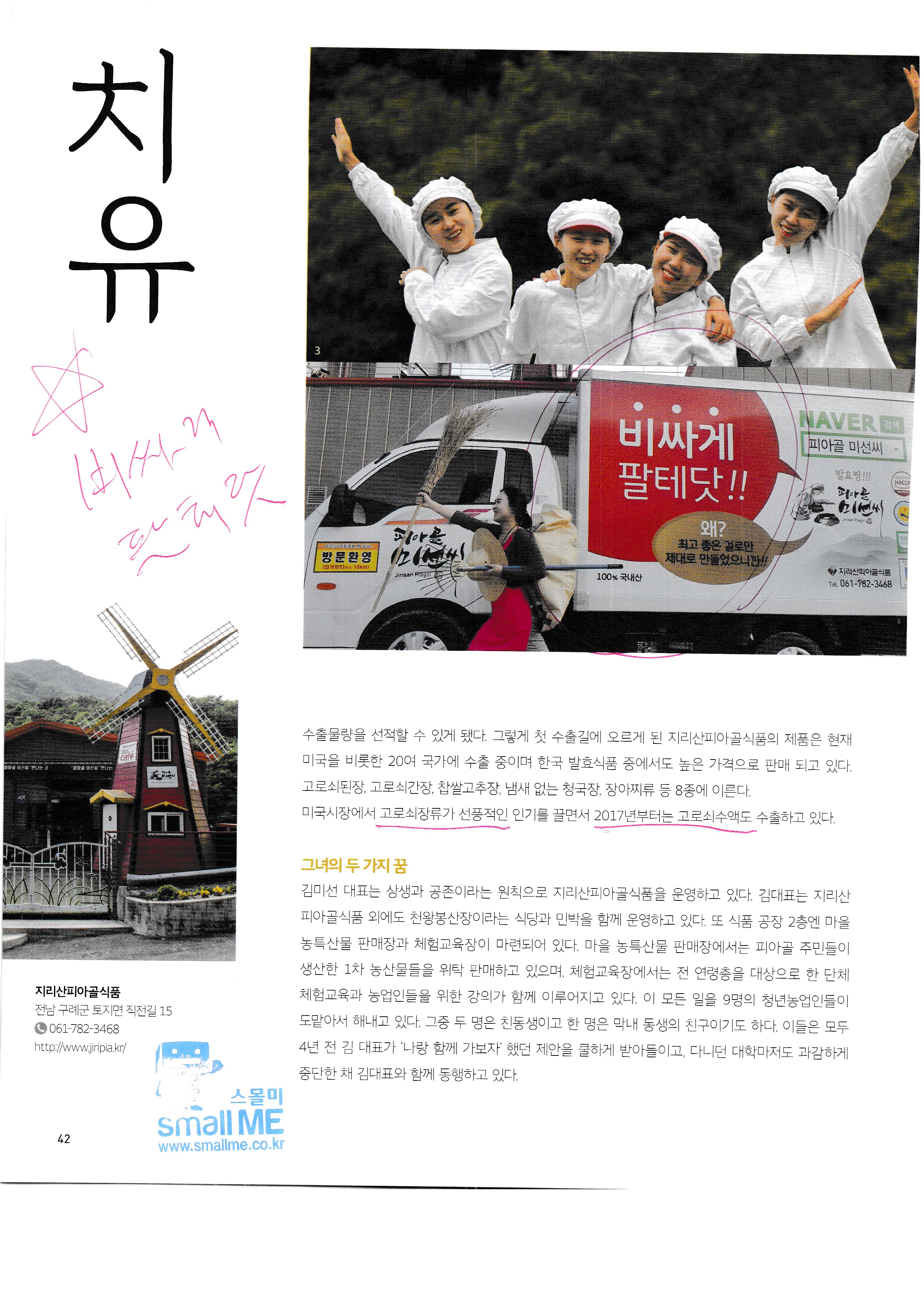 성공을 기원한다. 피아골 미선씨, 지리산 피아골 식품,