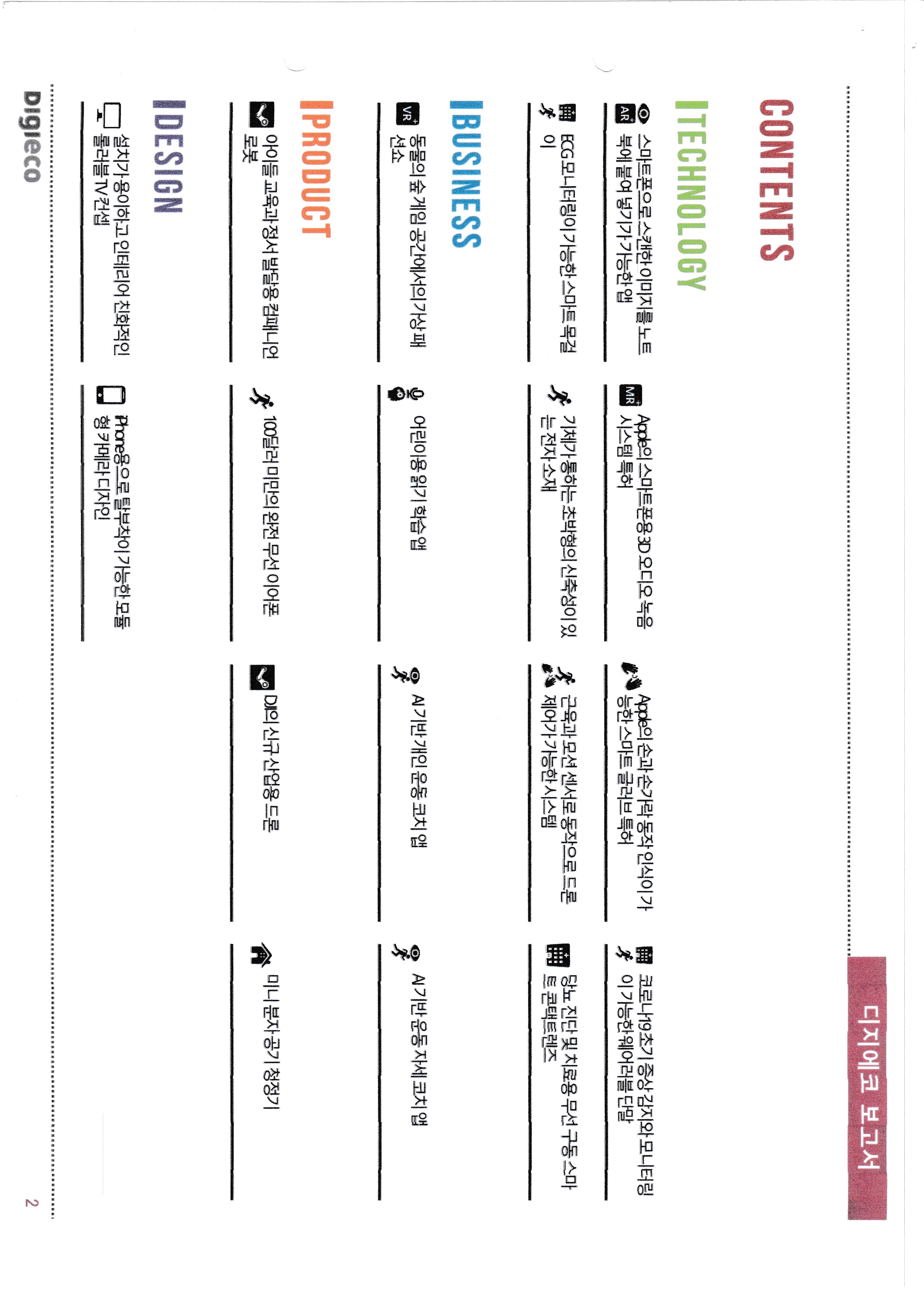 스마트글러브, 코로나19 초기감지용 IOT, ECG 모니터링 용 스마트 목걸이, 기체가 통하는 초박형 신소재, 스마트콘택트렌즈, 동물의 숲에서 가상패션쇼, 어린이용 읽기학습맵, 운동코치앱, 컴패니언 로봇, 산업용 드론, 모듈형 스마트폰 카메라,