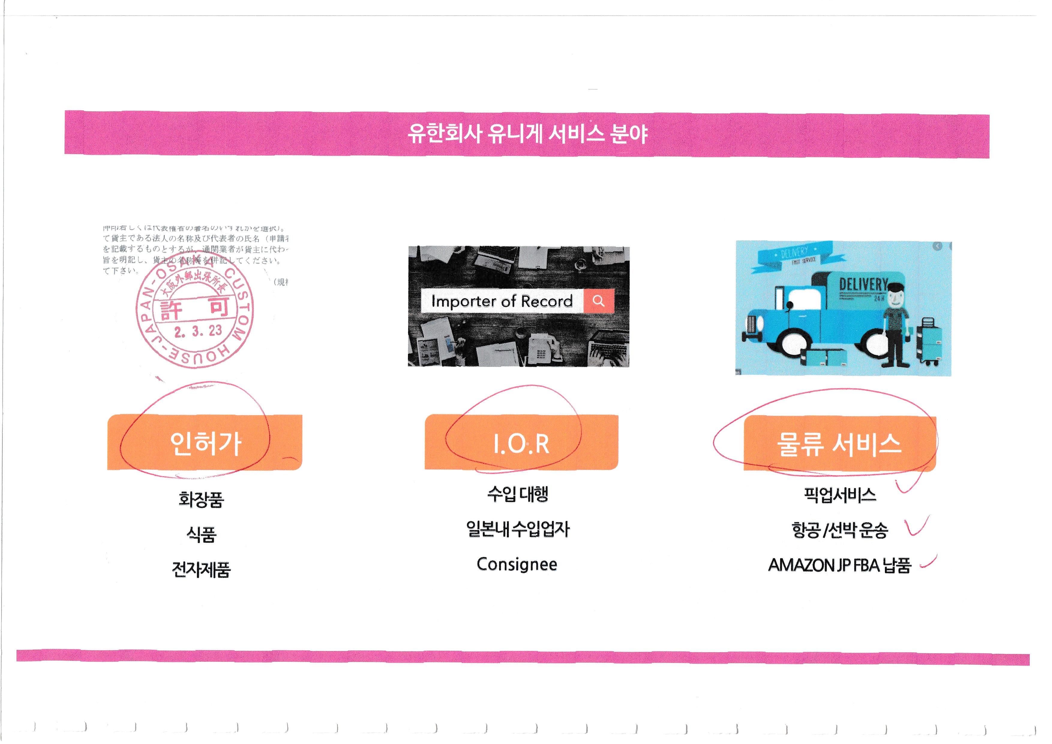 놀면서 일하기/★기업정보 & 데이터 유니게코리아의 일본수출, 아마존 유통, 원스톱 서비스, 안내내용, : 나름 참조할게 많은 간단한 제안서, by 리치캣 2020. 7. 10. 반응형 유니게코리아의 일본수출, 아마존 유통, 원스톱 서비스, 안내내용, 나름 참조할게 많은 간단한 제안서, 반응형 공유하기 게시글 관리 리치캣의 현재 그리고 미래 저작자표시 비영리 변경금지 (새창열림) '놀면서 일하기 > ★기업정보 & 데이터' 카테고리의 다른 글 서울기후변화박람회, - 2 Seoul Climate Change Expo, (0) 2020.07.10 서울기후변화박람회, - 1 Seoul Climate Change Expo, (0) 2020.07.10 대한민국, 경기도, 건설용 석제품, 건설자재, 건축용 대리석, 건축용 판재, 제조업체, 유통업체, 주소록,:Korea, Gyeonggi-do, construction stone products, construction materials, building marble, building plate, manufactu.. (0) 2020.07.09 대한민국, 경기도, 의료용품, 의약제품, 제조업체, 제조공장, 주소록,:Korea, Gyeonggi-do, medical supplies, pharmaceutical products, manufacturers, manufacturing plants, address book, (0) 2020.07.08 대한민국, 경기도, 방송장비, CCTV, 제조업체, 제조공장, 주소록,: Korea, Gyeonggi-do, broadcasting equipment, CCTV, manufacturer, manufacturing plant, address book, (0) 2020.07.08 관련글 서울기후변화박람회, - 2 Seoul Climate Change Expo, 서울기후변화박람회, - 1 Seoul Climate Change Expo, 대한민국, 경기도, 건설용 석제품, 건설자재, 건축용 대리석, 건축용 판재, 제조업체, 유통업체, 주소록,:Korea, Gyeonggi-do, construction stone products, construction materials, building marble, building plate, manufactu.. 대한민국, 경기도, 의료용품, 의약제품, 제조업체, 제조공장, 주소록,:Korea, Gyeonggi-do, medical supplies, pharmaceutical products, manufacturers, manufacturing plants, address book, 댓글