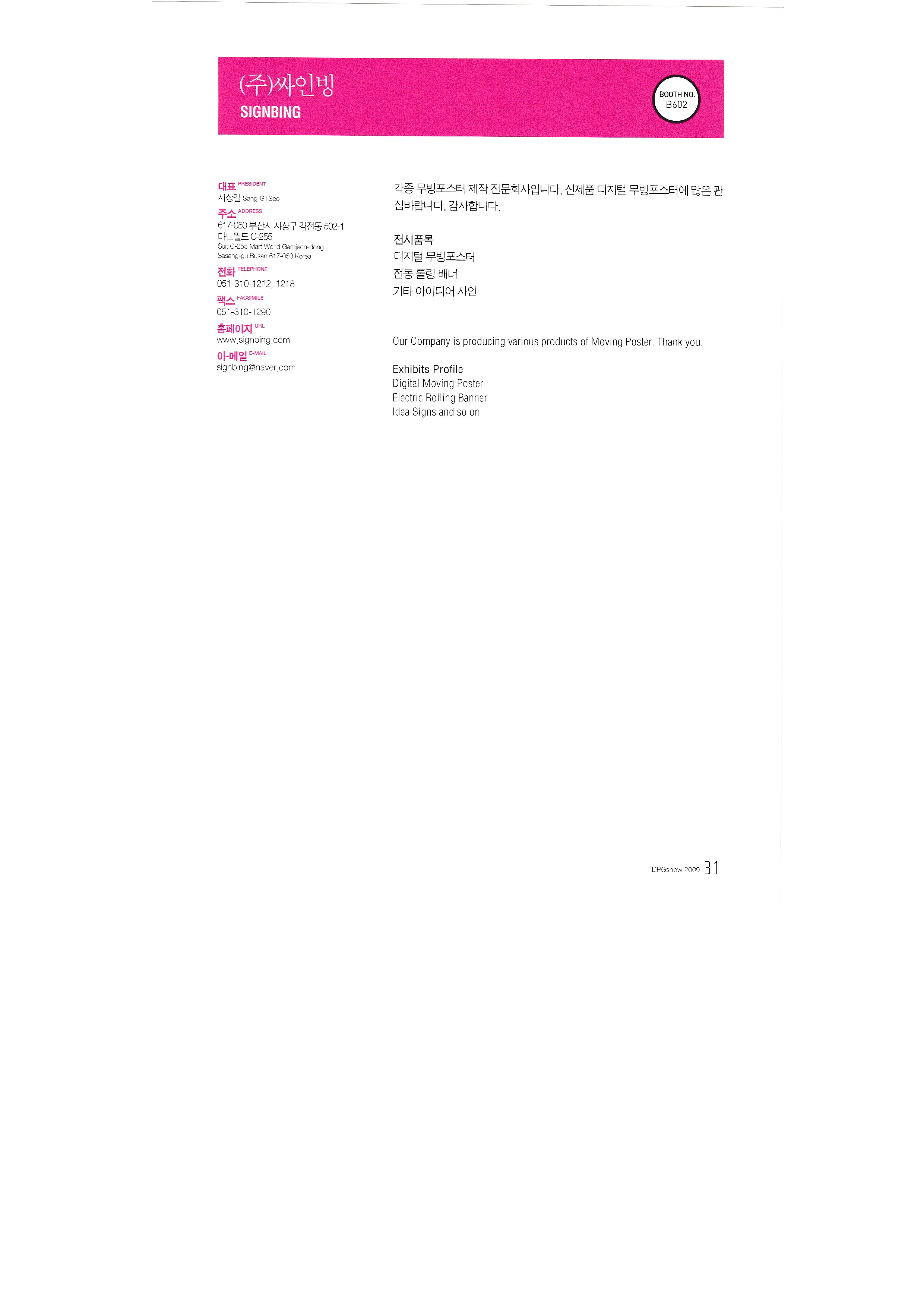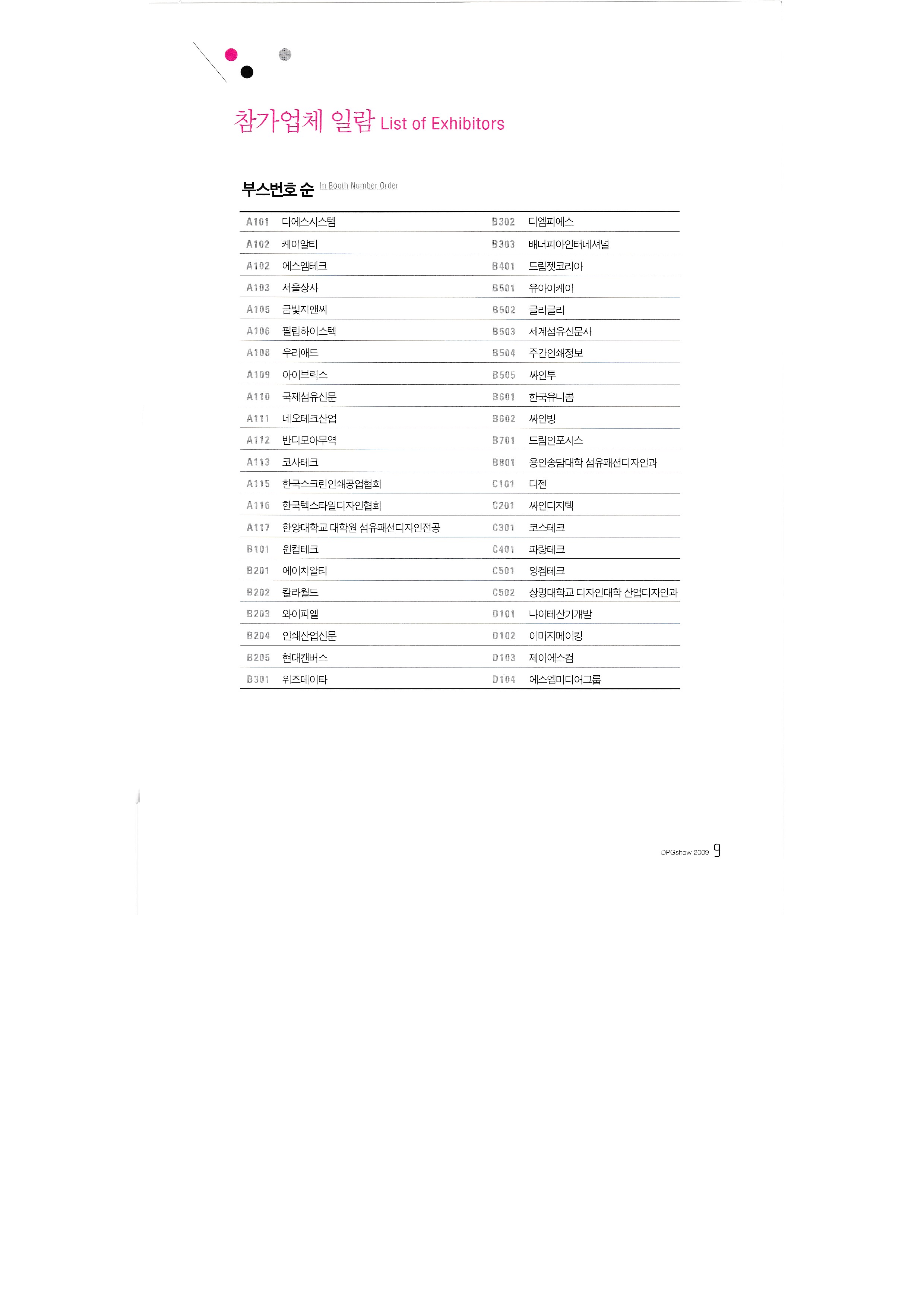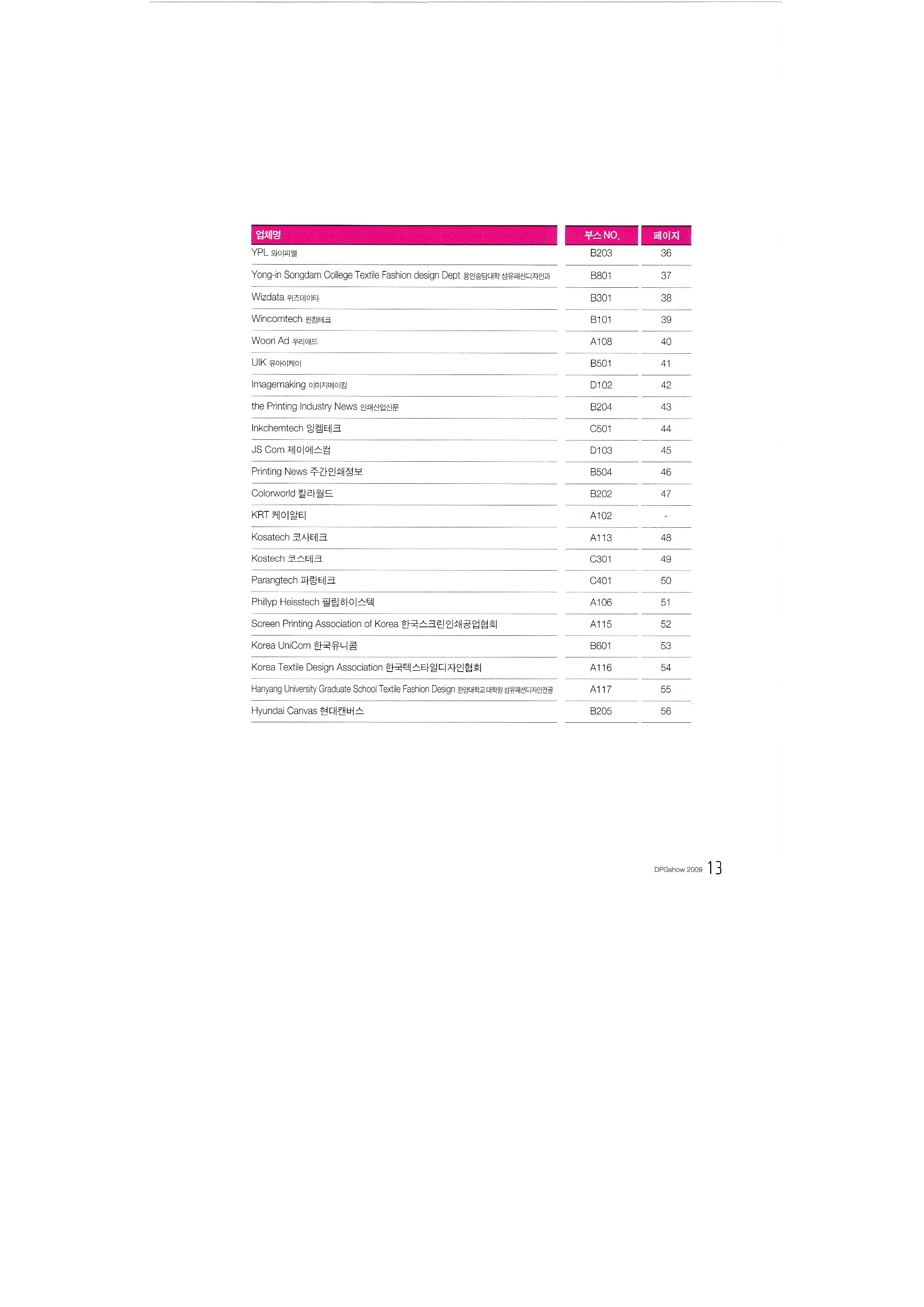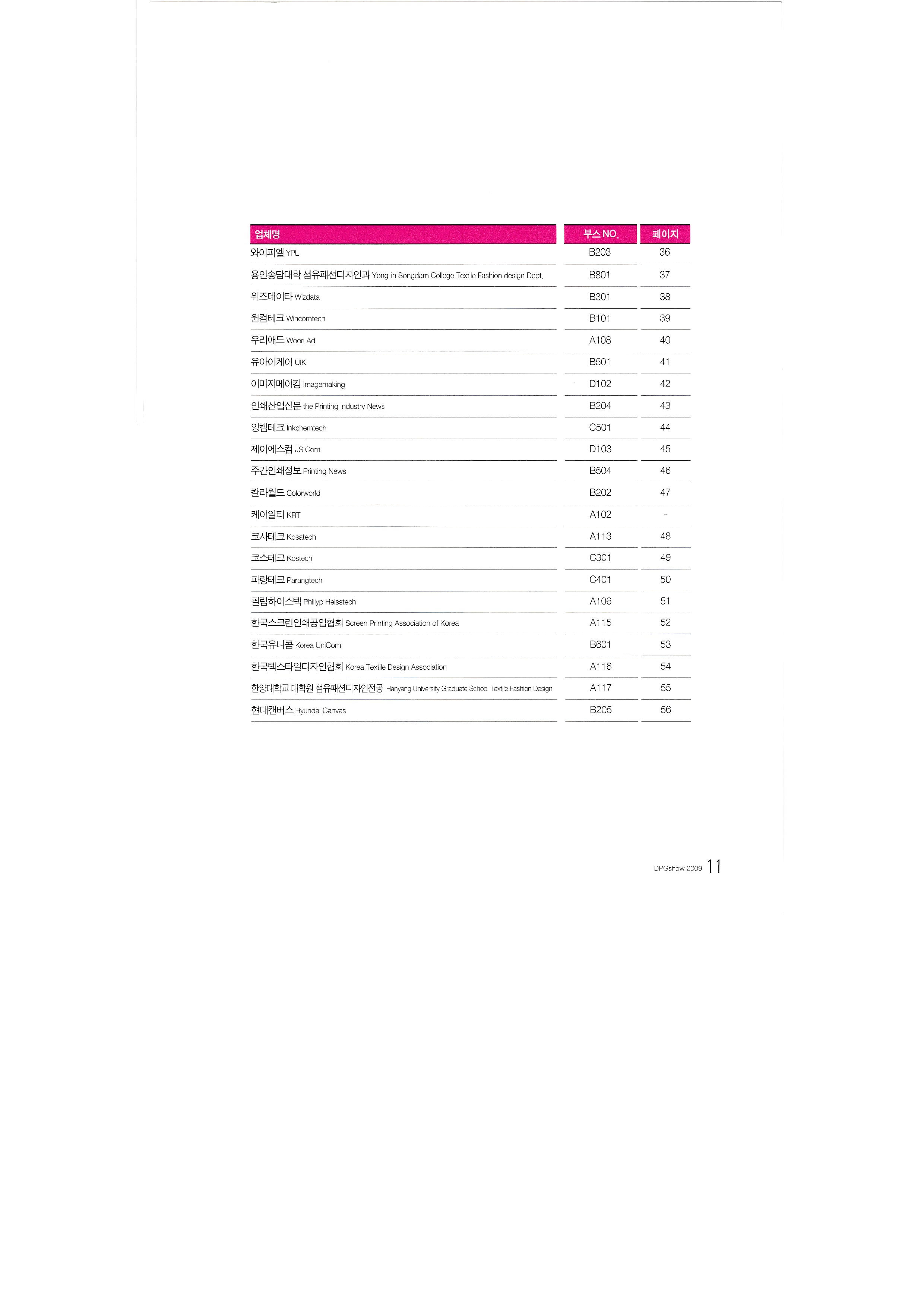 International Textile Newspaper Co., Ltd. Glee Glee Kumbit G&C Development of Nitesan Industrial Co., Ltd. Neo Tech Industry Co., Ltd. Dream Infosys Co., Ltd. Dreamjet Korea Co., Ltd. DS system DMS Co., Ltd. Design House Co., Ltd. Dizeen Co., Ltd. Bandimoa Trading Co., Ltd. Bannerpia International Sangmyung University, College of Design, Department of Industrial Design Seoul Trading Corporation World Textile Newspaper Co., Ltd. Sign Digitech Co., Ltd. Signing Co., Ltd. Autograph Ibrix |