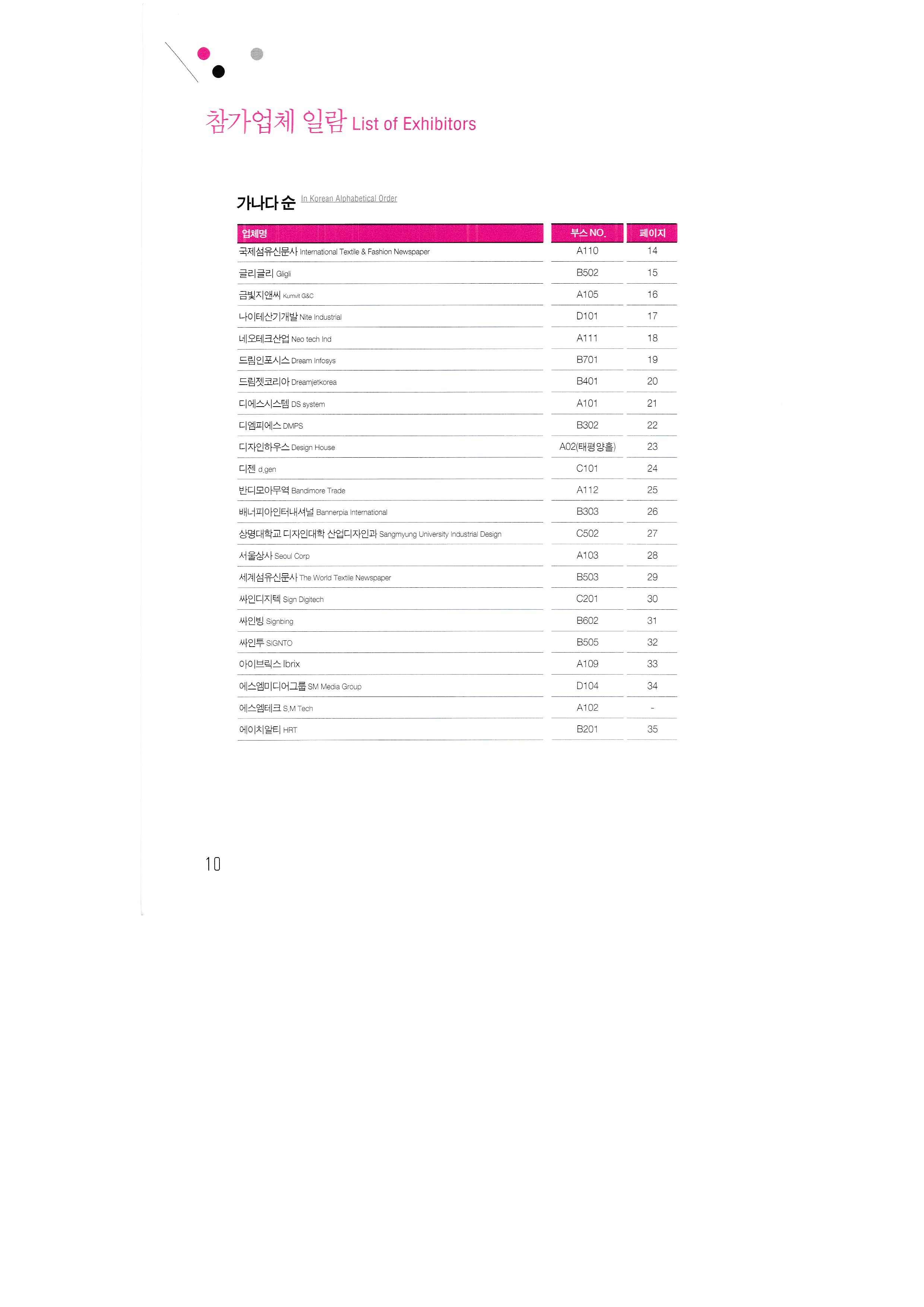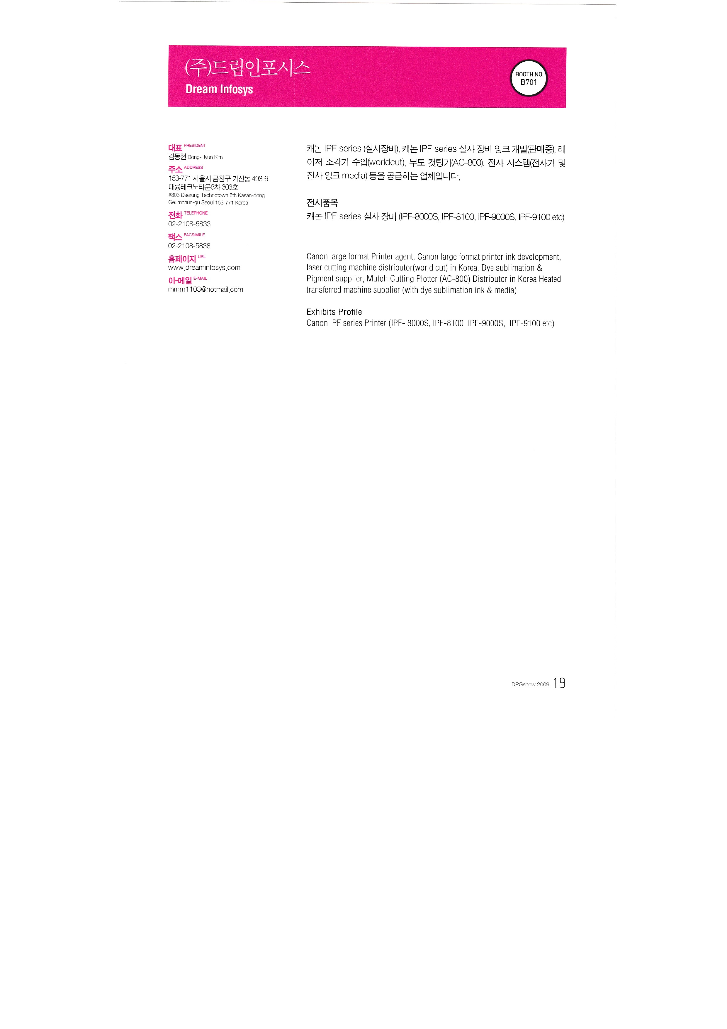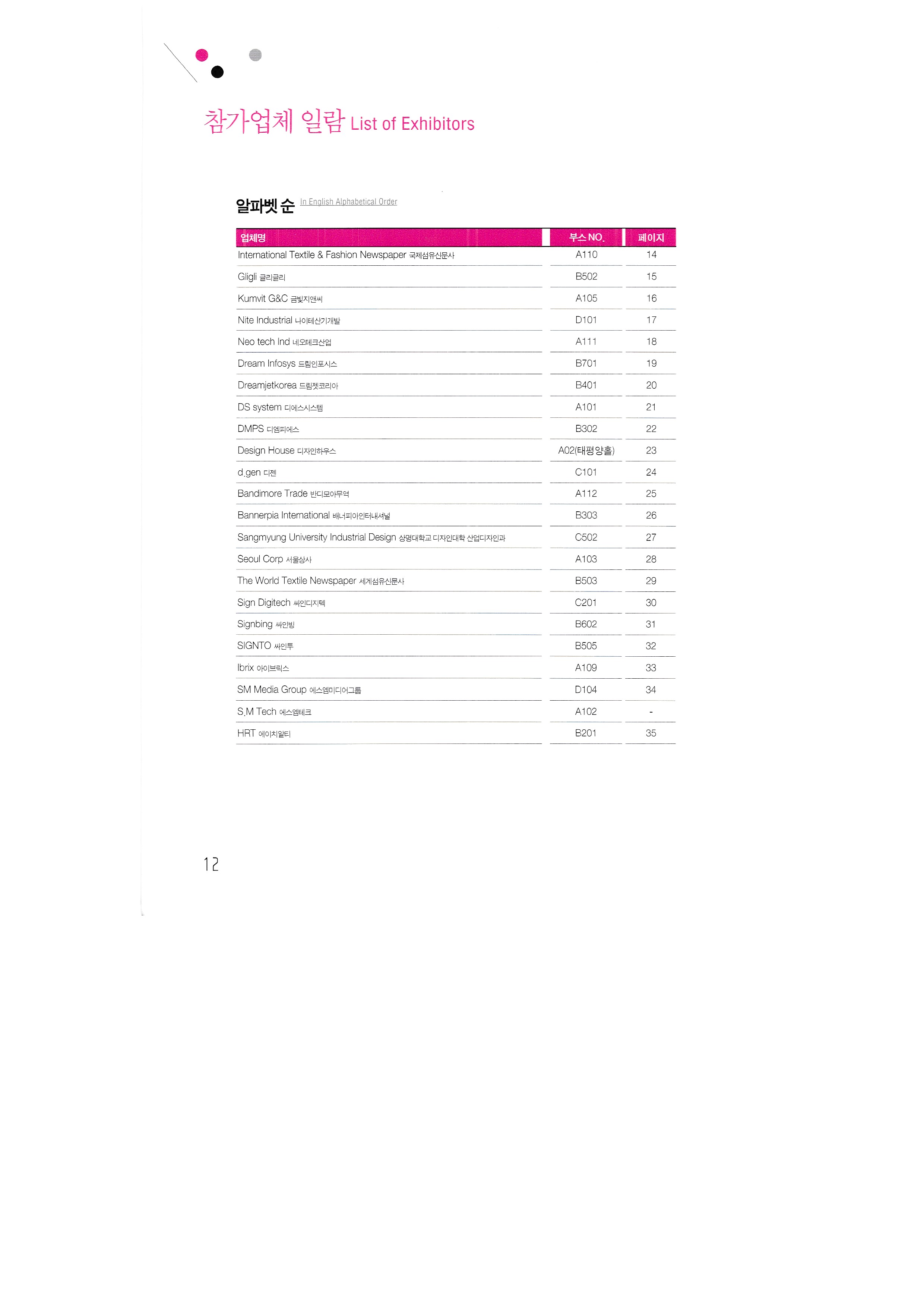 International Textile Newspaper Co., Ltd. Glee Glee Kumbit G&C Development of Nitesan Industrial Co., Ltd. Neo Tech Industry Co., Ltd. Dream Infosys Co., Ltd. Dreamjet Korea Co., Ltd. DS system DMS Co., Ltd. Design House Co., Ltd. Dizeen Co., Ltd. Bandimoa Trading Co., Ltd. Bannerpia International Sangmyung University, College of Design, Department of Industrial Design Seoul Trading Corporation World Textile Newspaper Co., Ltd. Sign Digitech Co., Ltd. Signing Co., Ltd. Autograph Ibrix |