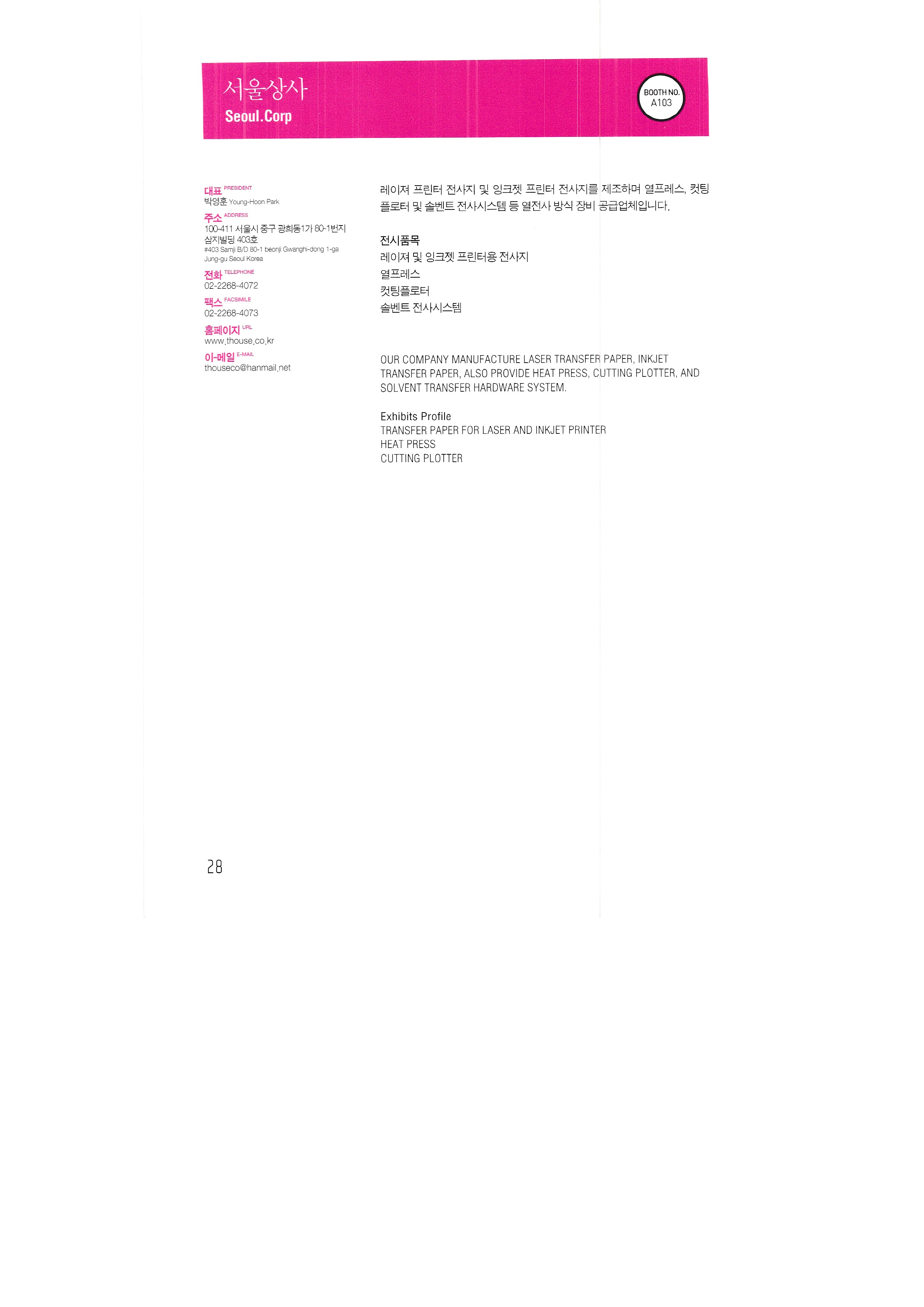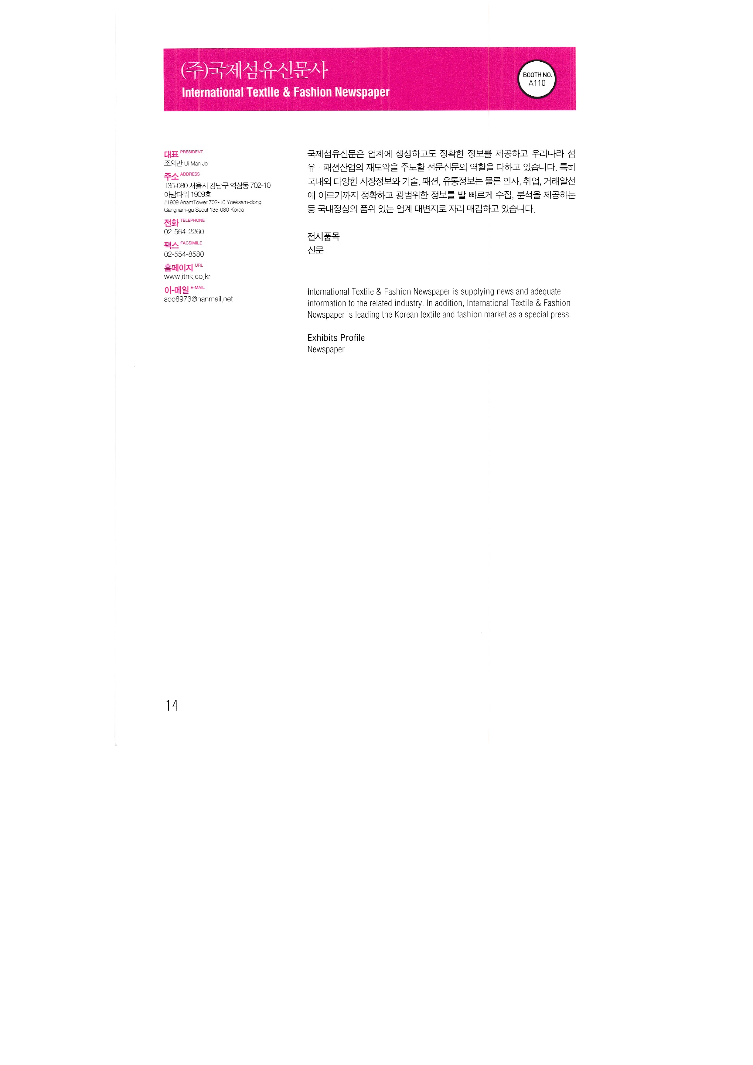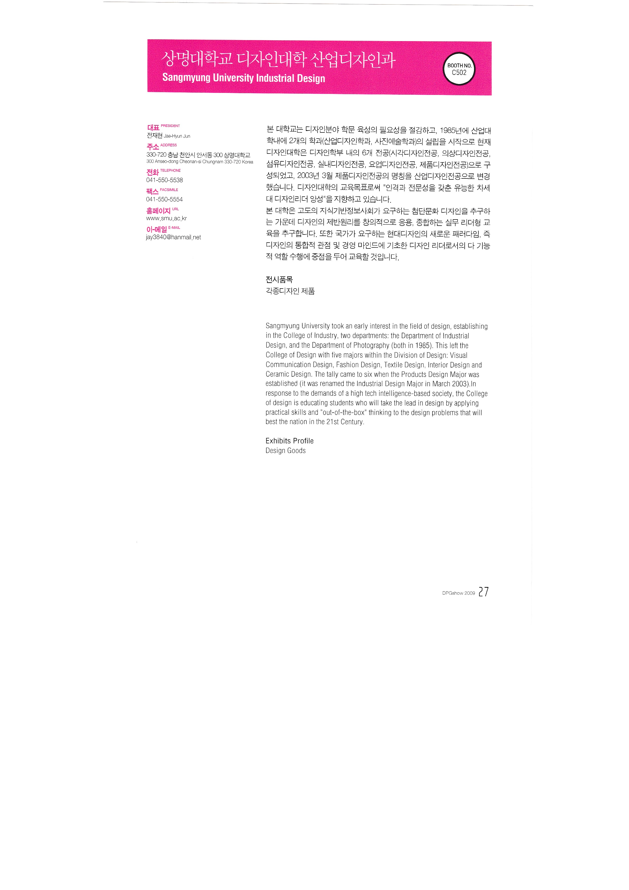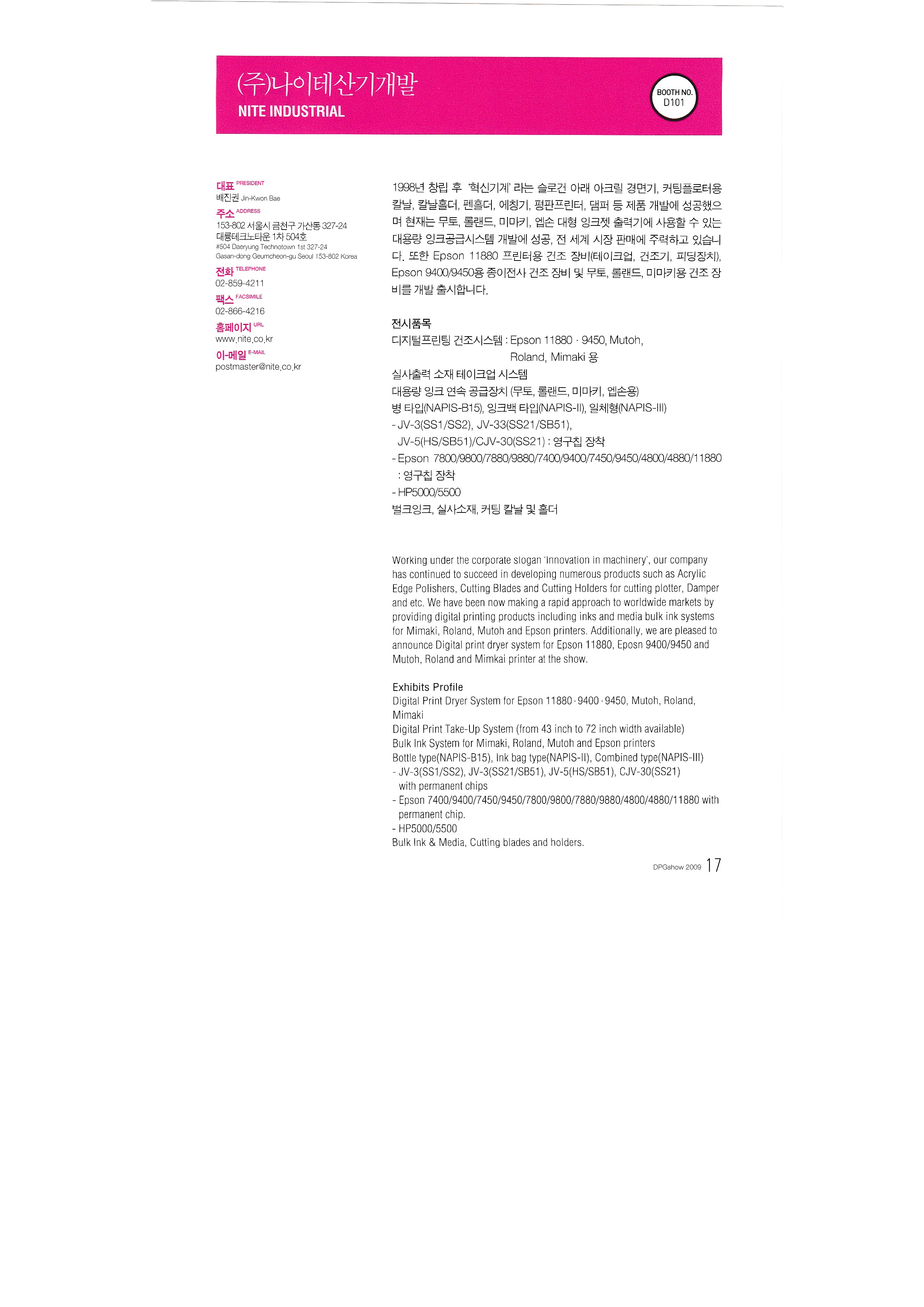 International Textile Newspaper Co., Ltd. Glee Glee Kumbit G&C Development of Nitesan Industrial Co., Ltd. Neo Tech Industry Co., Ltd. Dream Infosys Co., Ltd. Dreamjet Korea Co., Ltd. DS system DMS Co., Ltd. Design House Co., Ltd. Dizeen Co., Ltd. Bandimoa Trading Co., Ltd. Bannerpia International Sangmyung University, College of Design, Department of Industrial Design Seoul Trading Corporation World Textile Newspaper Co., Ltd. Sign Digitech Co., Ltd. Signing Co., Ltd. Autograph Ibrix |