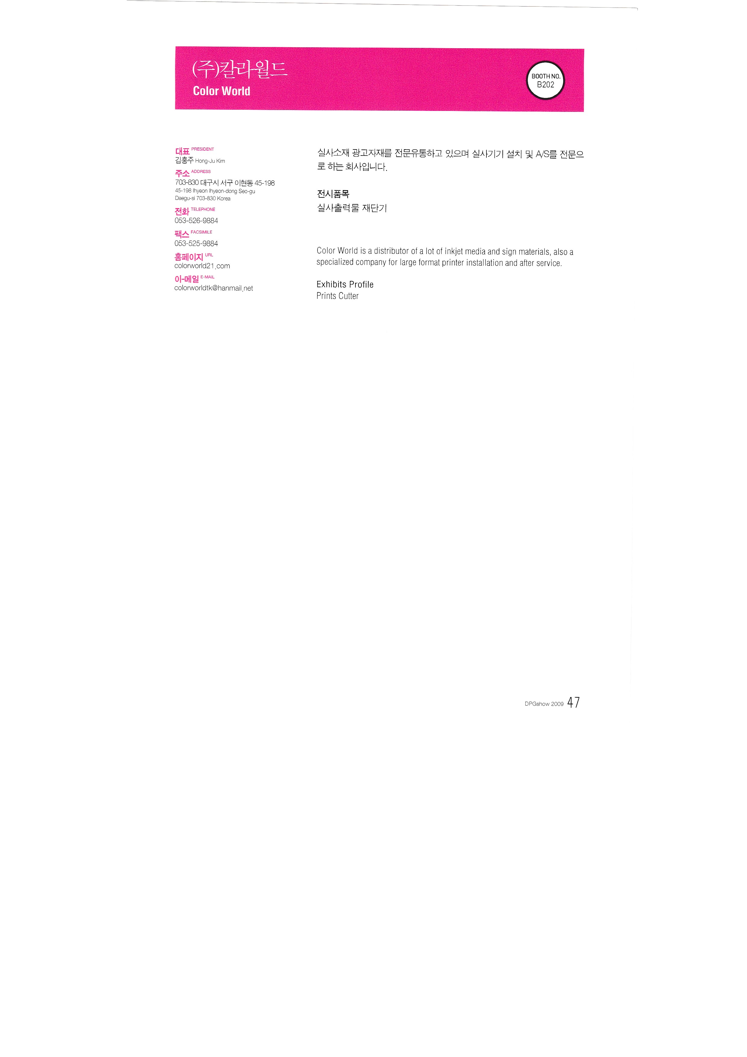 DPGSHOW 2009 DIRECTORY -2 : 제 6회 국제디지털프린팅 및 그래픽디자인전 : DPGSHOW 2009 DIRECTORY -1: The 6th International Digital Printing and Graphic Design Exhibition