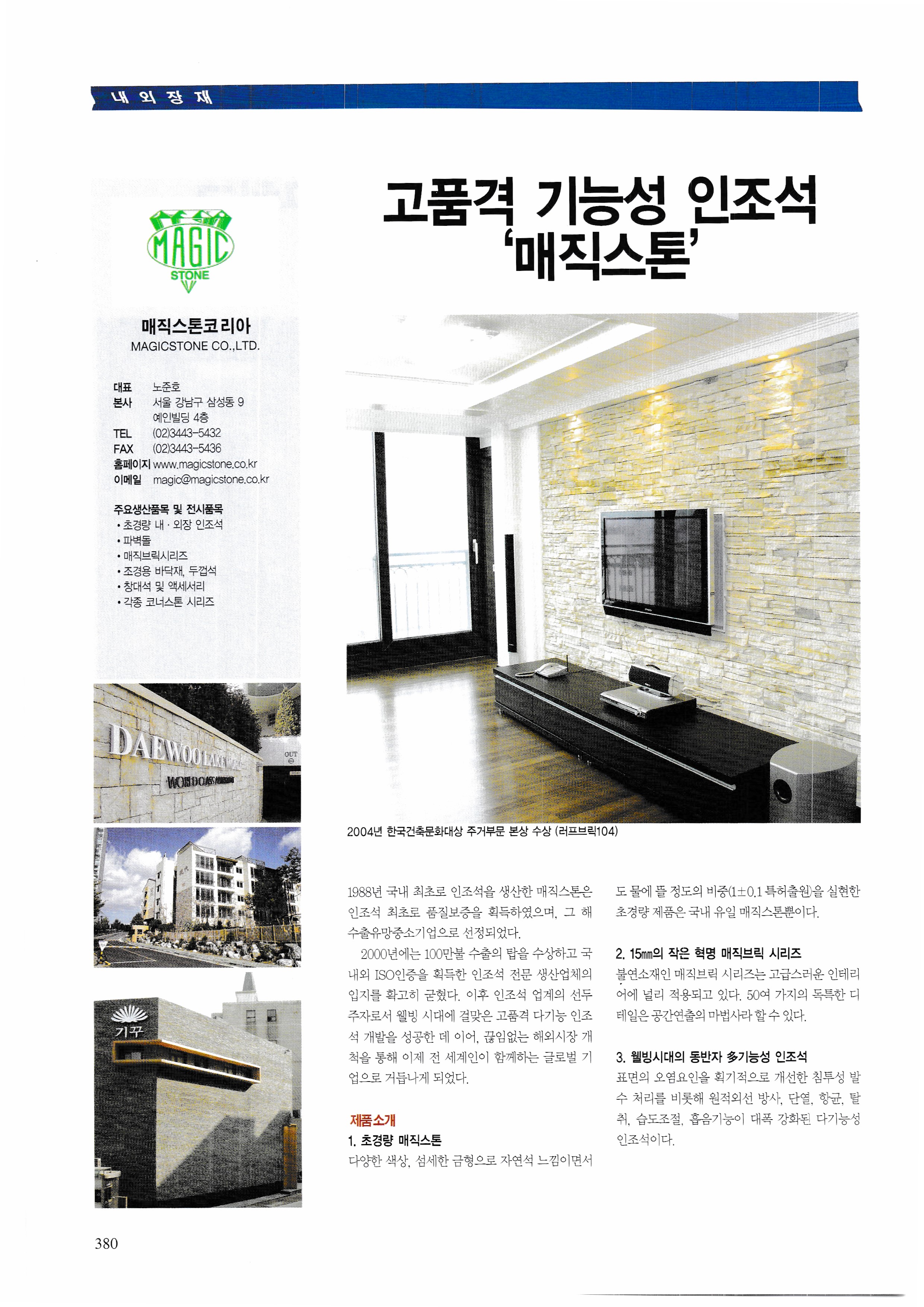 Dongbin Stone Dongyang Materials Industry Dong-A Stone Industry Dongyang CMI Donghwa Enterprise/ Donghwa Seama Dongil Art Grass Industry Donghi Industry Dooin Poly Cam DuPont DID Chori Corporation THEGA Korea Larson Jule Korea Logistics Corporation Linorium Korea Marumi Marble Korea Mapo Enterprise Magic Stone Korea Milim industry Biocera Beto Korea Boss Tech BMS Korea Samsung Special Construction Samwon Machinery Samyoung Trading/Bangkyo Samwon Stone Samik Industry Samjung Ceramics Samhyun General Seoul Flag Seojin Corporation Seohan Antamine Seokkyung 8 Suni International Seonggwang Project Sungji Lamitech Segun Industry Sedeco Sebong Special Sera Suspton Sehwa Stone Panel Songwon Sound space Repair industry Crystal General Trade Soonil Industry Shinsung Corporation Shinil Stone Shinhan Wallpaper Emerging Stone Asian21 IM Encore Borin Soundproofing art board Yangji Trading Xdin International Encep Nest Free Elvy LCM MIT Company Yein Ceramics Institute |