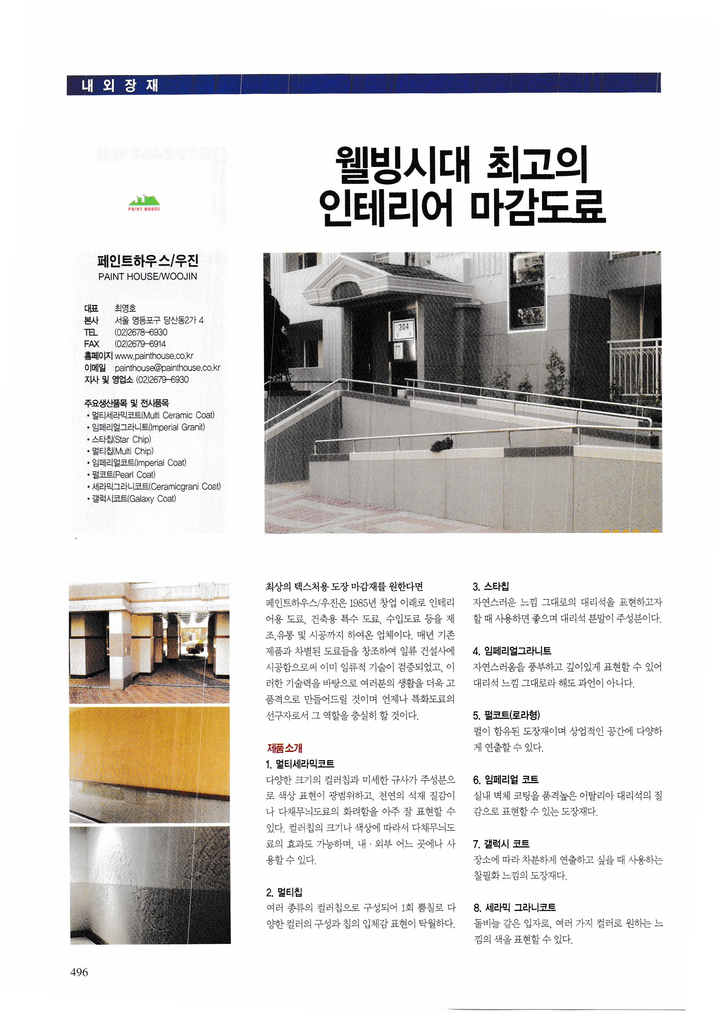 | 코나하우징 코리아주택 코리아테크놀러지 코미 크린세라믹 클레이맥스 타이거스톤 태성 태원목재 태일시스템 테라코코리아 토일론 토탈석재산업 팔도목재산업 페인트하우스/우진 평안석재 포산무역 풍산마루 프레스코데코 프릭스 플라스코유니온 플로라코리아 피오엔터프라이즈 하니셀 하나코퍼레이션 한국민예 한국불연재 한국웨버 한국지앤씨 한국호마이카 한솔홈데코 한화종합화학 한민국제화학 해인실업 현성종합목재 혜종건업 홍성산업 황토나라 황토세상 휴엔텍 흙예성 BISAZZA MOSAICO LIMITED Dalian Qisheng Stone Materials & Construction Co., Ltd. EL ALFY Evergreen Building Product Association Global Decking Guangzou Metals & Minerals IMP. & EXP . LTD Hallsun International LTD. JAPAN CERAMICS JiangYin Litai Decorative Materials CO.,LTD. LG화학 |