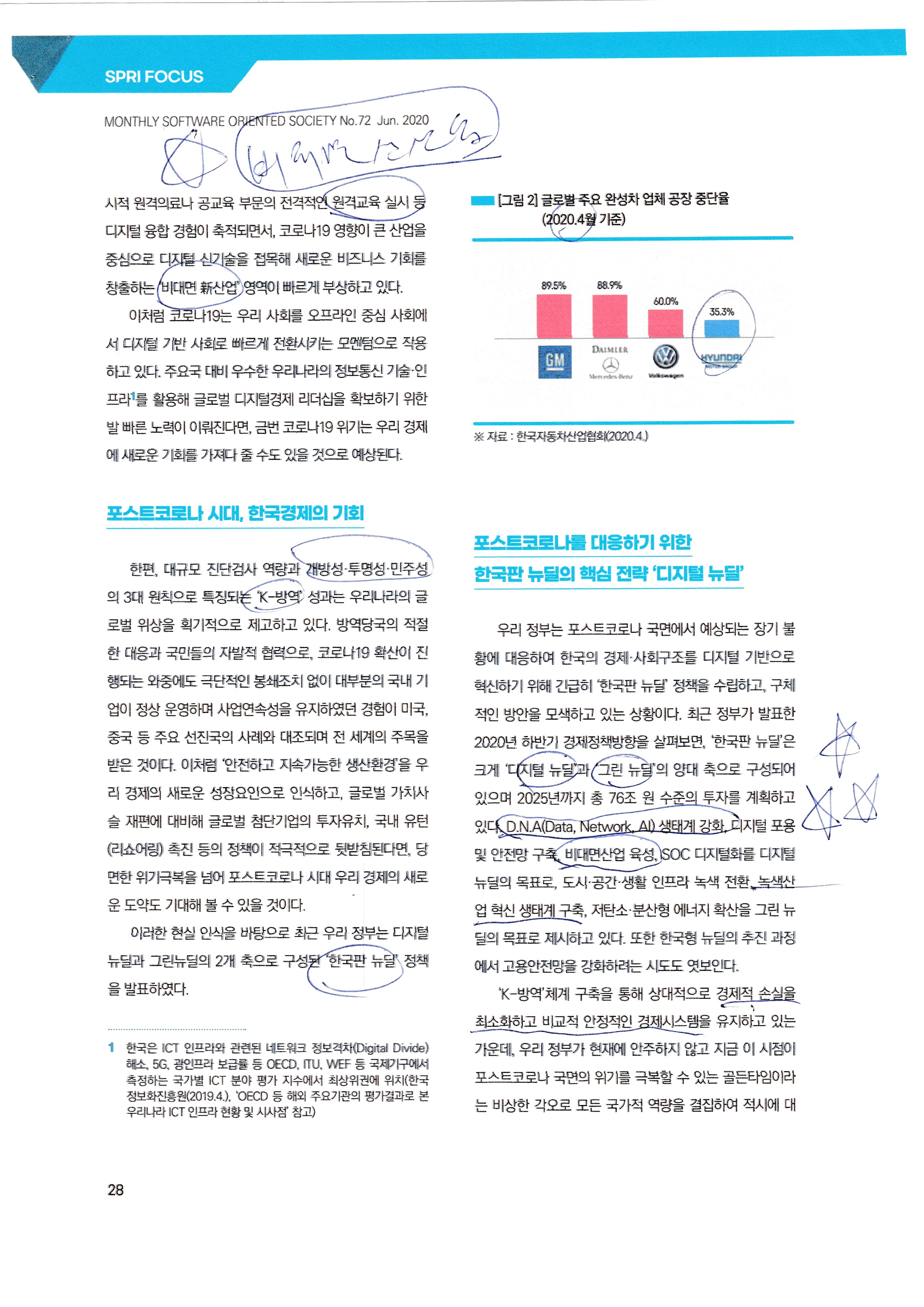 공부하기/★리포트의 거탑 ★포스트코로나 대응을 위한 한국판 뉴딜의 핵심전략, 디지털뉴딜, by 리치캣 2020. 7. 16. 반응형 ★,포스트코로나 대응을 위한 한국판 뉴딜의 핵심전략, 디지털뉴딜, 반응형 공유하기 게시글 관리 리치캣의 현재 그리고 미래 저작자표시 비영리 변경금지 (새창열림) '공부하기 > ★리포트의 거탑' 카테고리의 다른 글 트렌드 리포트 20200324,반사경 기반 카메라, 맥락인식형 디지털 어시스턴트 특허, 3D 펜, 자유주행트럭용 원격조종 시스템, 키즈 영어 교육앱, 원격 비서 서비스, 여행자용 지역병원 예약 앱, 스.. (0) 2020.07.19 20200310 트렌드 리포트,생체 데이터 트래킹, 아이패드에 적용된 라이다 스캐너, 모션캡쳐기능 통합앱, 초소형 LiDAR 센서, (0) 2020.07.19 2020 트렌드, 코로나19가 바꿔놓은 일상, (0) 2020.07.14 멀티라이프를 위한 스트리밍, (0) 2020.07.14 트랜드 리포트 20200210, 애플 멀티앵글지원 AR동영상 합성기 특허, 애플 스마트 콘센트, 투명한 사물도 인식이 가능한 머신러닝 알고리즘, 채혈 로봇, 맥락인식형 광고플랫폼, 질병예방중심의 .. (0) 2020.07.10 관련글 트렌드 리포트 20200324,반사경 기반 카메라, 맥락인식형 디지털 어시스턴트 특허, 3D 펜, 자유주행트럭용 원격조종 시스템, 키즈 영어 교육앱, 원격 비서 서비스, 여행자용 지역병원 예약 앱, 스.. 20200310 트렌드 리포트,생체 데이터 트래킹, 아이패드에 적용된 라이다 스캐너, 모션캡쳐기능 통합앱, 초소형 LiDAR 센서, 2020 트렌드, 코로나19가 바꿔놓은 일상, 멀티라이프를 위한 스트리밍, 댓글