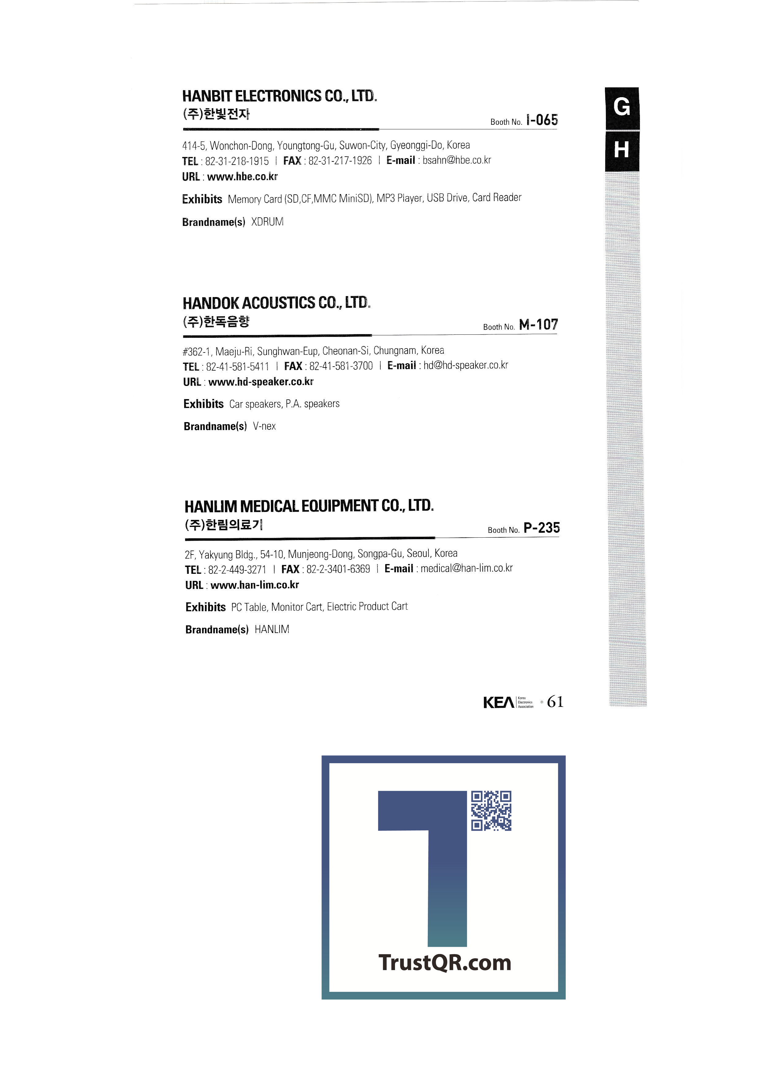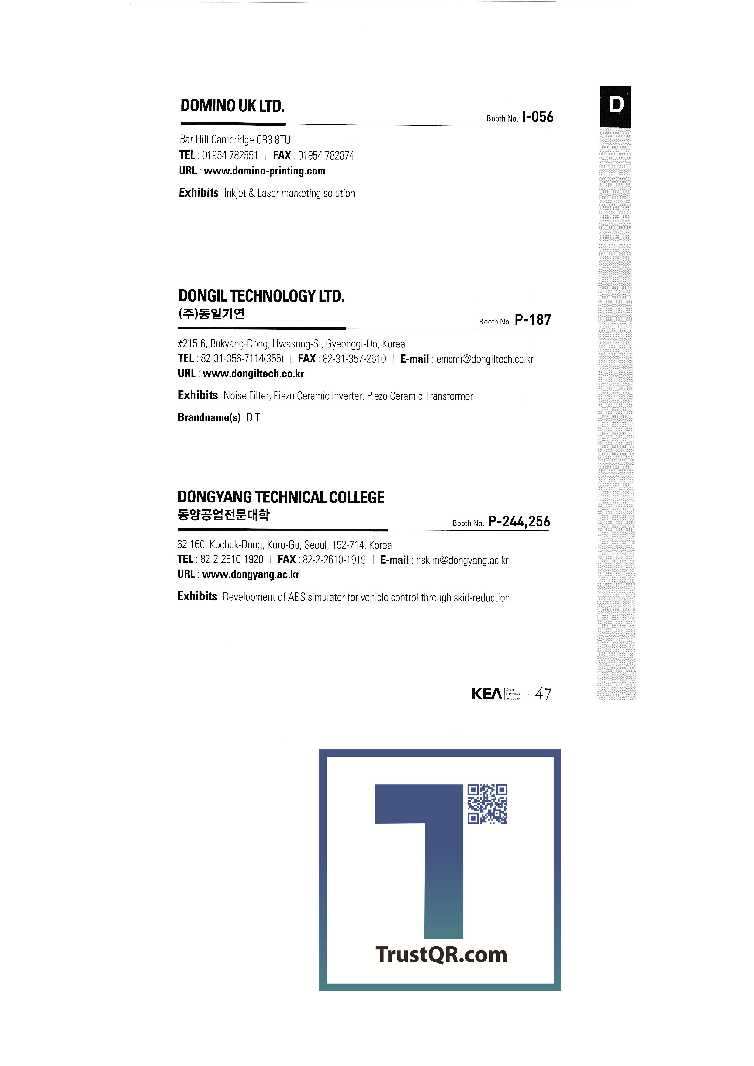 SAMBI Technology Co., Ltd. Seven data A & S Group AAVID THERMALLOY, LLC AVB Systems AQ Fix Co., Ltd. Ace Marketing & Media Co., Ltd. ACME ELECTRONICS CORPORATION ADDA CORPORATION ADVANCED INTERCONNECTIONS CORP Along Ltech Co., Ltd. Air Vita Co., Ltd. Alt Soft Co., Ltd. AMOI ELECTRONICS., LTD AM-TECH.CO.,,LTD Anytech Technology APPLE APW MCLEAN ASIALAND Asiana IDT ASJ ATEC CO., LTD. AURAS TECHNOLOGY CO., LTD AUTOMATIC VALVE CORP AVANTES BV Korea Accen Corporation B&B Corporation BEL FUSE INC. Bentech DMC BIGFOOT COMPUTERS Bluebird Soft Co., Ltd. Bluegen Co., Ltd. BMF CORPORATION Reporting Corporation KJC Corporation BOSSARD GROUP Korea Bossard Co., Ltd. BREECE HILL Buick Electronics C&C Instruments Co., Ltd. CANESTA Caspian Corporation Celluon Co., Ltd. Celen Co., Ltd. Creative industries Changwoo Electronics Co., Ltd. Chemtronics Co., Ltd. CHINA ELECTRONIC APPLIANCE CORP.(CEAC) CHINA ELECTRONICS NEWS AGENCY CHINA INTERNATIONAL CONSUMER ELECTRONICS SHOW Advanced Jungang Brain Precision CHROMA ATE INC. Qingdao Industry Co., Ltd. Chungyoung Digital Co., Ltd. Cheonghae Engineering Co., Ltd. Cheongsong Electronics CIXI HONGYI ELECTRONICS CO., LTD. CJ Tech Co., Ltd. COBY ELECTRONICS CORPORATION Coil Master Co., Ltd. COMAIR ROTRON, INC. Cumming LCD Co., Ltd. COOLMOD INFORMATICA SL Core Electric CORE-TEXH CORPORATION Cresin Co., Ltd. Cuckoo Homesys Co., Ltd. Dajeon Electric Daeyang Precision Co., Ltd. Daea Mediatech Co., Ltd. Daehee Corporation Daelim Electronics Daesung Electric Industries Co., Ltd. Daesung L Tech Co., Ltd. Daho Trading Corporation Daekyung Bathcom Co., Ltd. Dasung Magnetics Co., Ltd. Dectron DELPHI AUTOMOTIVE SYSTEMS DEMPA PUBLICATIONS, INC. Continental Technology Co., Ltd. DIASONIC TECHNOLOGY D-boss Co., Ltd. Digital Cube Co., Ltd. Digital EM Co., Ltd. Digital Zone Co., Ltd. DIGUANG ELECTRONICS CO., LTD. DM Technology Co., Ltd. Domino Korea Co., Ltd. DOMINO UK LTD. Dongil Kiyeon Co., Ltd. Dongyang Technical College Doowon Corporation Dowon Optic Co., Ltd. DQ Tech Co., Ltd. Dynacast Korea Co., Ltd. DYNACAST, INC. Lee Chae Promotional Hall for Electronic Product Hazardous Material Test Analysis Support Project ELECTRONIC TECHNOLOGY CO.,LTD ELO TOUCHSYSTEMS, INC. MC Compliance Co., Ltd. MC Technics Corporation EOS Co., Ltd. Ere Electronics Industry Co., Ltd. ES Tech Isol Information & Communication Co., Ltd. Lee Song IMC Co., Ltd. EUROTRADE MEDIA CO., LTD EVE BATTERY CO.,LTD EVERLIGHT ELECTRONICS CO., LTD Evernet Electronics Co., Ltd. Expand Tech Co., Ltd. Flowell Freesat Co., Ltd. FUJI TERMINAL INDUSTRY CO., LTD Goldstar Ace Industry Co., Ltd. Gasung Pack Co., Ltd. GE SILICONES GI TOSHIBA Silicon Korea Grants A&T Co., Ltd. GLOBAL SOURCES PUBLICATIONS LTD. Gold Mac GOTEC SA SCS Korea GST Co., Ltd. GT Electronics Co., Ltd. Gyeonggi-do (Gyeonggi Small and Medium Business Support Center) Kyunglip Engineering Co., Ltd. HAGIWARA ELECTRONICS CO.,LTD Hanbaek System Co., Ltd. Hanbit Electronics Co., Ltd. Handok Sound Co., Ltd. Hallym Medical Co., Ltd. Hallym Forcetech Co., Ltd. Hans Hasper Co., Ltd. |