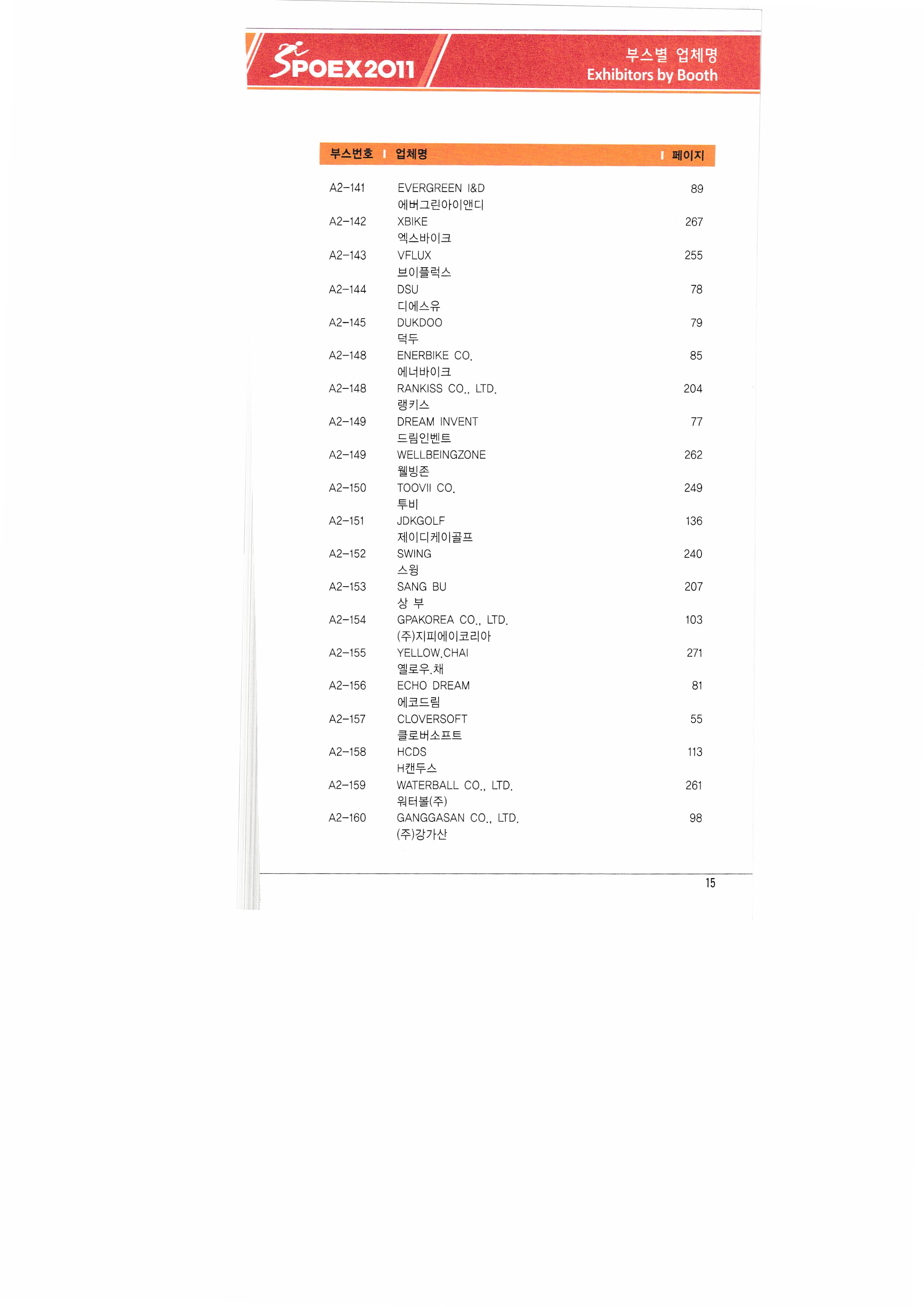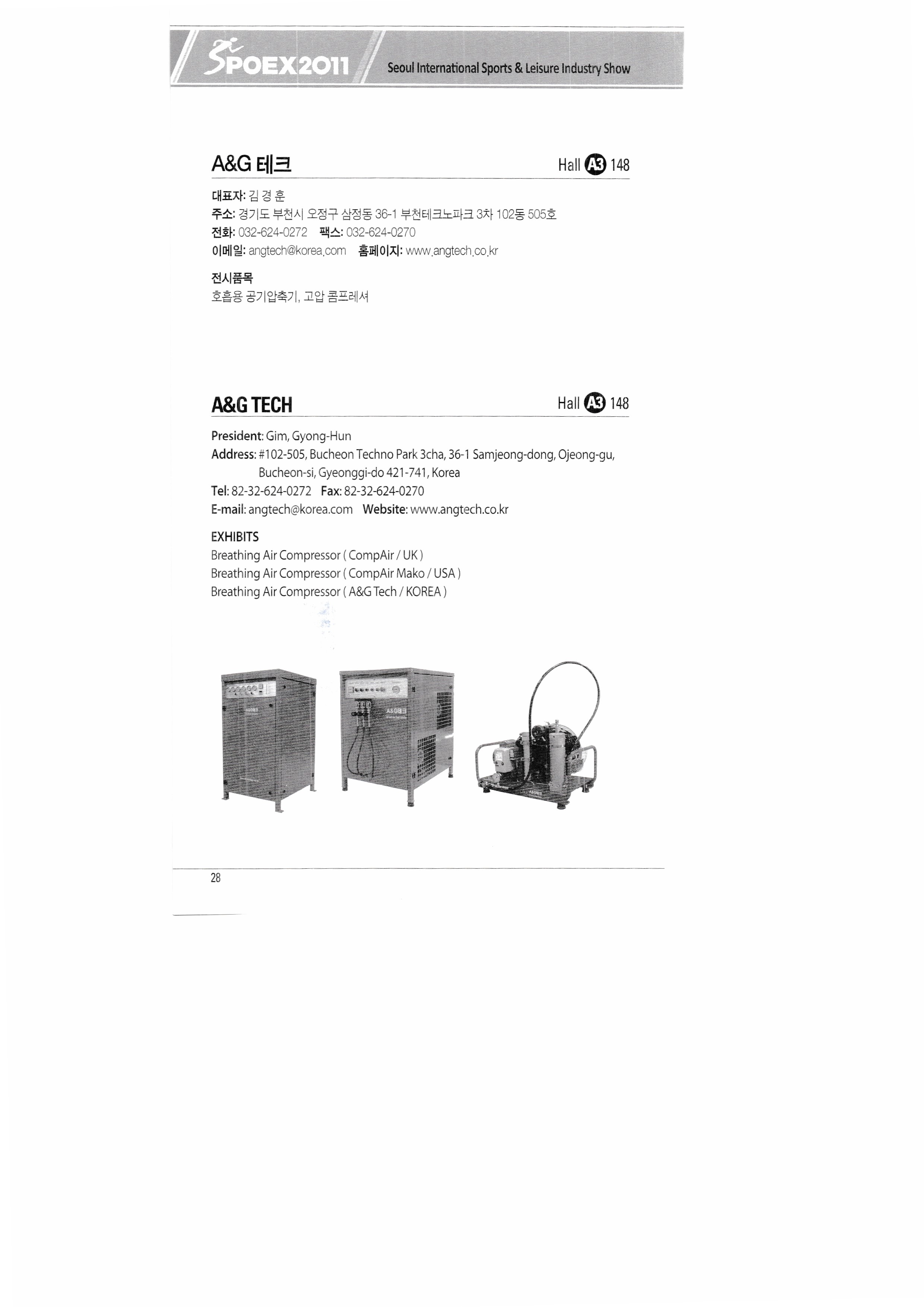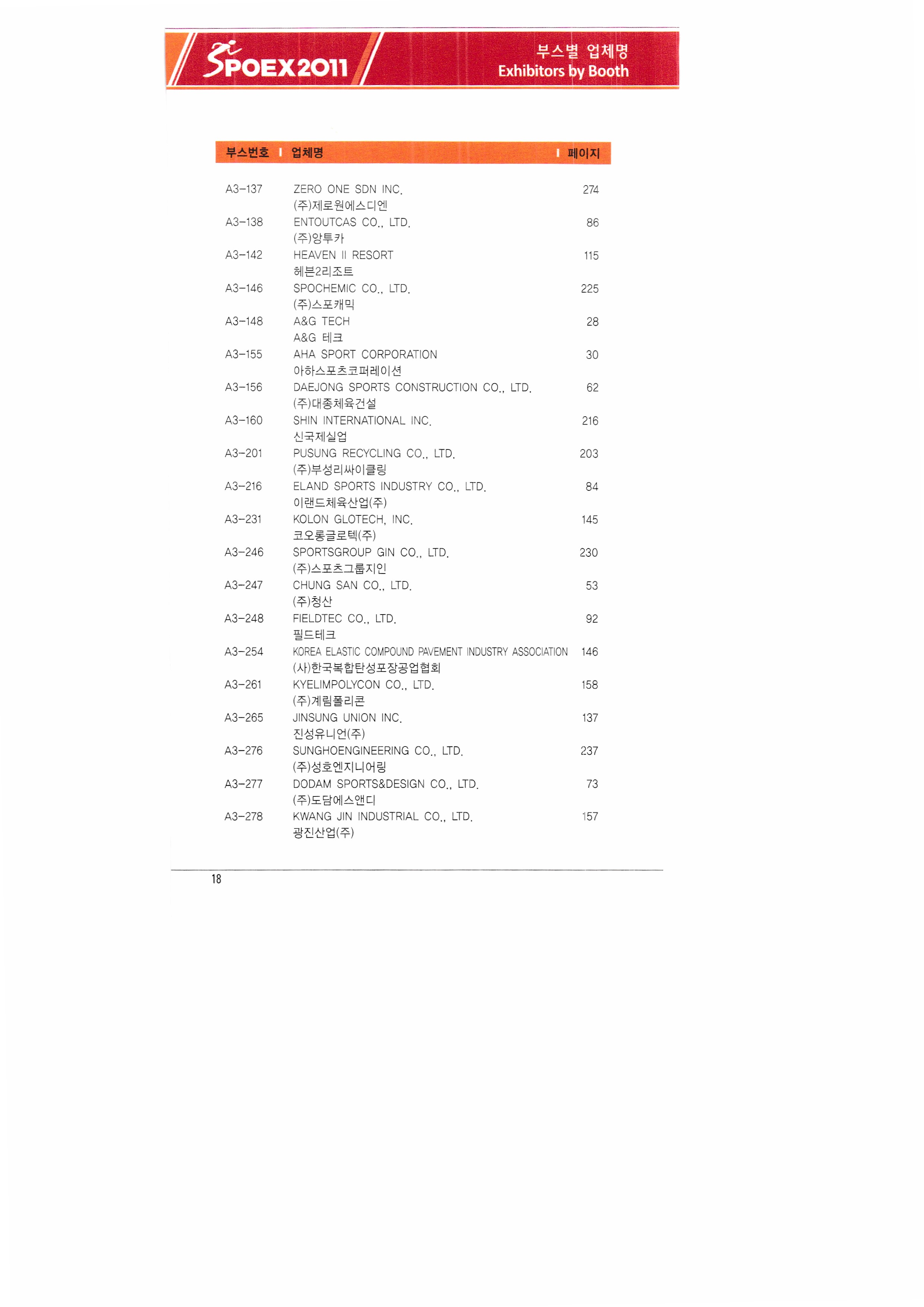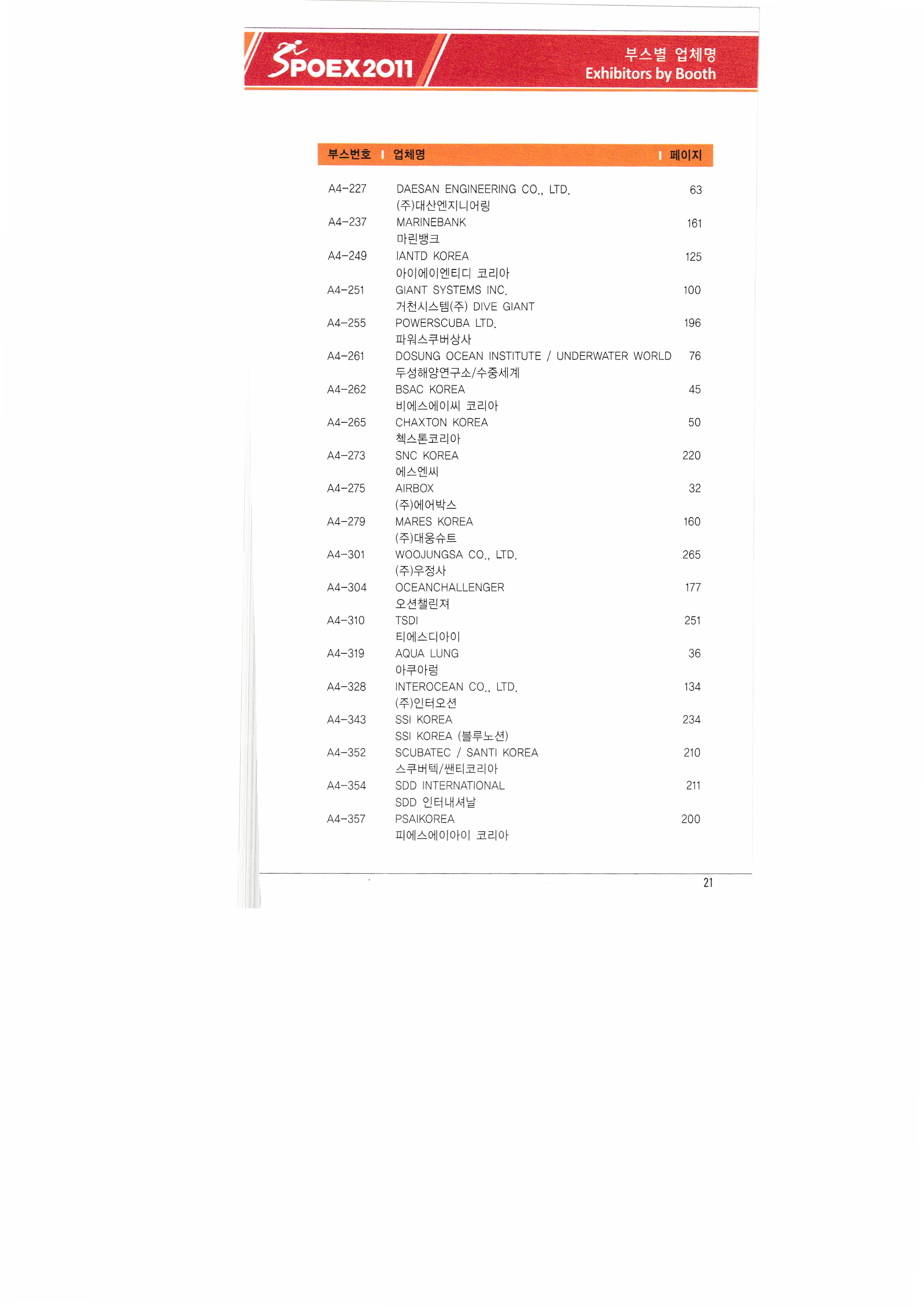 | ㈜쓰리엔텍 A&G테크 에이디에스코리아 아하스포츠코퍼레이션 ㈜아이아커뮤니케이션 ㈜에어박스 ANHUI SAUNAKING CO.,LTD ㈜안나푸르나 아쿠아코 아쿠아렁 에이티엘-제이이에프 |