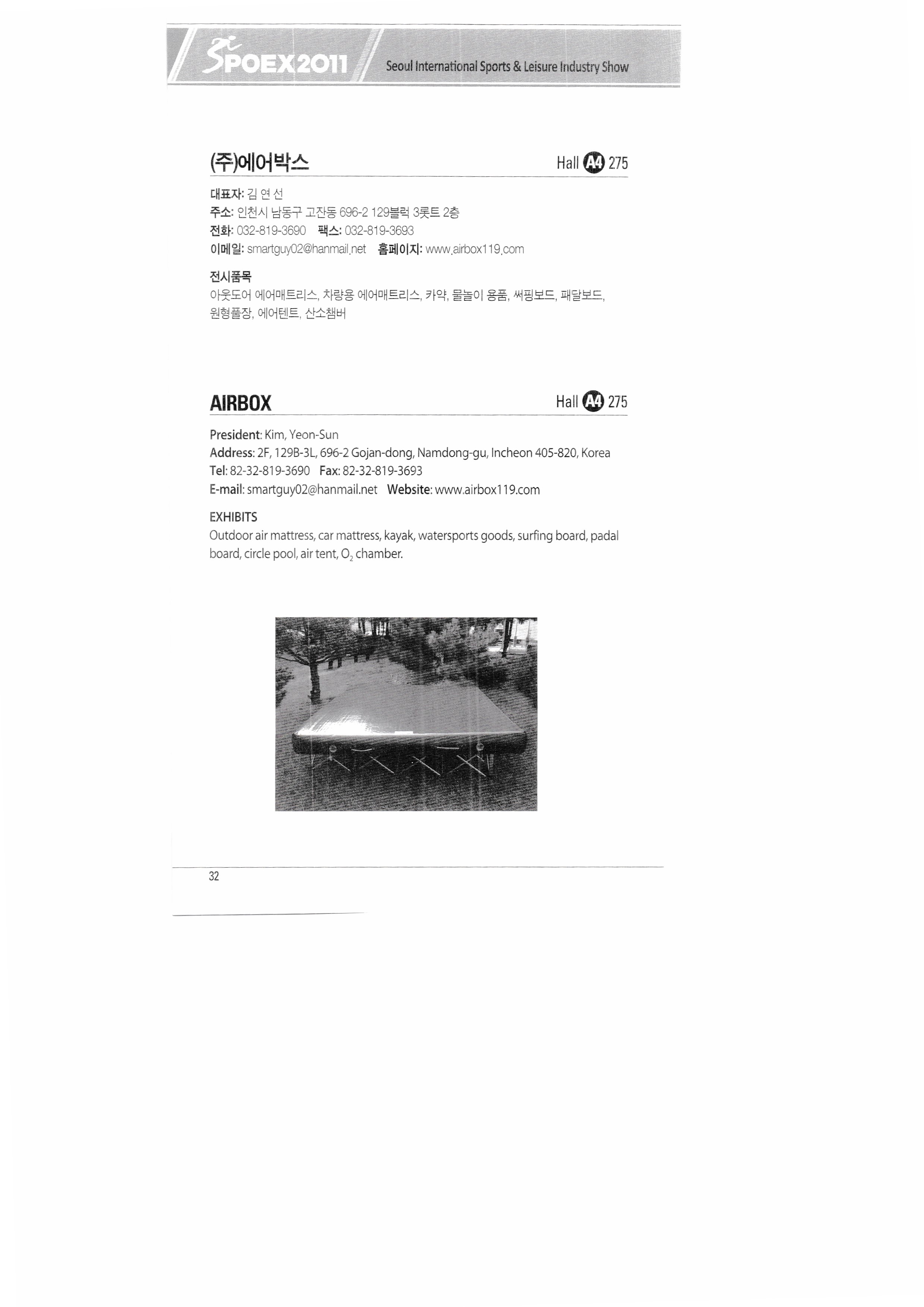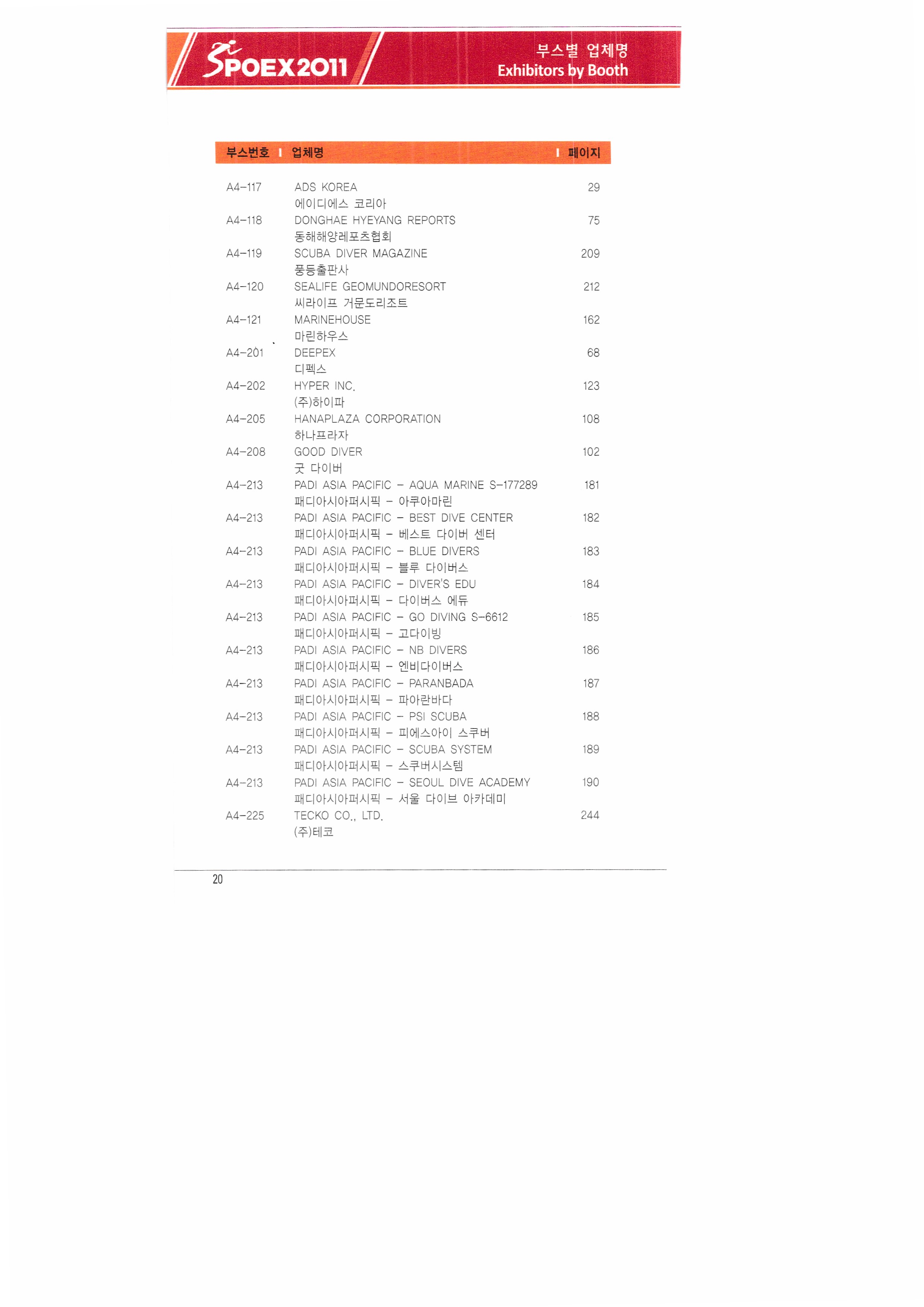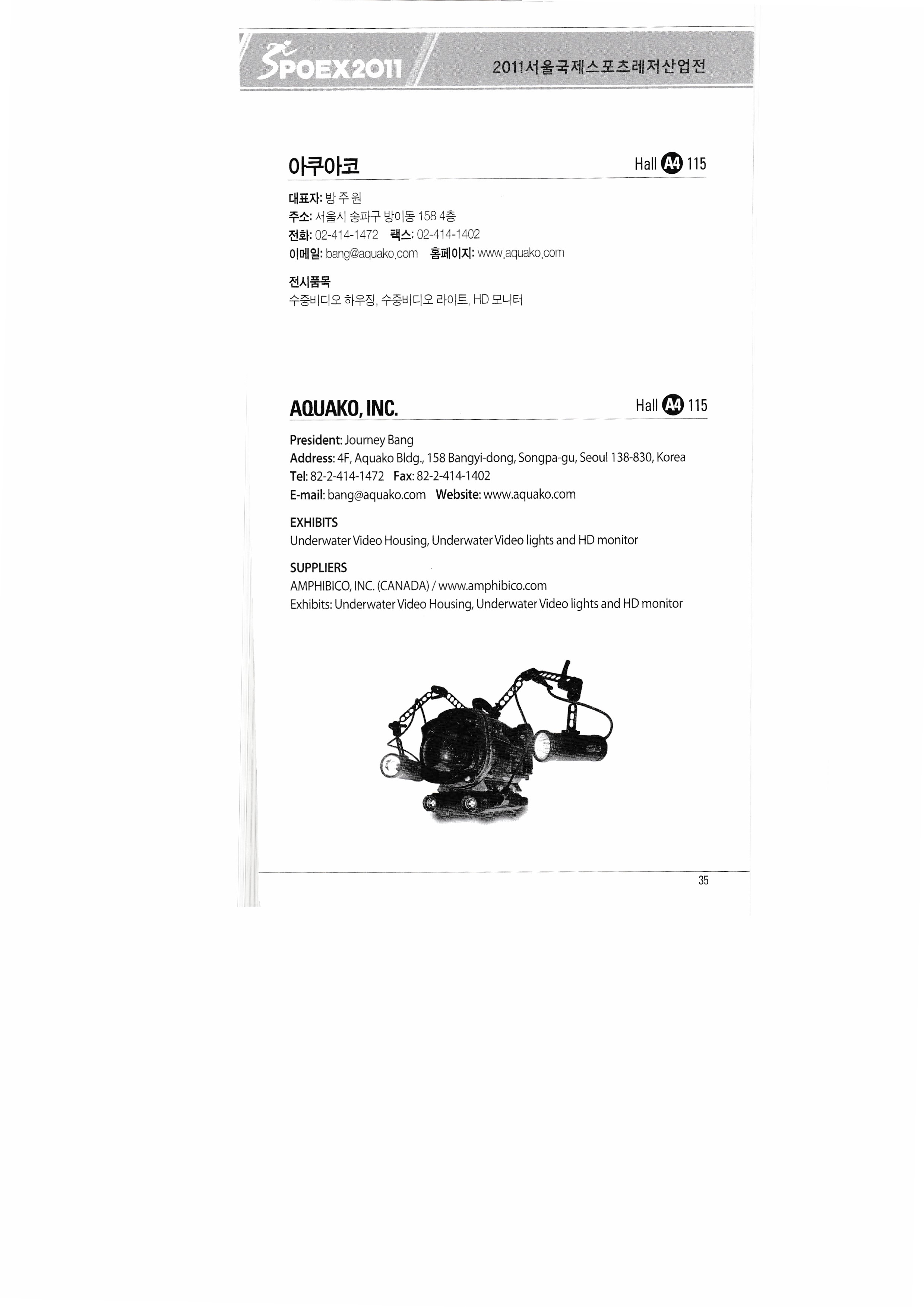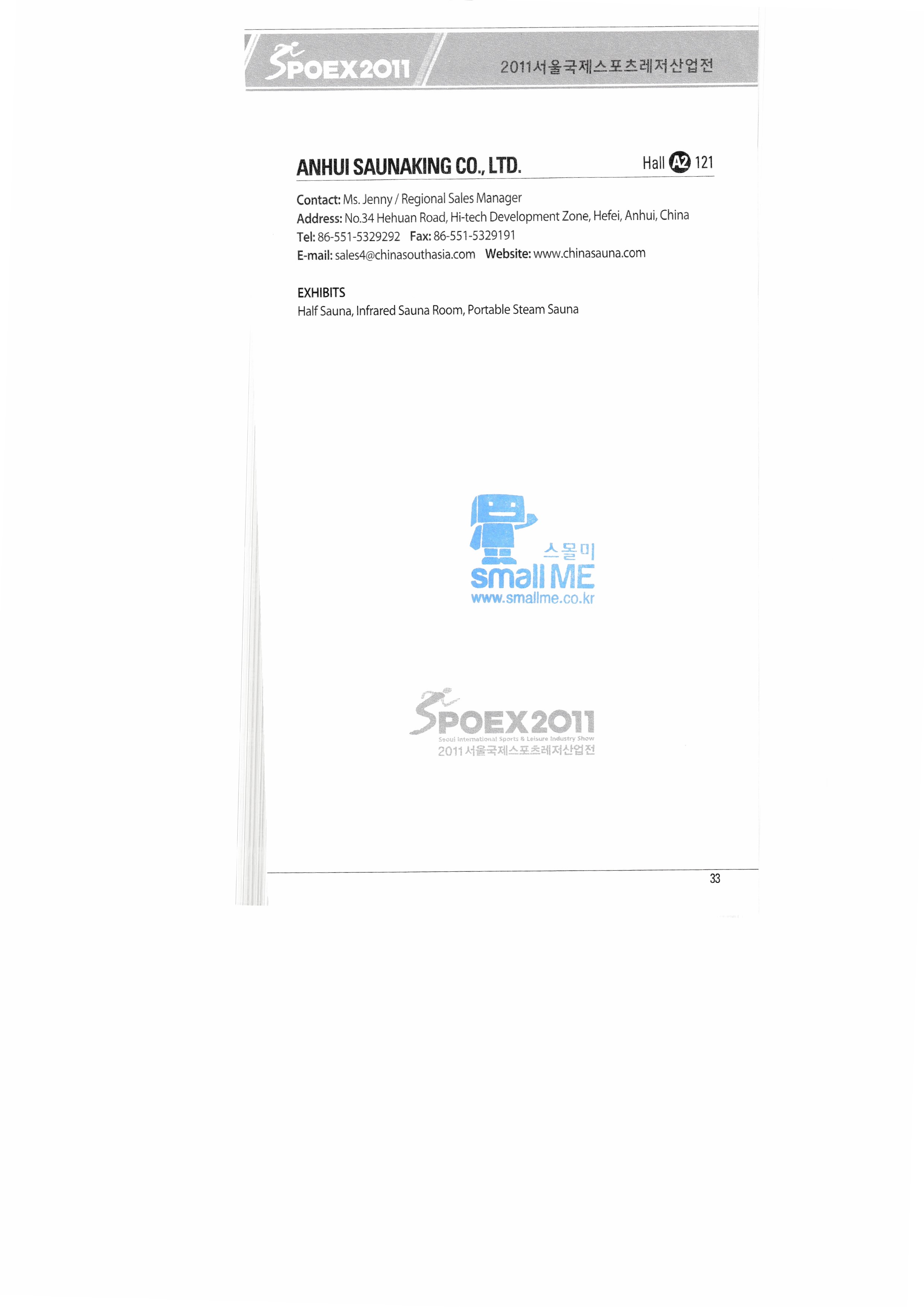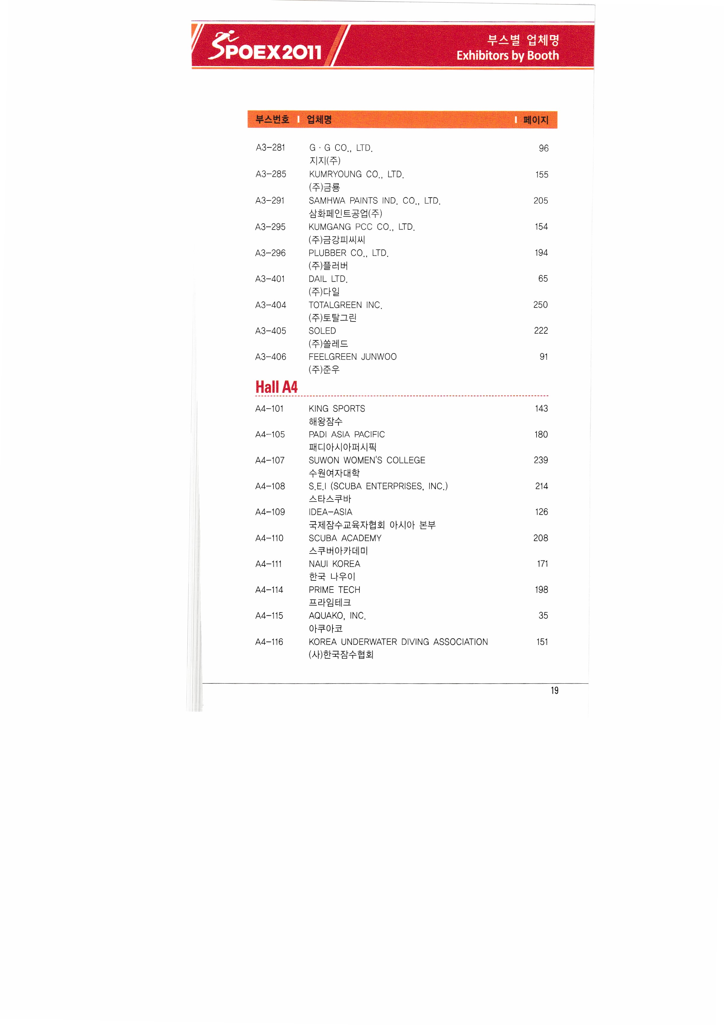 | ㈜쓰리엔텍 A&G테크 에이디에스코리아 아하스포츠코퍼레이션 ㈜아이아커뮤니케이션 ㈜에어박스 ANHUI SAUNAKING CO.,LTD ㈜안나푸르나 아쿠아코 아쿠아렁 에이티엘-제이이에프 |