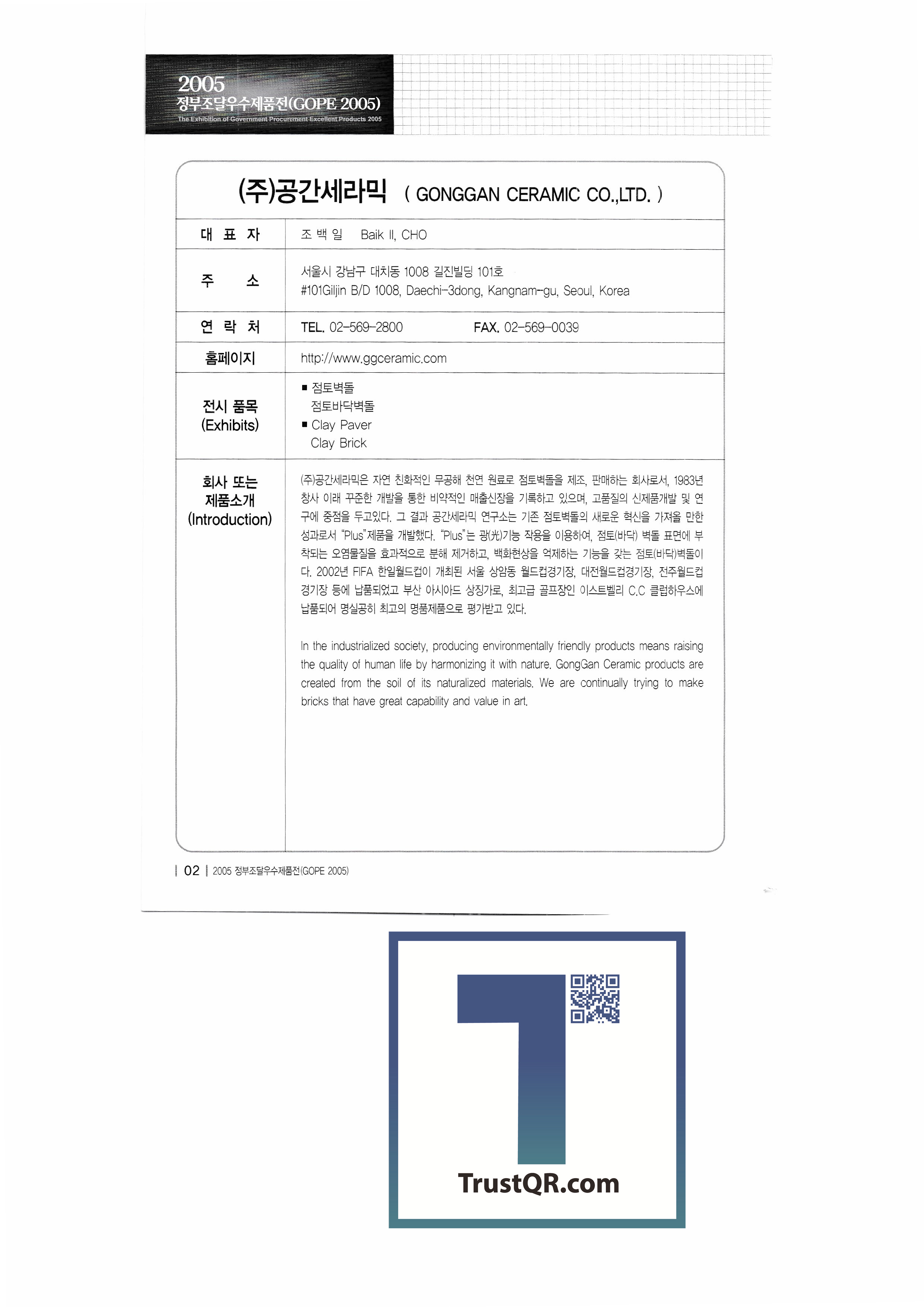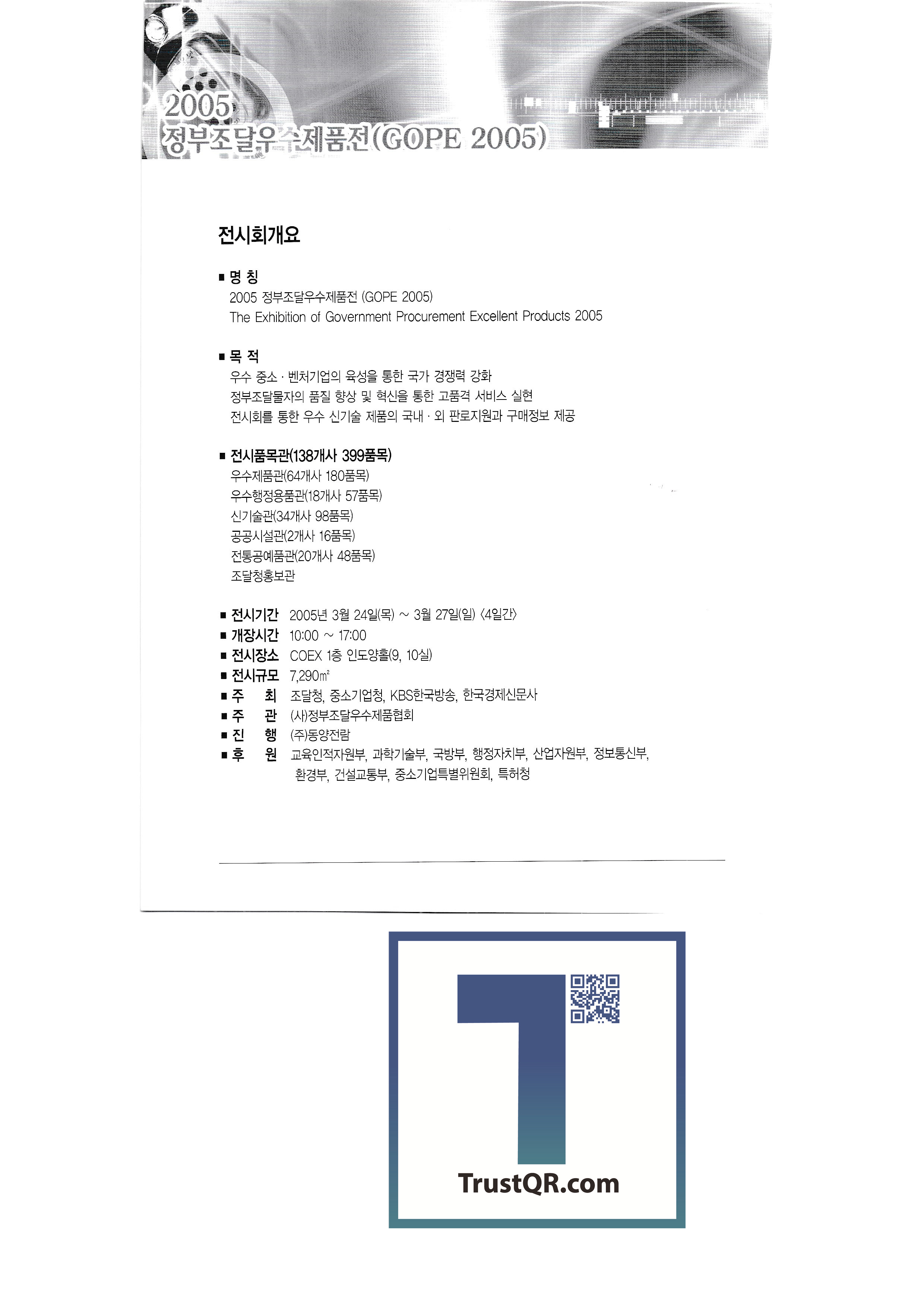 정부조달 우수제품전 2005, Excellent government procurement product exhibition 2005,