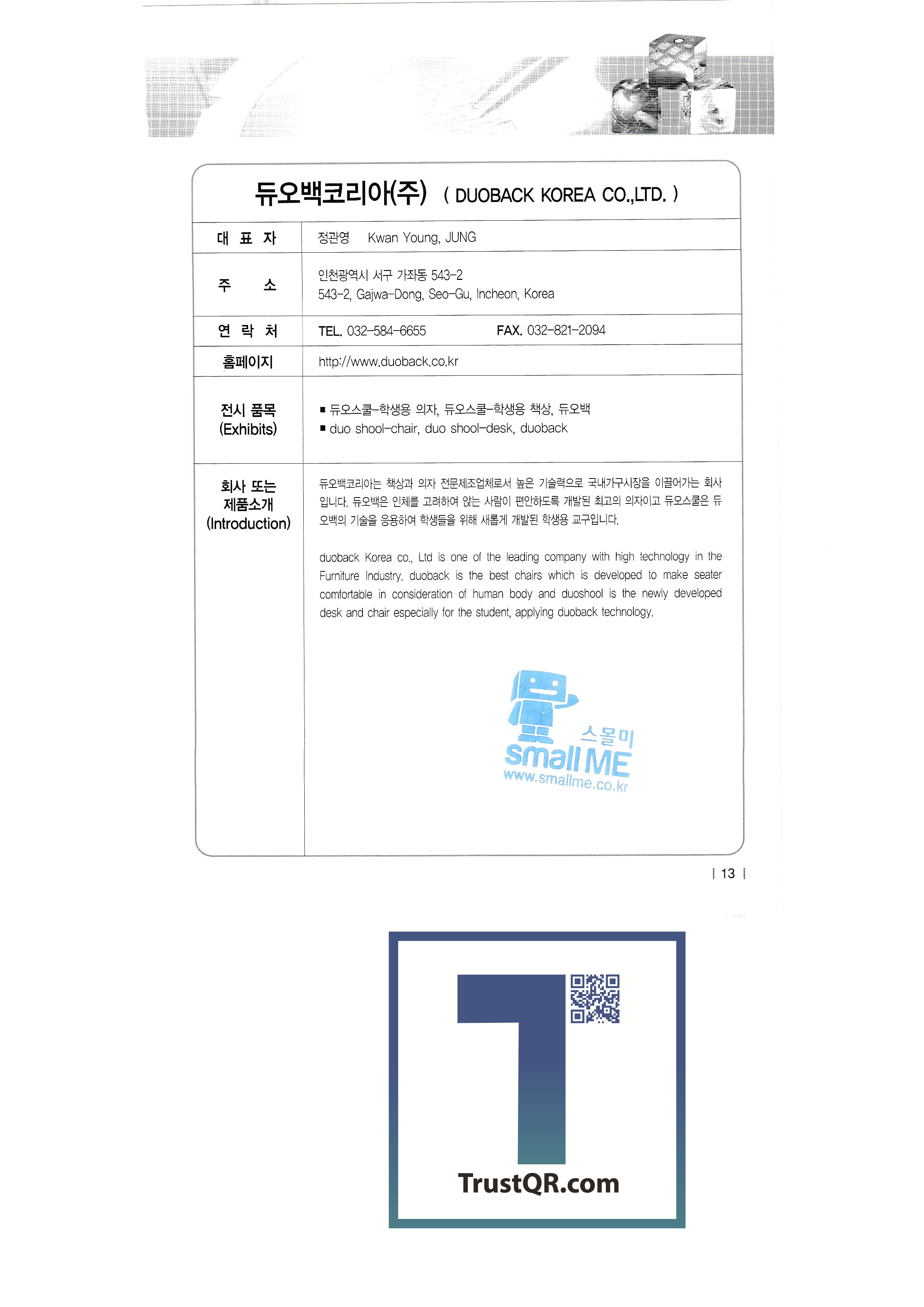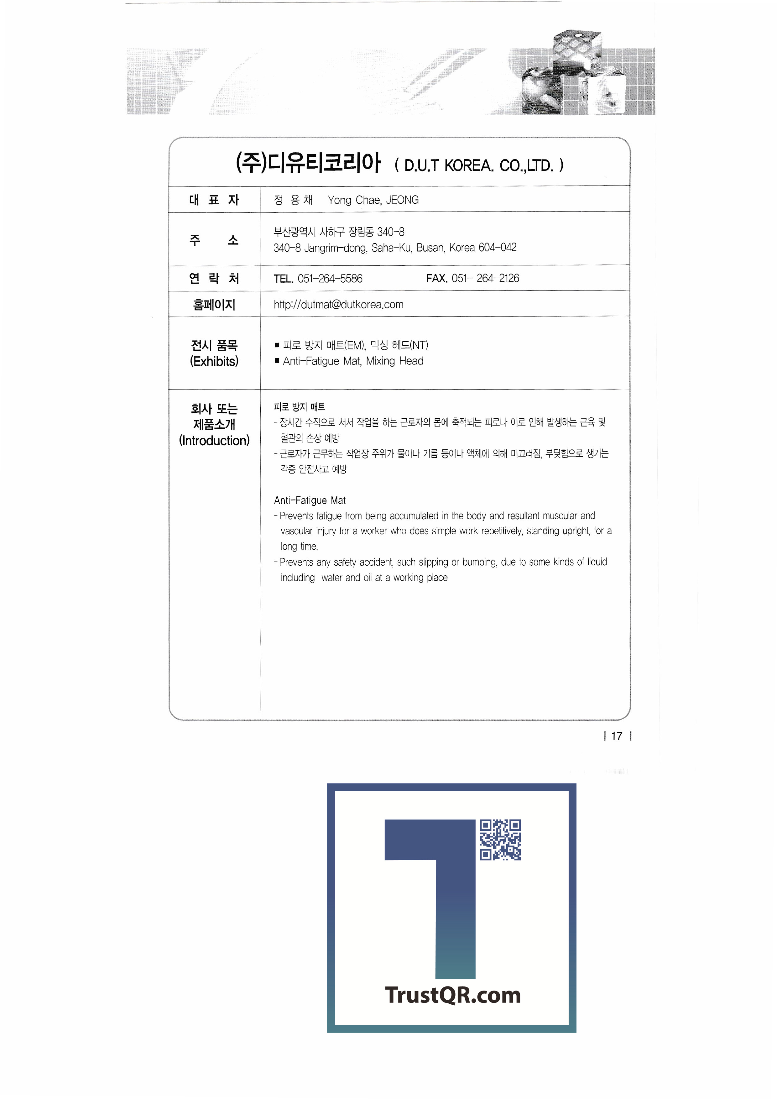 Gapyeong Tech Space Ceramic Co., Ltd. Geumgang Arts Co., Ltd. Gila C&I Co., Ltd. Height and height Daelim Development Co., Ltd. Daejin Machinery Industry Dongbang Data Technology Co., Ltd. Dong-A Metal Corrugated Pipe Co., Ltd. Dong-A Electric Industries Co., Ltd. Dongjin Packaging Co., Ltd. Doowon Corporation Duoback Korea Co., Ltd. D.C.S Co., Ltd. DINETNET Co., Ltd. DND Electronics Co., Ltd. DUT Korea Co., Ltd. Rotem Co., Ltd. |