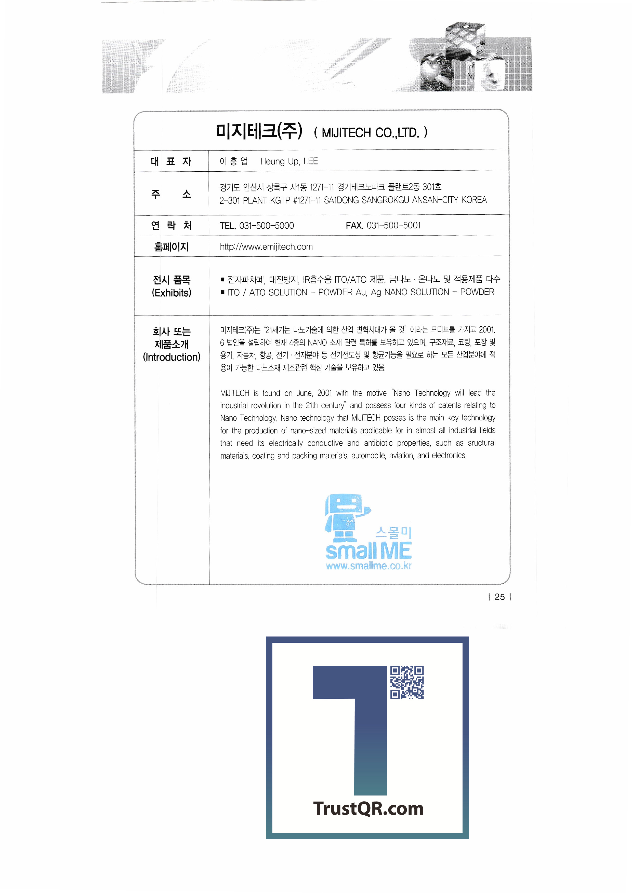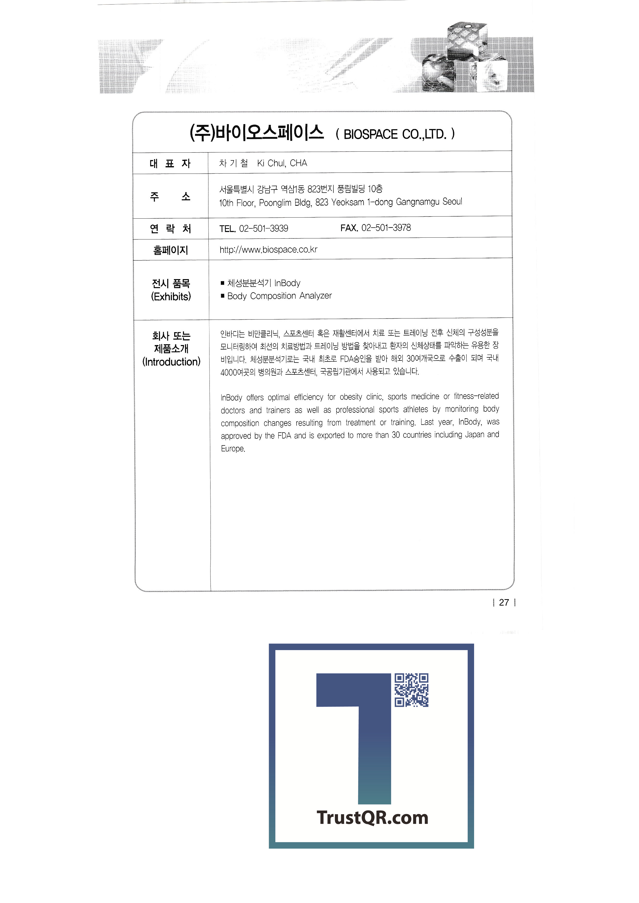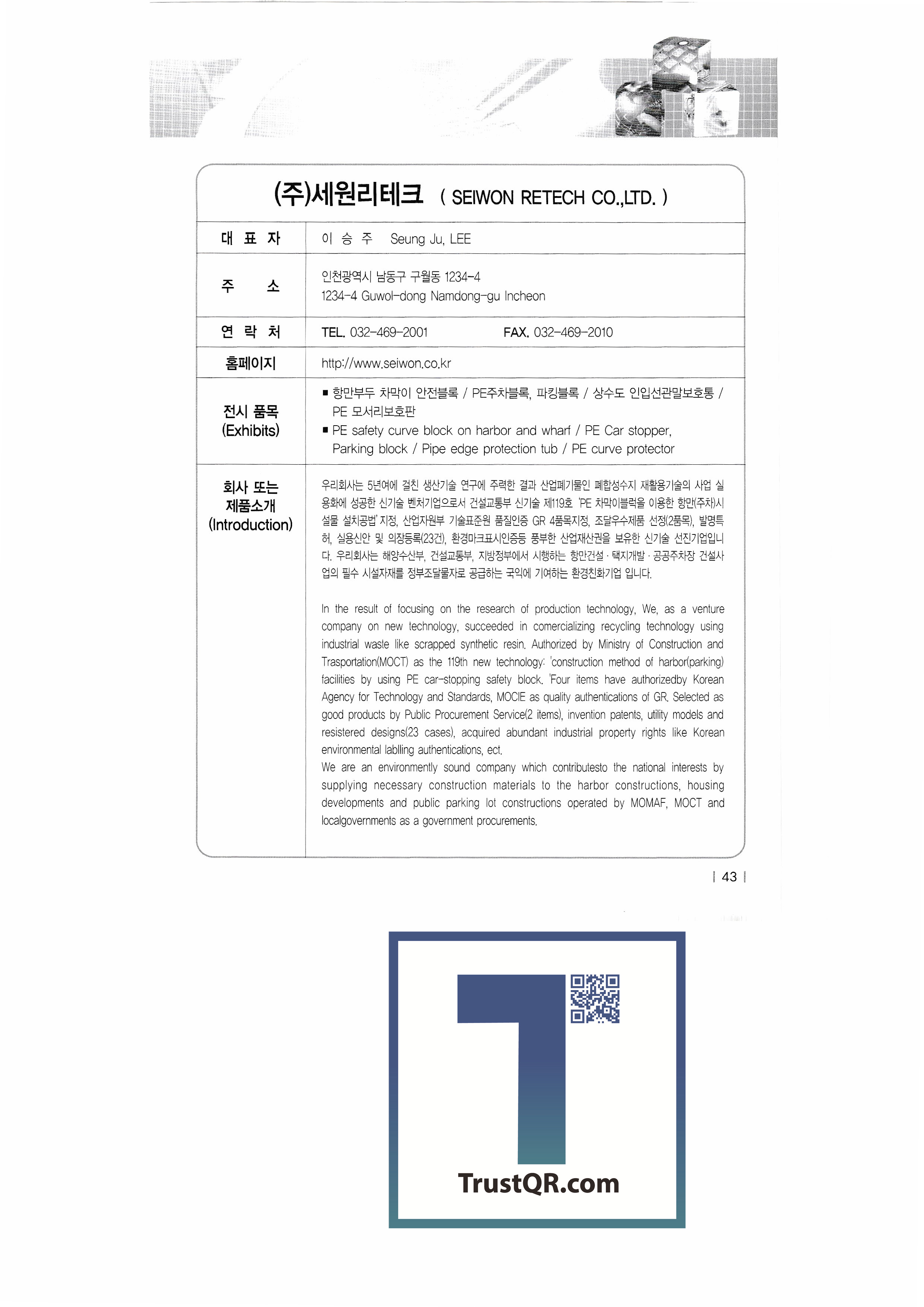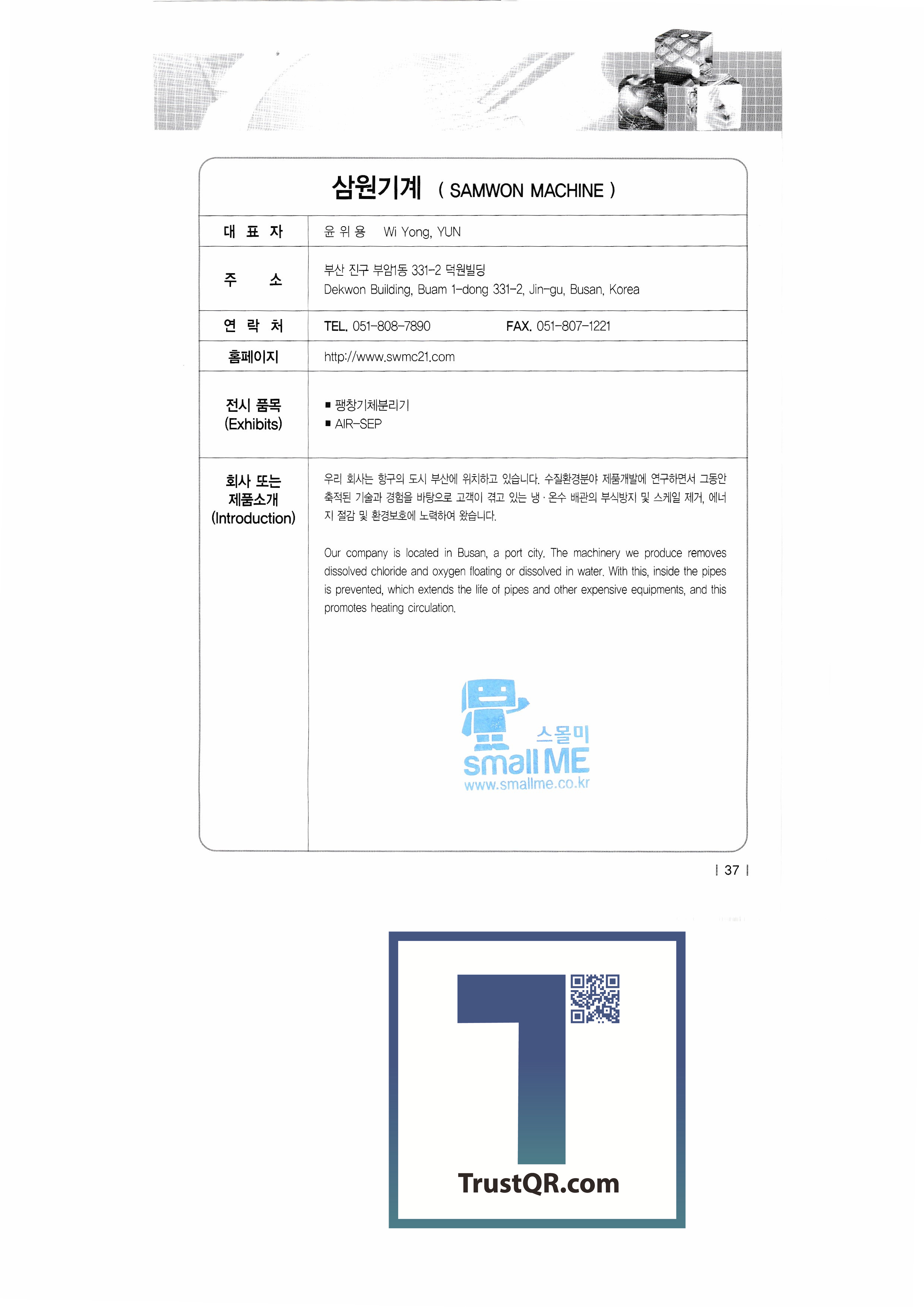 Lotte Canon Co., Ltd. Ribat Corporation Mantu Business Co., Ltd. Merritt Corporation Myeongsung Tech Co., Ltd. Myeong-Soo Production Miji Tech Co., Ltd. BioMist Technology Co., Ltd. Biospace Co., Ltd. Bio Hi-Tech Co., Ltd. White soap Beomhan Corporation Booker Schering Korea Co., Ltd. Vita Course Co., Ltd. Samkwang System Co., Ltd. Sambo Computer Co., Ltd. Samsung Industry Co., Ltd. Samsung Electronics Co., Ltd. Samwon Machinery Samyungsa Samjin Precision Co., Ltd. Seogwang Industrial Co., Ltd. Seoksung Enterprise Sungho Enterprise Sewon Lee Tech Co., Ltd. Sail Machinery Co., Ltd. Sion Technics Co., Ltd. Shindorico Co., Ltd. Shinsung Engineering Co., Ltd. Shinjeong Development Shinjin Precision Co., Ltd. Shinhan Energy Co., Ltd. Shinhan Precision Co., Ltd. Sergeio O/A C. World Co., Ltd. |