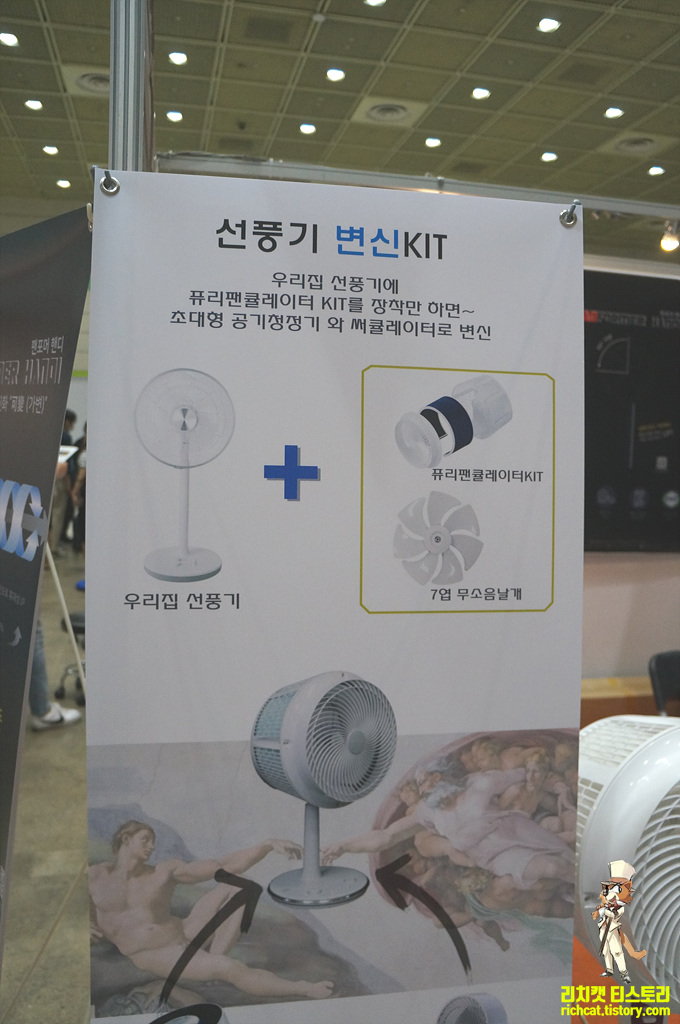 기존 선풍기에 공기정화기를 부착하는 방식이다. 나름 신선한 아이디어.