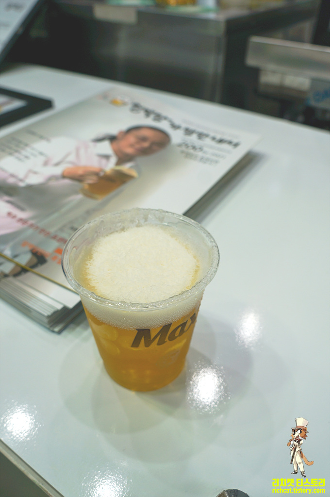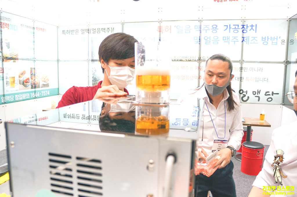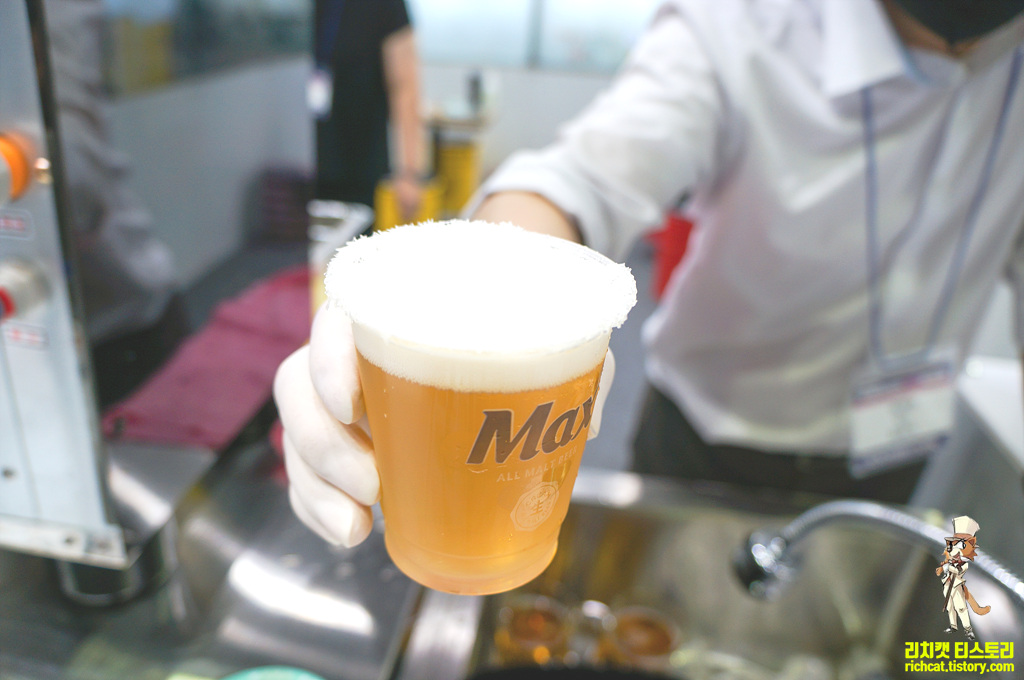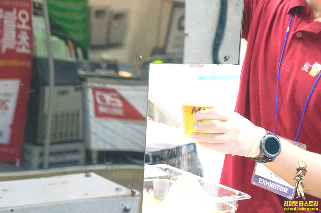 이번 전시회에서 가장 맛있었던 시식코너, 처음엔 맥주위에 얼음을 갈아넣는 듯 해서... 맥주가 밍밍해지겠는데... 라고 생각했는데... 이게 얼음이 아니라 맥주얼음이어서....밍밍해지지 않는 방식 - GOOD~!