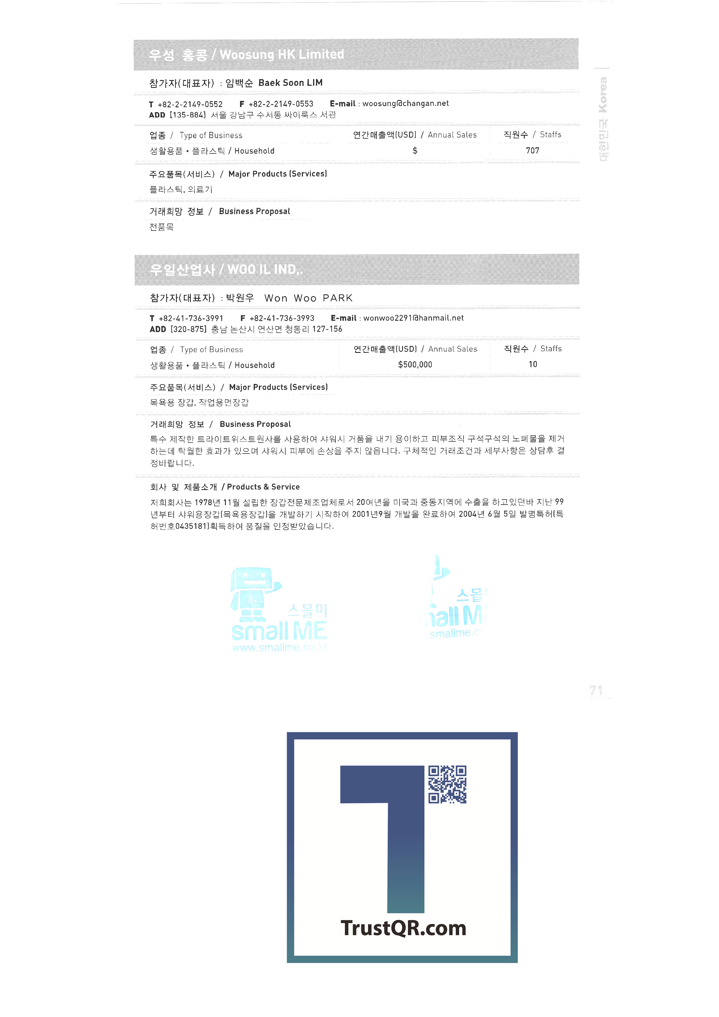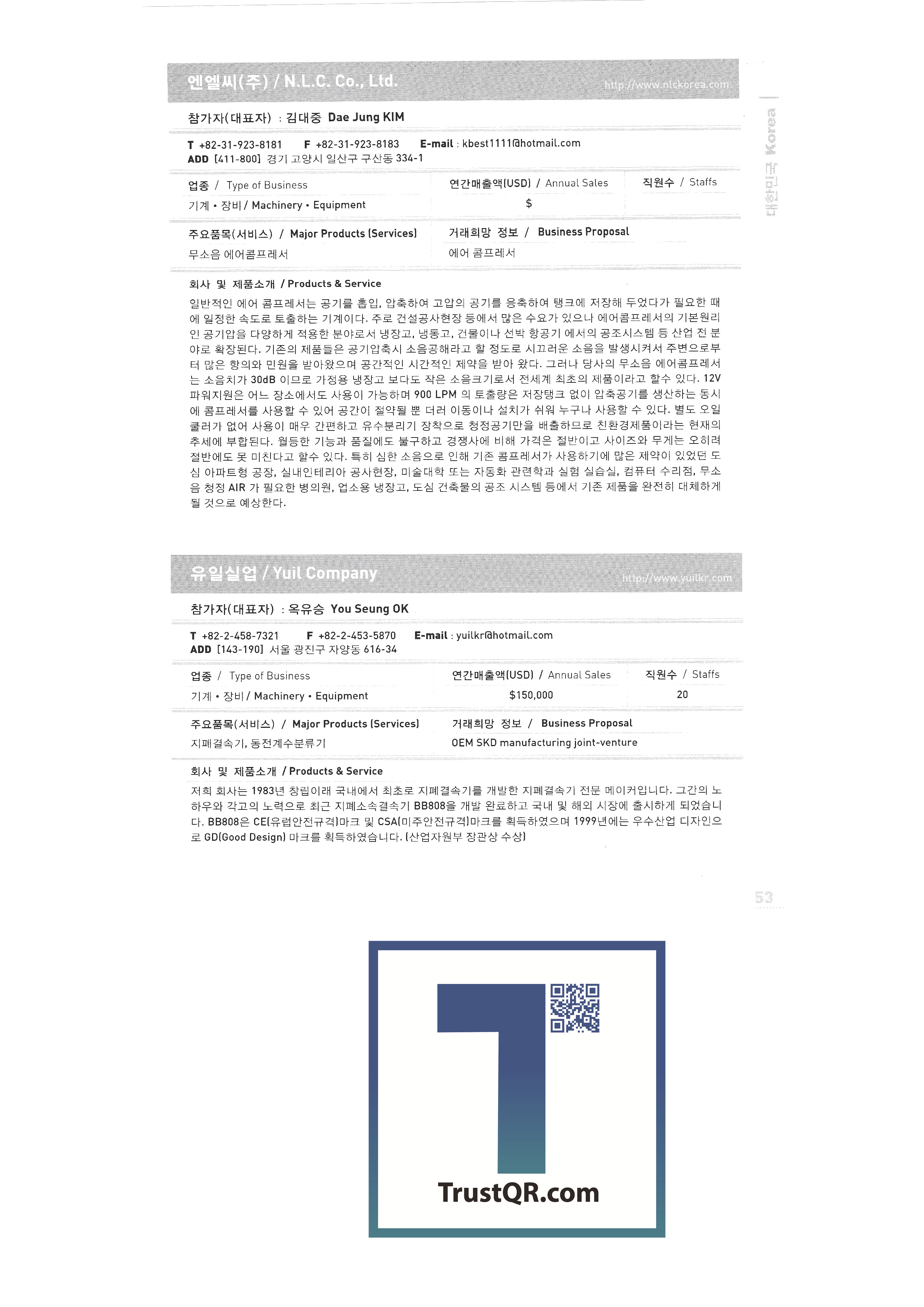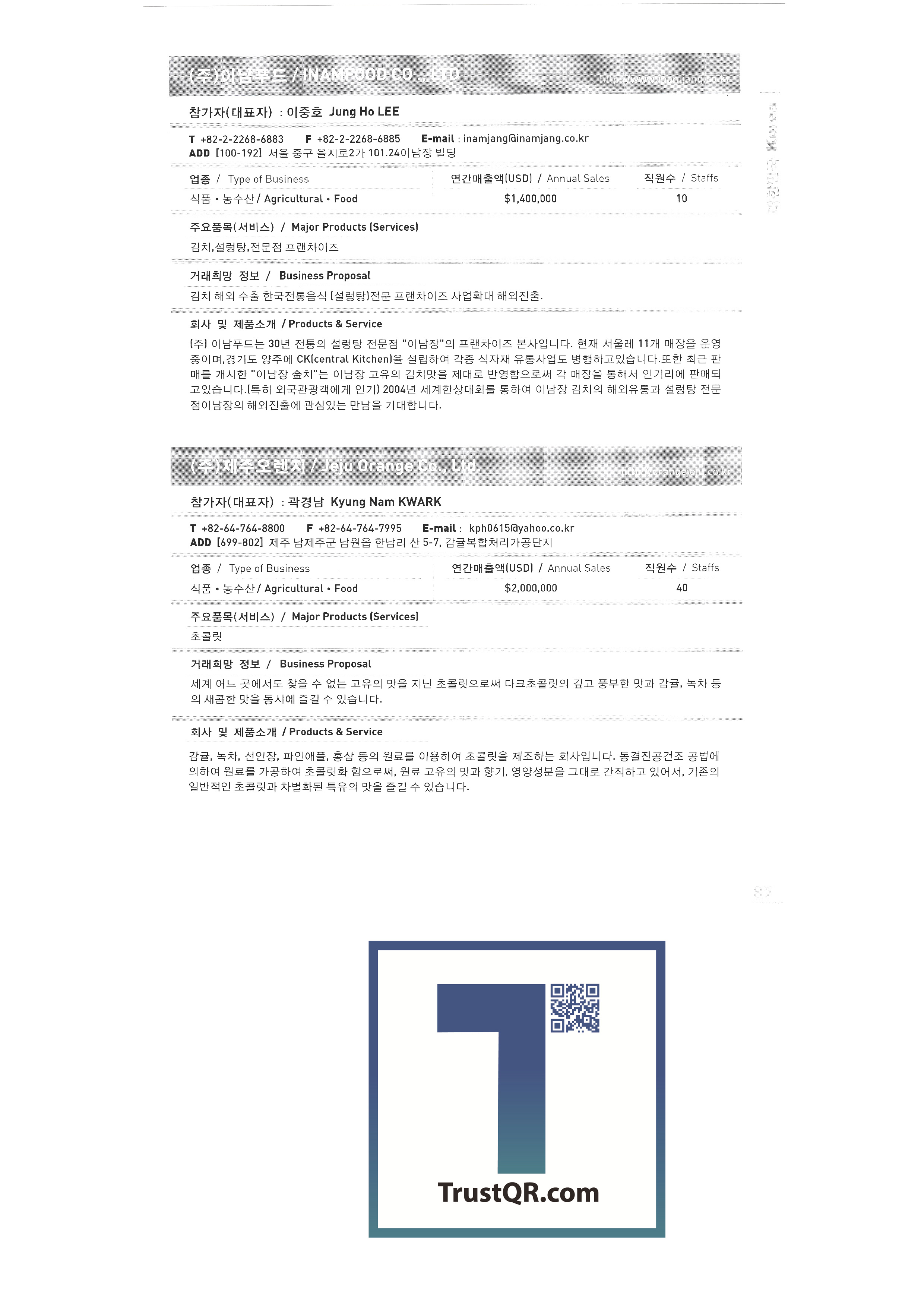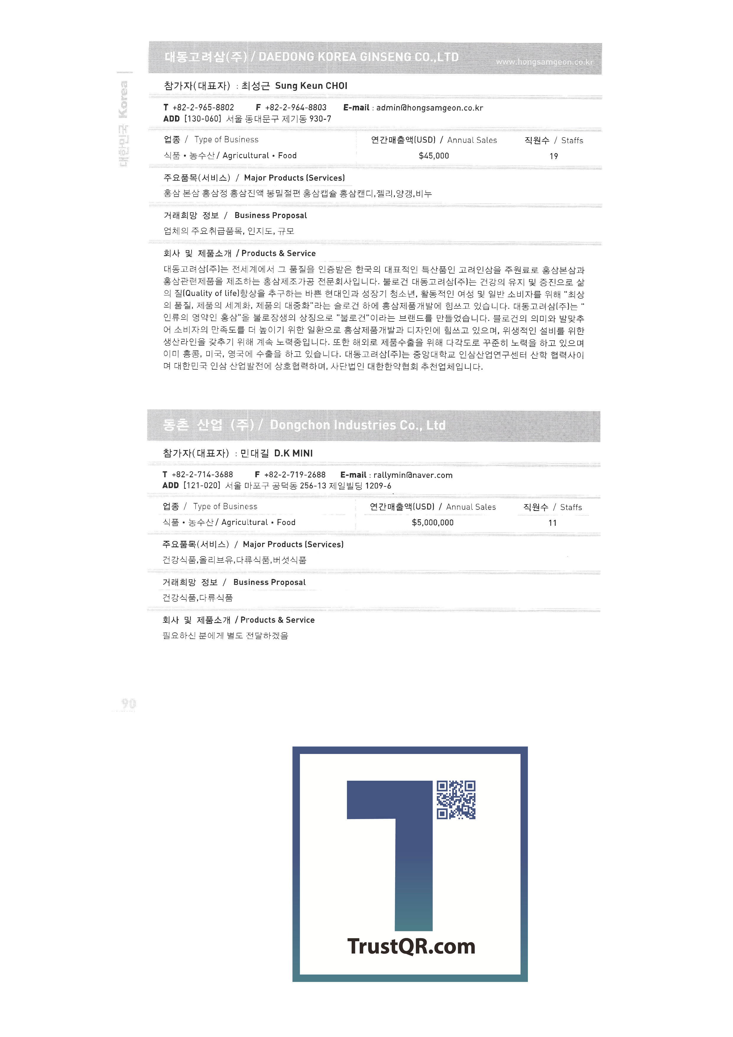 Samsung Securities Zewoo Startup Investment Co., Ltd. Samjin Industry 3DVR Co., Ltd. Brain Union System Yanmar GNS Co., Ltd. MMC Tech Co., Ltd. Insung Caster Cheil General Machinery Co., Ltd. Phage OLIPS Korea Nano Powder Co., Ltd. Leader C Corporation NLC Co., Ltd. The only unemployment Korea Hot Fix Hyundai Machinery Industry Co., Ltd. Korea National Flag Association Gongyeong Platech Co., Ltd. Dica House Co., Ltd. Lee In Tech World Co., Ltd. Korea Trade-Investment Promotion Agency Netpia Northeast Asia Peace Solidarity DK Co., Ltd. Barley bone Korea Chamber of Commerce & Industry Shinwoo System Co., Ltd. Utopia Memorial Hall Incheon Metropolitan City Hall Jeju Free International City Development Center Chungnam Provincial Office Chung-cheong bukdo Korea International Trade Association Korea Industrial Manpower Corporation Hyundai Asan Best Office Co., Ltd. Proty Co., Ltd. Dodo Studio Seogwipo Chilbo Craft Research Association Jinyoung System Pyeong Art Samhwa D&C Remtech Korea Saemokpo brokerage corporation Gunwook Corporation Tomato consulting Daewon Sure Co., Ltd. Dongji Distribution Co., Ltd. Ant Korea Co., Ltd. Greentech Evergreen Tech Woosung Hong Wooil Industrial Company Wooil Industrial Co., Ltd. Wonji International Soon Hanbang Co., Ltd. Hanju Aroma Industries Co., Ltd. Korea World MC Giga Textile Co., Ltd. Boseong Comprehensive Town Mongsaeng Co., Ltd. Samjin Commerce Ohsung Textile Woochang Tech One touch trade Good fabric Consolation Co., Ltd. Mani Food Co., Ltd. Saerom Foodis Co., Ltd. Geumgang Fisheries Co., Ltd. Golden Farm Co., Ltd. Geumhwa Brewing Co., Ltd. Daedae Food Institute Daeseung Corporation Saerom Food Co., Ltd. Saehan Meat Delica Co., Ltd. Shani Corporation Sunmac Co., Ltd. Jardin Corporation Hail International Co., Ltd. Kimane Chain Headquarters Daedong Korea Ginseng Co., Ltd. Dongchon Industrial Co., Ltd. Dure Food Liger Trade Co., Ltd. |