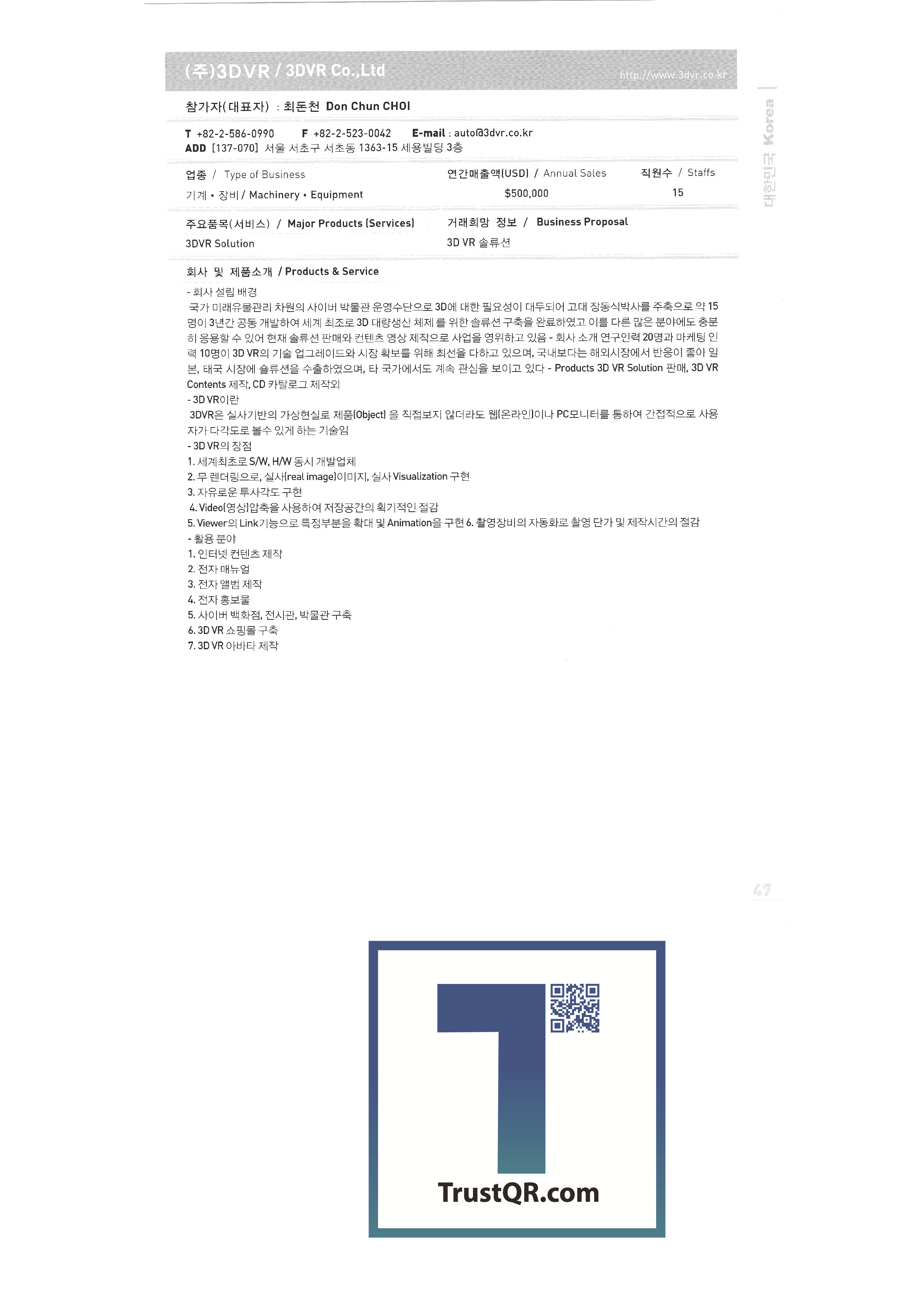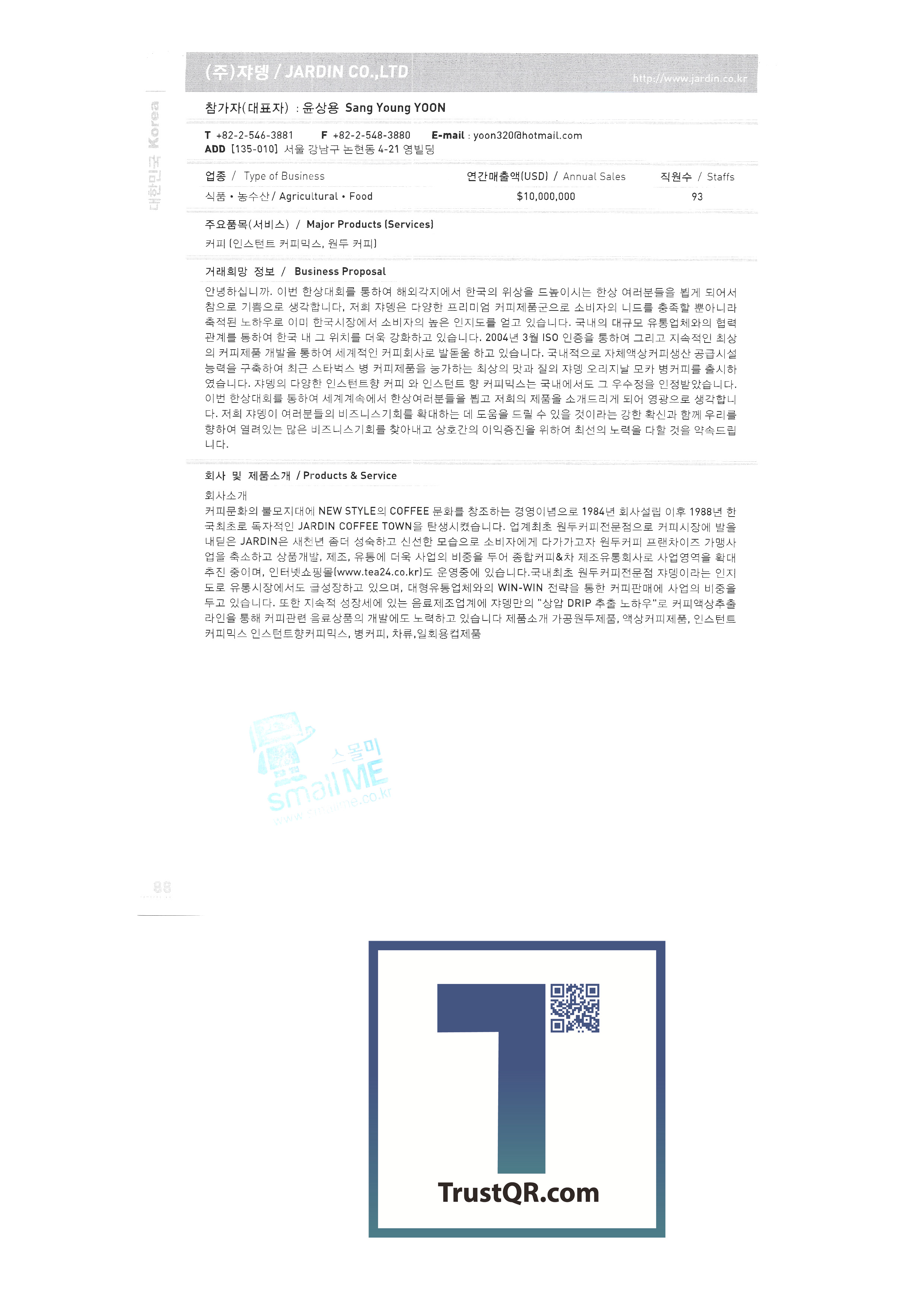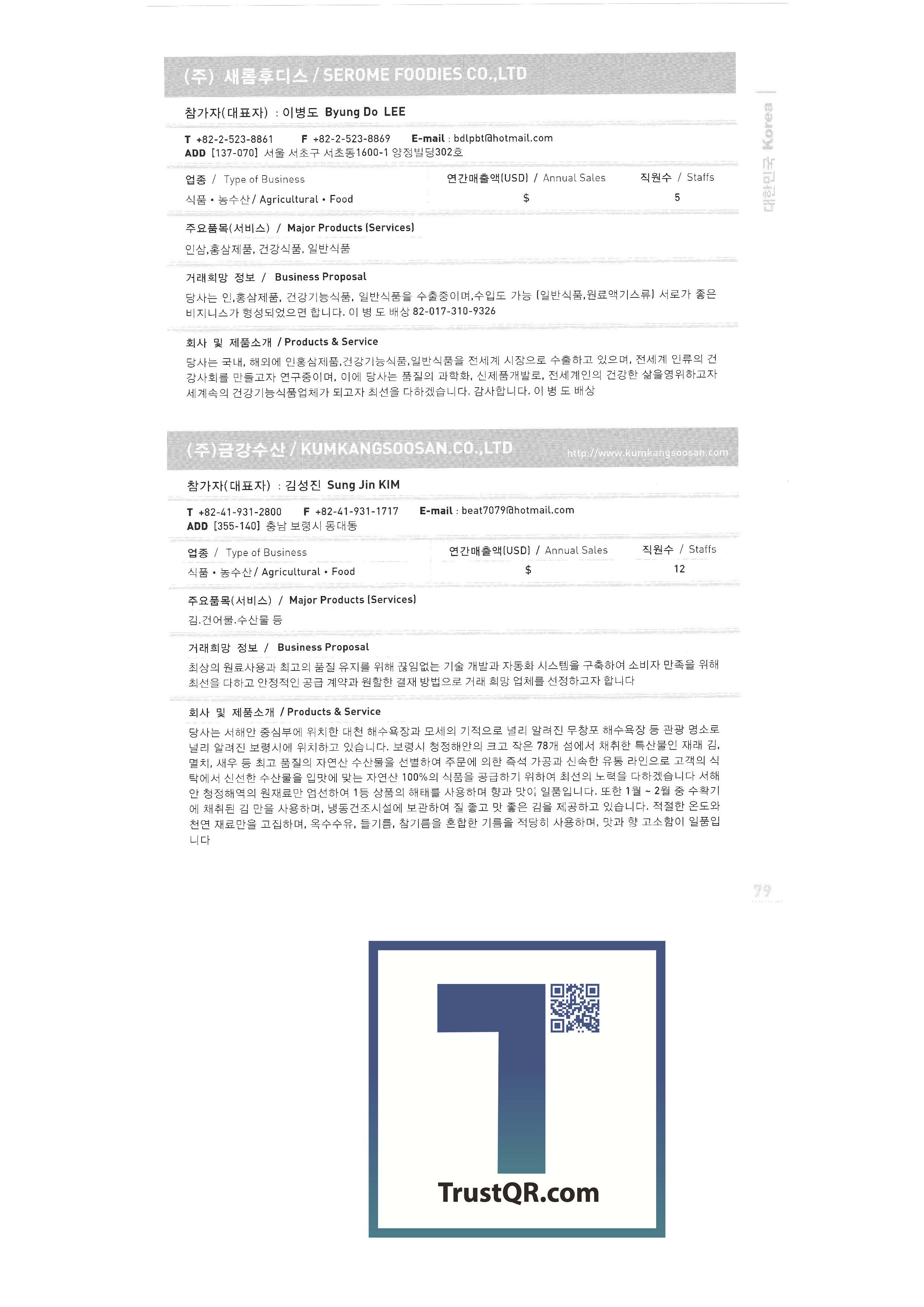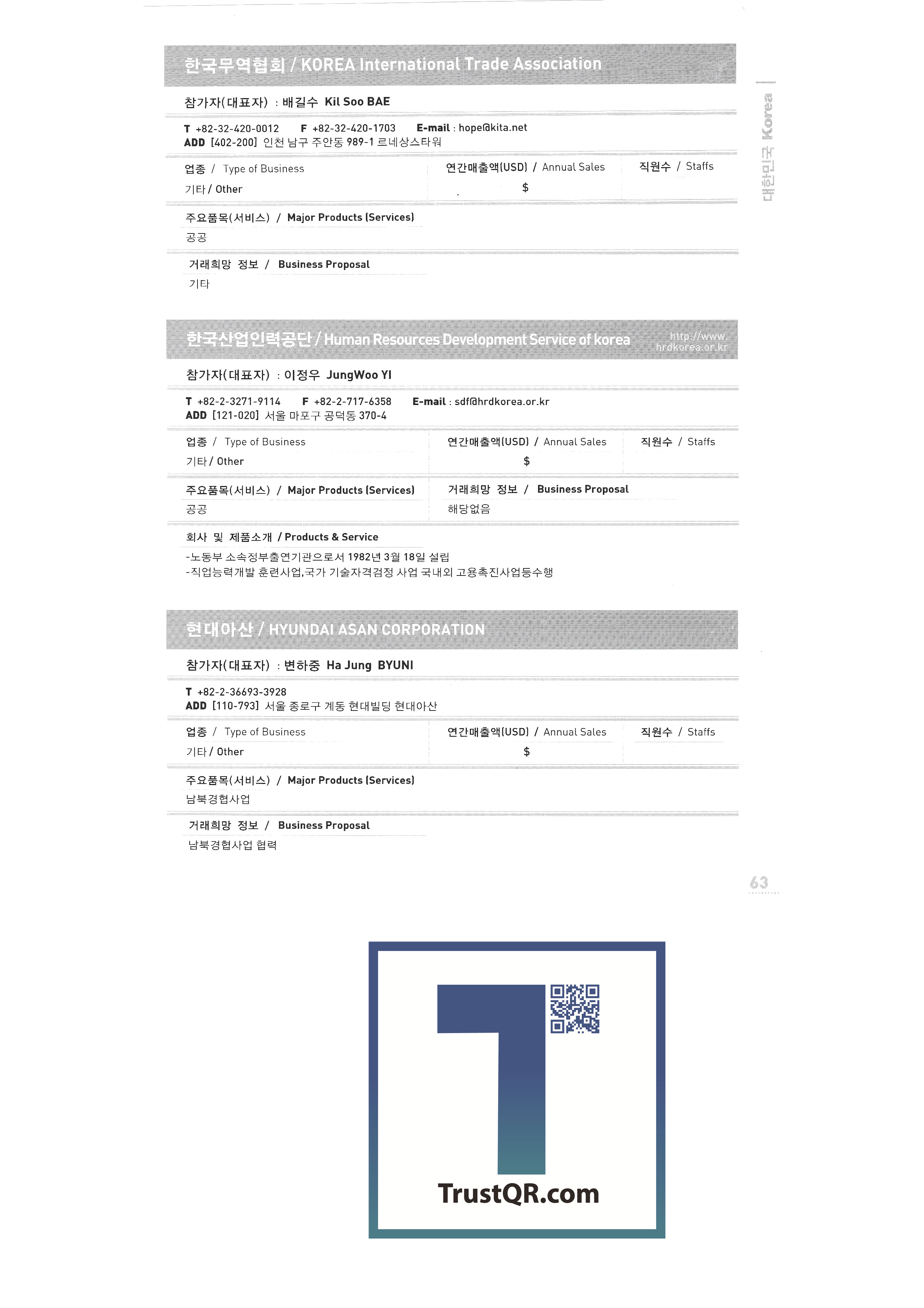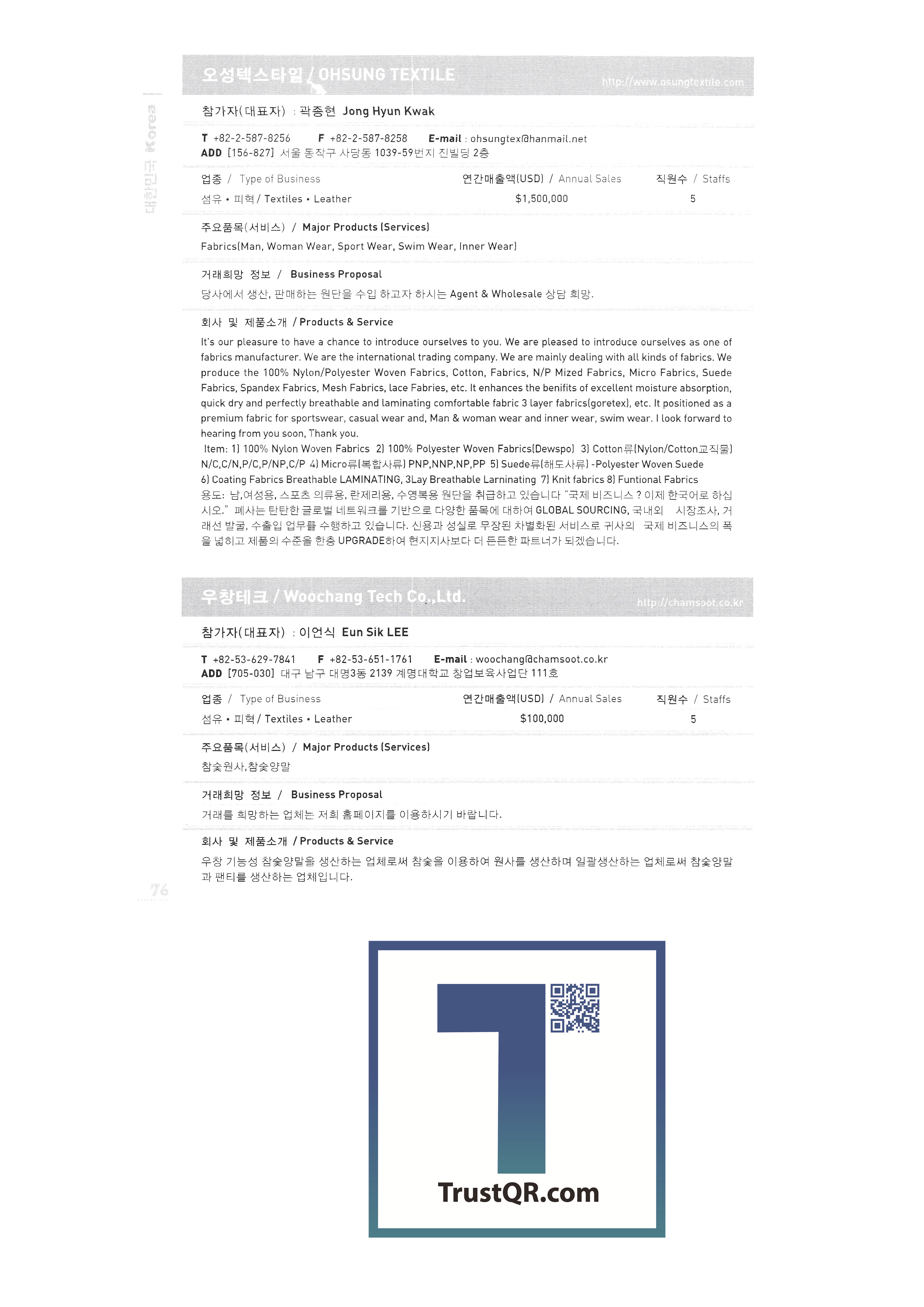 Samsung Securities Zewoo Startup Investment Co., Ltd. Samjin Industry 3DVR Co., Ltd. Brain Union System Yanmar GNS Co., Ltd. MMC Tech Co., Ltd. Insung Caster Cheil General Machinery Co., Ltd. Phage OLIPS Korea Nano Powder Co., Ltd. Leader C Corporation NLC Co., Ltd. The only unemployment Korea Hot Fix Hyundai Machinery Industry Co., Ltd. Korea National Flag Association Gongyeong Platech Co., Ltd. Dica House Co., Ltd. Lee In Tech World Co., Ltd. Korea Trade-Investment Promotion Agency Netpia Northeast Asia Peace Solidarity DK Co., Ltd. Barley bone Korea Chamber of Commerce & Industry Shinwoo System Co., Ltd. Utopia Memorial Hall Incheon Metropolitan City Hall Jeju Free International City Development Center Chungnam Provincial Office Chung-cheong bukdo Korea International Trade Association Korea Industrial Manpower Corporation Hyundai Asan Best Office Co., Ltd. Proty Co., Ltd. Dodo Studio Seogwipo Chilbo Craft Research Association Jinyoung System Pyeong Art Samhwa D&C Remtech Korea Saemokpo brokerage corporation Gunwook Corporation Tomato consulting Daewon Sure Co., Ltd. Dongji Distribution Co., Ltd. Ant Korea Co., Ltd. Greentech Evergreen Tech Woosung Hong Wooil Industrial Company Wooil Industrial Co., Ltd. Wonji International Soon Hanbang Co., Ltd. Hanju Aroma Industries Co., Ltd. Korea World MC Giga Textile Co., Ltd. Boseong Comprehensive Town Mongsaeng Co., Ltd. Samjin Commerce Ohsung Textile Woochang Tech One touch trade Good fabric Consolation Co., Ltd. Mani Food Co., Ltd. Saerom Foodis Co., Ltd. Geumgang Fisheries Co., Ltd. Golden Farm Co., Ltd. Geumhwa Brewing Co., Ltd. Daedae Food Institute Daeseung Corporation Saerom Food Co., Ltd. Saehan Meat Delica Co., Ltd. Shani Corporation Sunmac Co., Ltd. Jardin Corporation Hail International Co., Ltd. Kimane Chain Headquarters Daedong Korea Ginseng Co., Ltd. Dongchon Industrial Co., Ltd. Dure Food Liger Trade Co., Ltd. |