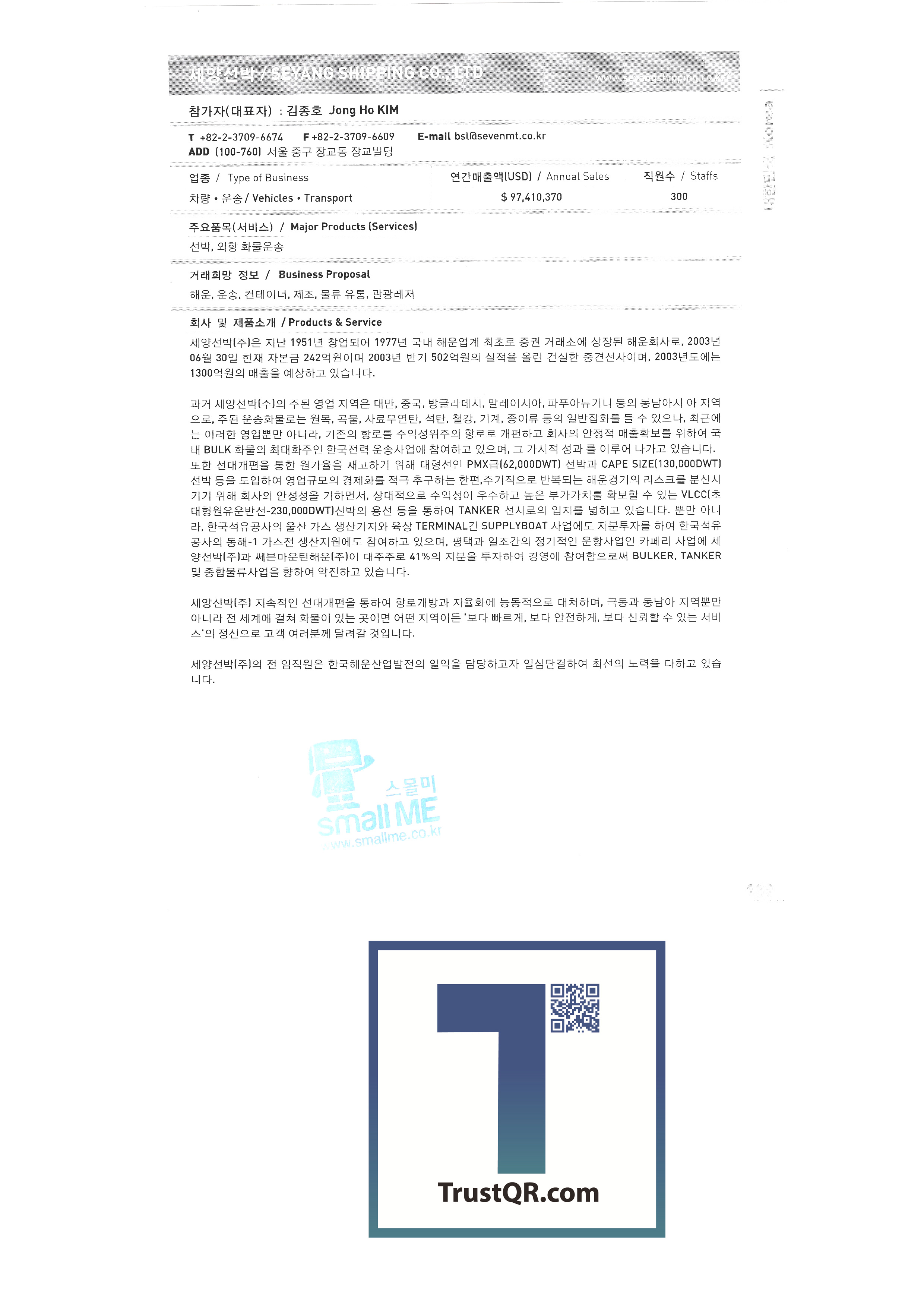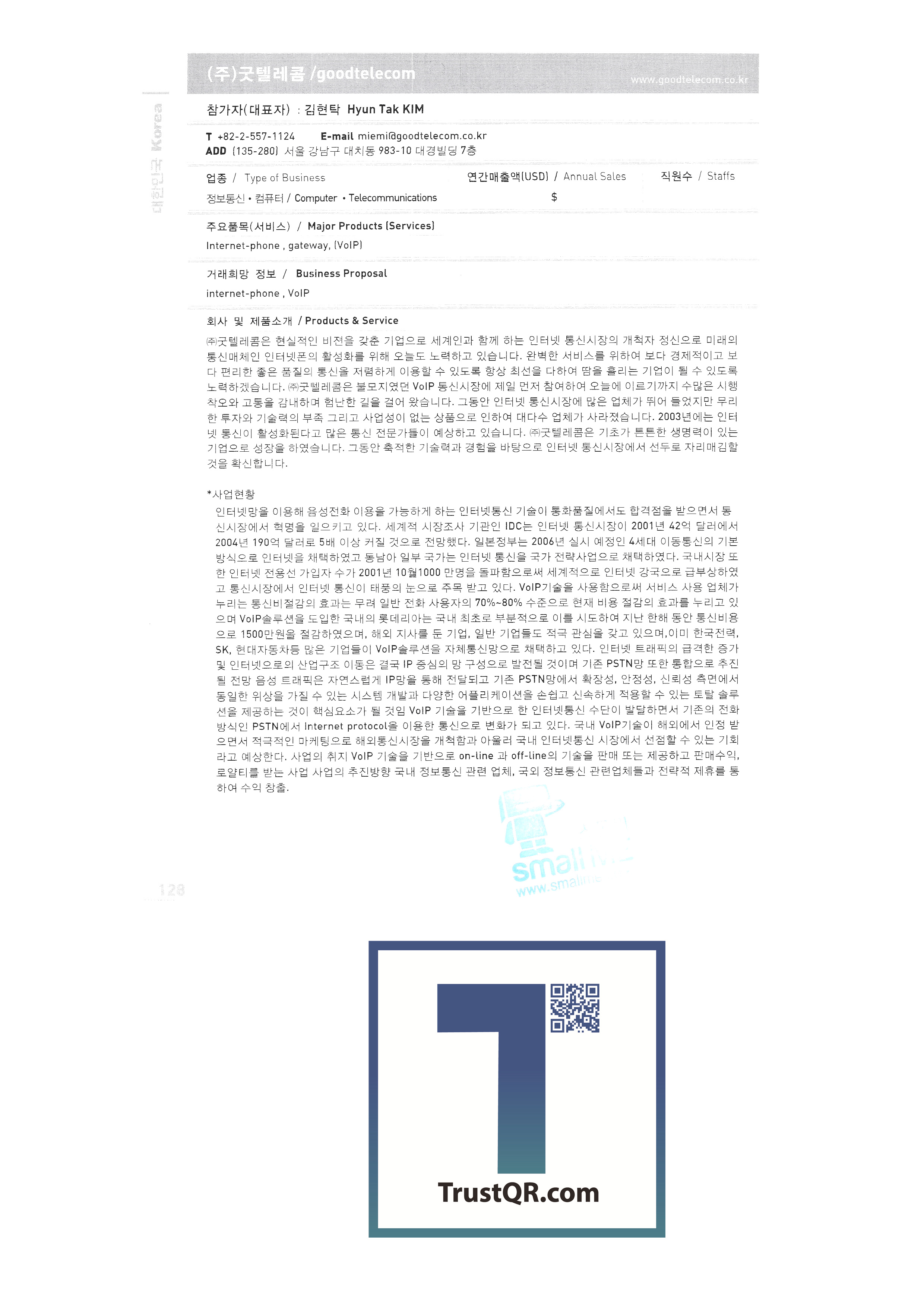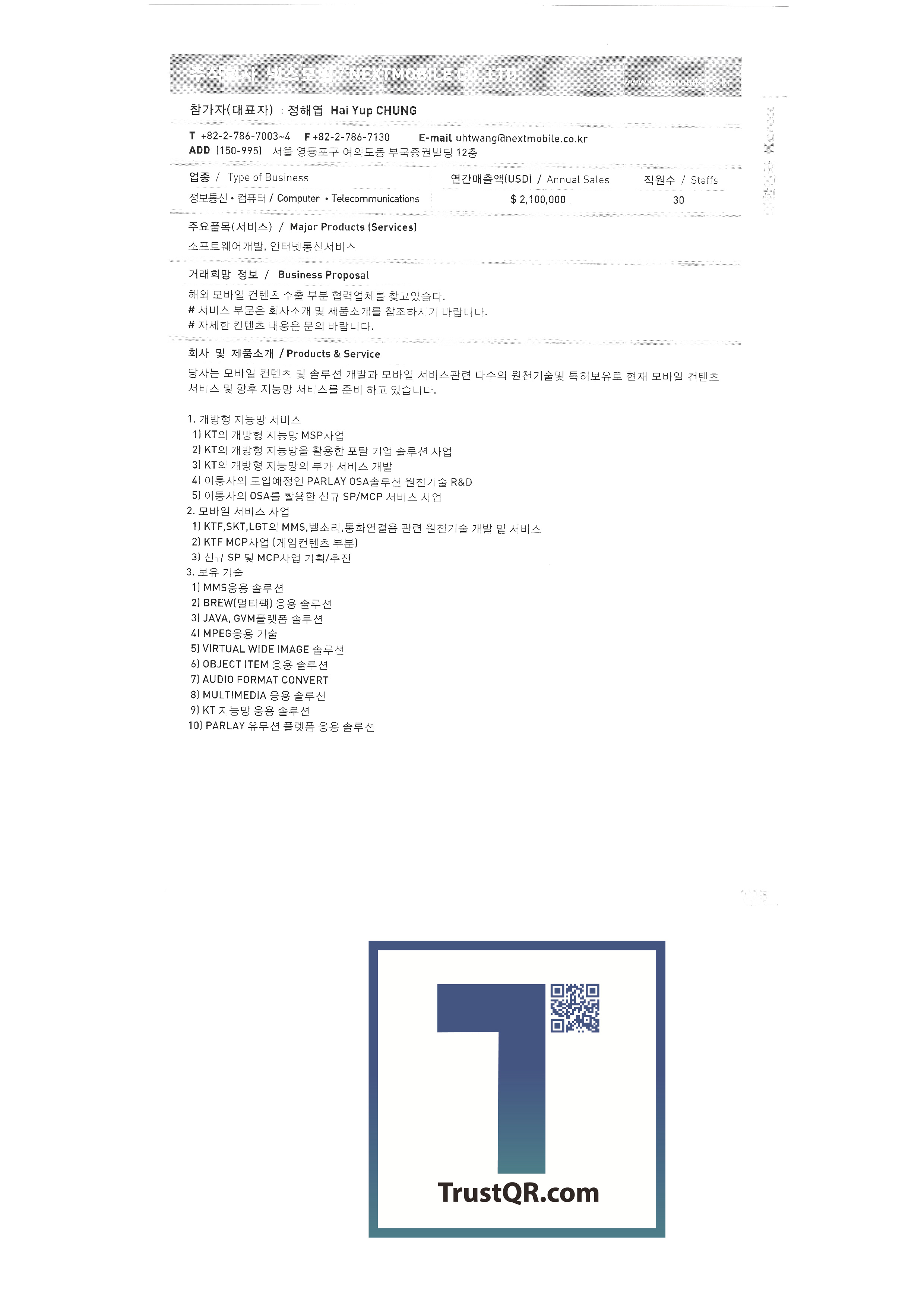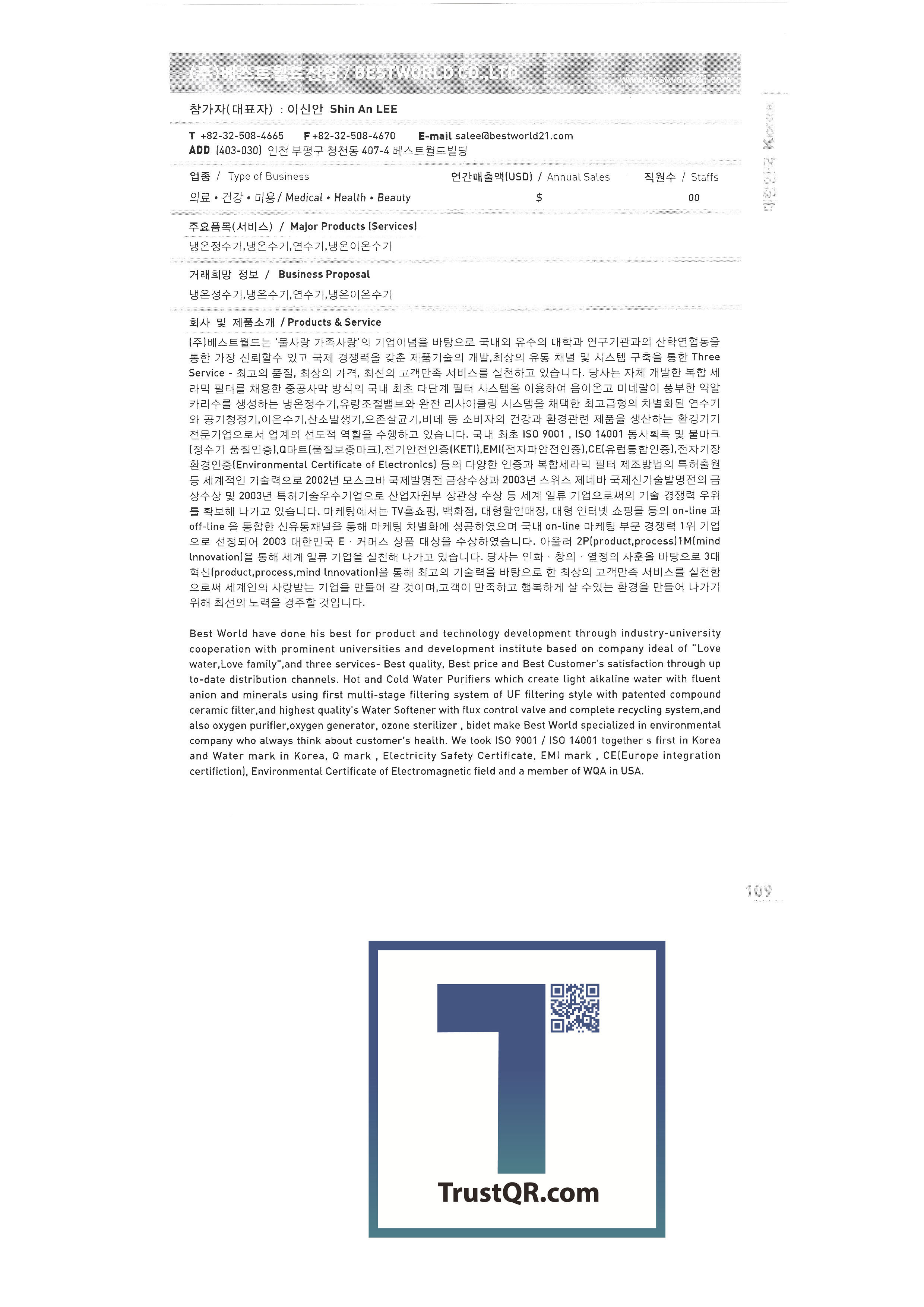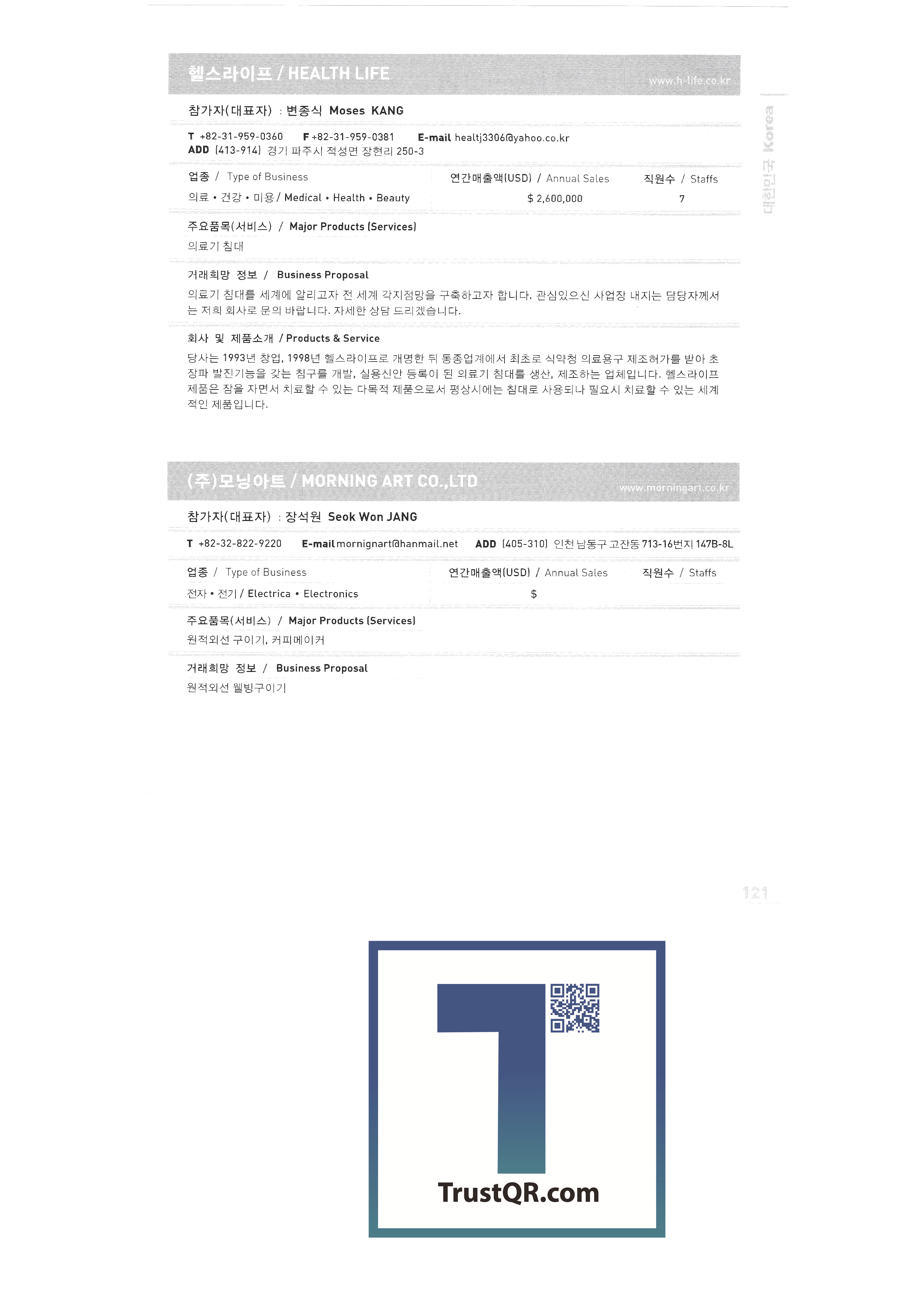 Midang Food Service Division Biotech Co., Ltd. Samshin ginseng processing farming association Seojeong Traditional Food Altien Yanbian University of Science and Technology Food Co., Ltd. Mockup food Jungwoo Food Jeju Bio Industry Jeju Citrus Agricultural Cooperative Trade Office Jeju Regional Development Corporation Jeju Fisheries Logistics Co., Ltd. Jeju Natural Food Jeju Special Products Jirisan Solsongju Jinro Valentine Tamra Vegetable Village Farming Association Taelim Corporation Fermentec Korea Stevia Happy Story Co., Ltd. Maekyung bias guide Daewoo Environment Industry Co., Ltd. Hair Science Co., Ltd. Geonpoong Bio Co., Ltd. Nuri Tech I&C Biomex Co., Ltd. Marine Product Tech Co., Ltd. Doul Healthcare Best World Industry Co., Ltd. Sticks Co., Ltd. IV Food Co., Ltd. Ames Phil Co., Ltd. Hair Science Co., Ltd. Jeju Love Co., Ltd. BH Biotech Daewon Carbontech Daehan Median Co., Ltd. Divia Korea Libopia Co., Ltd. Bio Spectrum Co., Ltd. Revival Medical Jeju National University Hospital OBS Co., Ltd. Now CheilJedang Special Edition Galaxy Corporation Jinduk Biotech Co., Ltd. Hasung Electronics Korea Latex Industry Co., Ltd. Health Life Morning Art Co., Ltd. Itel Korea Co., Ltd. WIZLUX Co., Ltd. EasyM Tech Co., Ltd. Jinwoo Hi-Tech Co., Ltd. Offer Electronics Inc. Sun Heindust Rani Industry Co., Ltd. JST Industry Co., Ltd. Techne Tongseong Unemployment Ipilsonic Good Telecom Co., Ltd. Mirae Innovation Co., Ltd. Nupinet Invest Club Siri Corporation Qtel Soft Co., Ltd. Rubins Samsung SDS Seoul Digital University You's One Co., Ltd. U platform Nexmobile Co., Ltd. DalK Co., Ltd. Sky UMS Co., Ltd. Faber Nine Rapien Corporation Global Mars Co., Ltd. International Logistics Seyang Ship Accordistics Garam Appraisal Corporation Gwangyang Bay Area Free Economic Zone Authority Kim Miracemusa Sloan Korea Sun Valley |