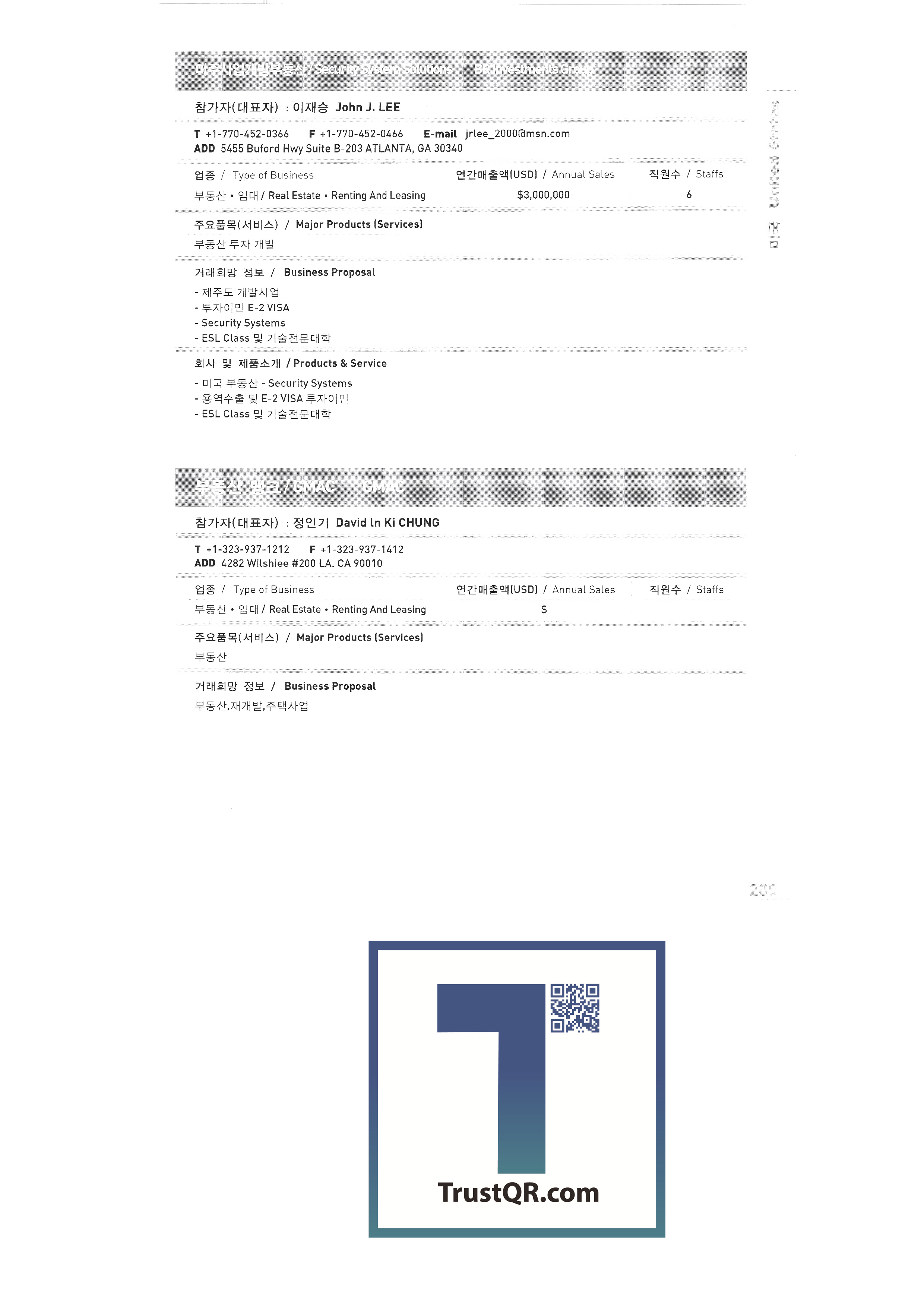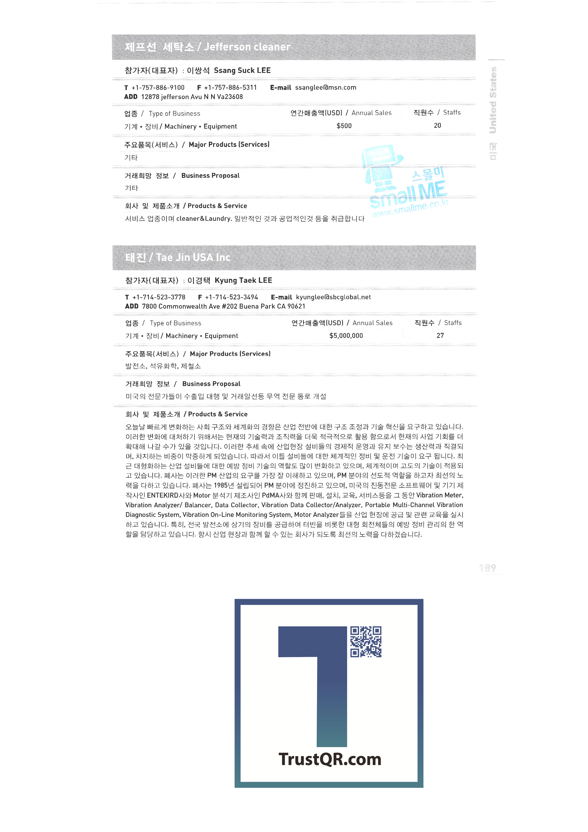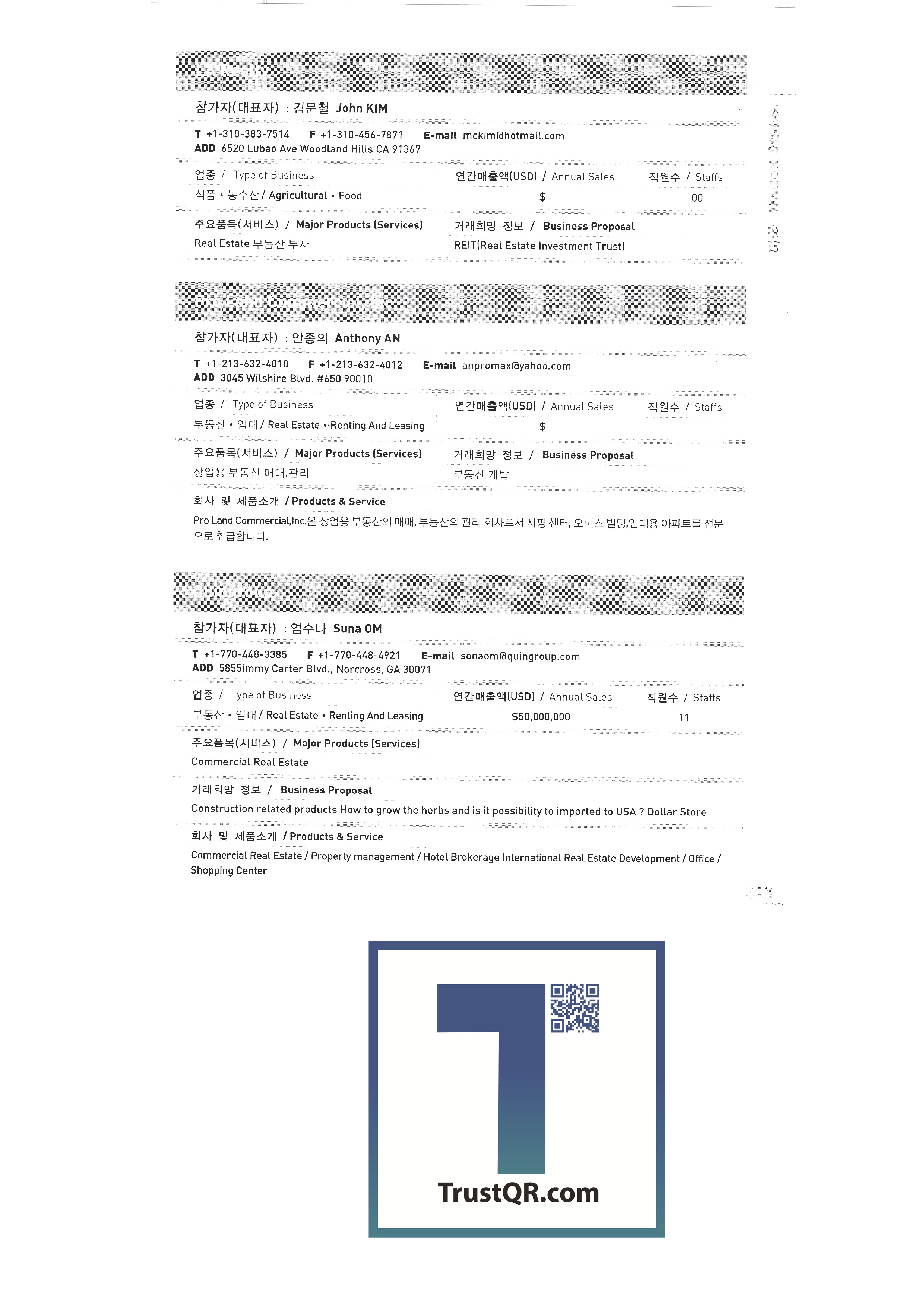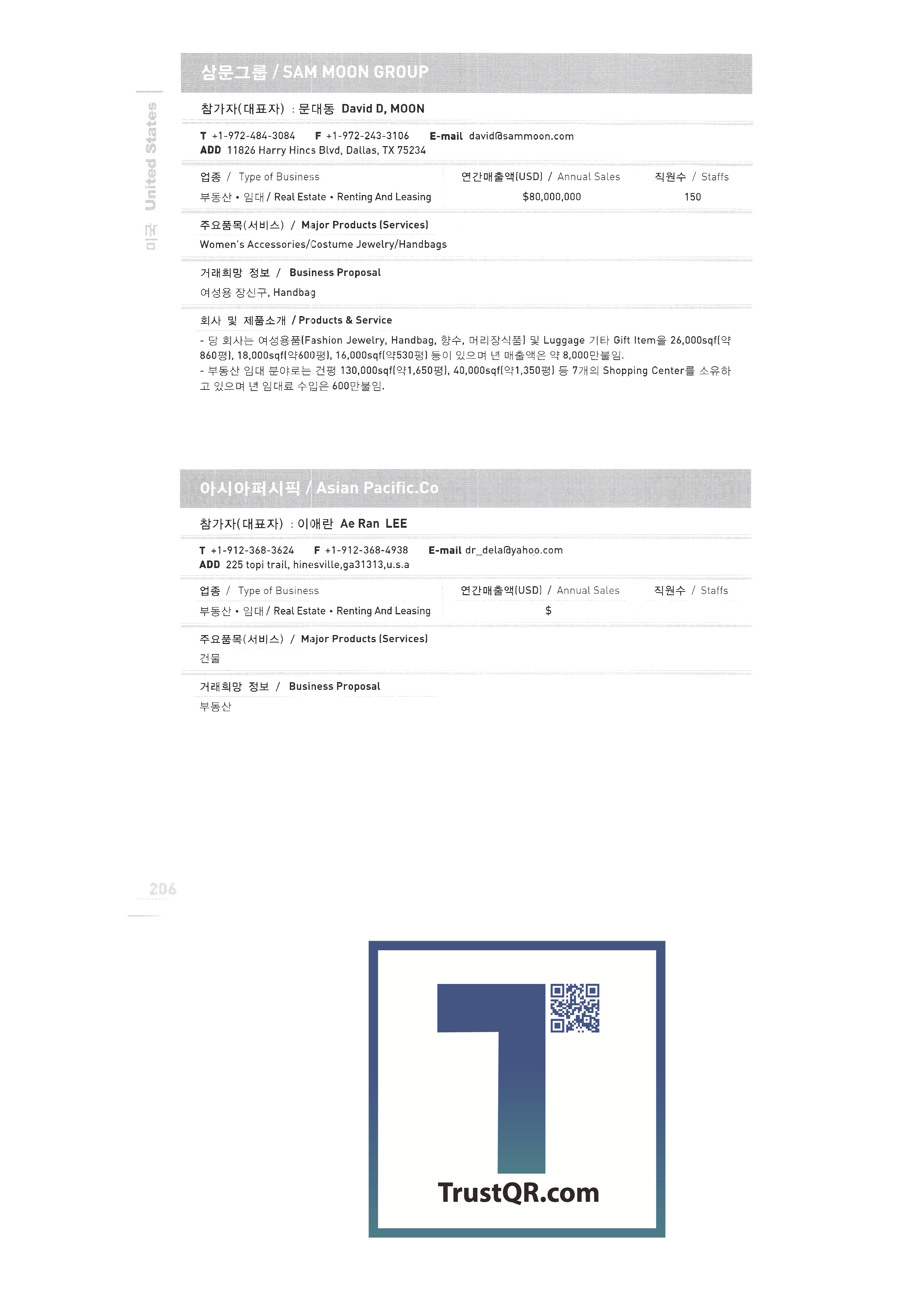 Jeff's Laundry Taejin Hwacheon U.S.A. INC FKDA J.N.H TRADING.INC K.C.Inc. K-1 Lupe L.A.auto parts co. MS MJ ENTER PRISES,INC Regal Custom Cleaners Inc. SC Machining, INC Song&In Corp Dallas Korean Chamber of Commerce Rococo Florist Accutopia One trading (one wholesaler) KC Landrimet Contima Corporation Kingsco Trading NIKE,Inc America's Liberation Society Aaone LITHO, INC. BARGAIN JEWELERS INC. Bridal & etc. Cal Pac World Trading GOLFDOM James Yongwon Property Jang's Enterprise Korean American Federation of O.C LAPD New York Golf center, Inc RIPMC CORP Robot Factory Incorporated Rotex Hotel&Condo Sinework Co. Space Works,Inc T&K Pakage Time Warner Cable Monty Squawer Company Howard Lee International J&H Bag&Gift INC. J.Park & Company MAX969 TRADING TOYS&ACC.BY OMNI, INC Ranam Corporation Newsta Group Remex Real Estate Americas Business Development Real Estate Real estate bank Sammun Group Asia Pacific Wondermere Real Estate Company Genix Kn Plaza Coldo Banker Dim Estate Hanwon Investment Hotel Butterfly Grove Inn Hankook property management S&H Gas Station AMCO Service Cor. Best Way Realty CR Res. CROWN INVESTMENT Crown Investment HERITAGE I.C INTERNATIONAL, INC Joy Investment K.Y.C Enterprises LA Realty Pro Land Commercial, Inc. Quingroup REALTY WORLD Sincha Samcho General Corporation Elcos America Co., Ltd. U-Strading Ruidoso Market Silk Road USA A-end J Trading Company US Trading Co., Ltd. Jewel sense Topa Enterprise Potomac Ivy Hollywood Trading Waistwood trade E-Mart K trading Smiling Star Inc YS LTD Cody Printing In K.Corp. International Imports KMC USA,Co Napawater,inc THREE BROTHERS ACC. INC Sonnet Inc Eggdon Heath Inc Yujung International Co., Ltd. J&H Trading Company Tianti fashion ABC TRADING INC. Cicci, Inc. CRÈME DE SILK INC. E&C Fashion EVEREST TRDING CORP K-ORIGINALS NM-Hi Fashion,Inc S.G.T Lee Inc. SHOE MART TRADING Sox Avenue, Inc Ton-To Corp WESTAR TEXTILES CORP Europa Gomei Corporation Korea Longevity Food Trade Blue Sea Inc. Dunkin' Donuts Delaware Food Association Lease counter licker Maryland Food Liquor Association American Food Association Korea-US Food Association Stainless Market Sifco Arirang Deer Farm Atlanta Dongyang Food Co., Ltd. Amstrong Corporation Espresso Best Company A&A Export Company TugboatFish&Chips Inc. Cab the world California Agriculture Kona Trading Co., Ltd. Coca Cola Tio Williams Meat Production Company Overseas Trade AF Food IRG supermarket MD Food Liquor Association Southern California Agricultural Products Co., Ltd. Airway Inn ANGELA TRADING CO.,INC. Babba's Supermarket BERKELEY INTERNATIONAL CO. BIG -H Food Market C&J Enterprise Chevron Gas Station CHOICE LIQUORS D.K Inc. Exxon Fivestar Investment, Inc IRG Supermarket Korea House B.B.Q Lee's Discount Liquor O.N.M INC Olive Bakery |