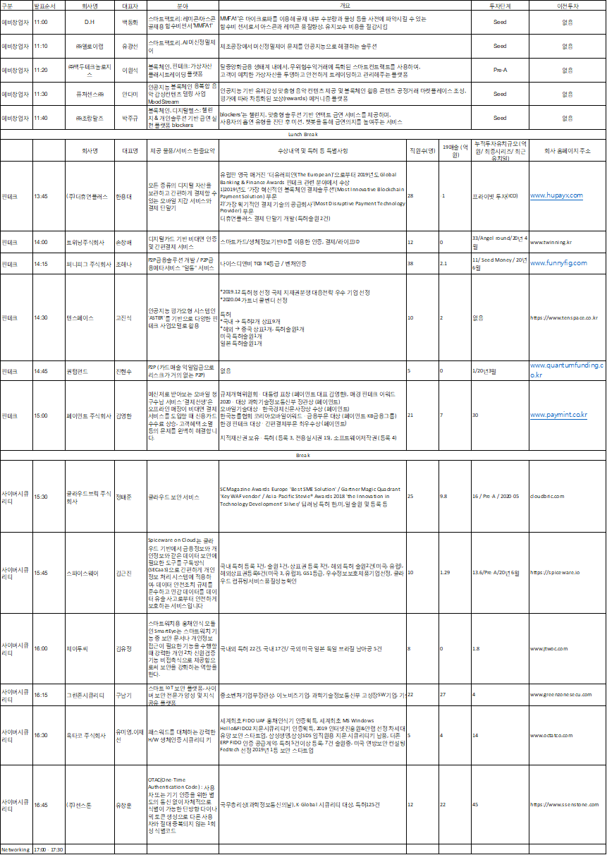 - 오전: 예비창업자 세션 (엔젤 및 스타트업)