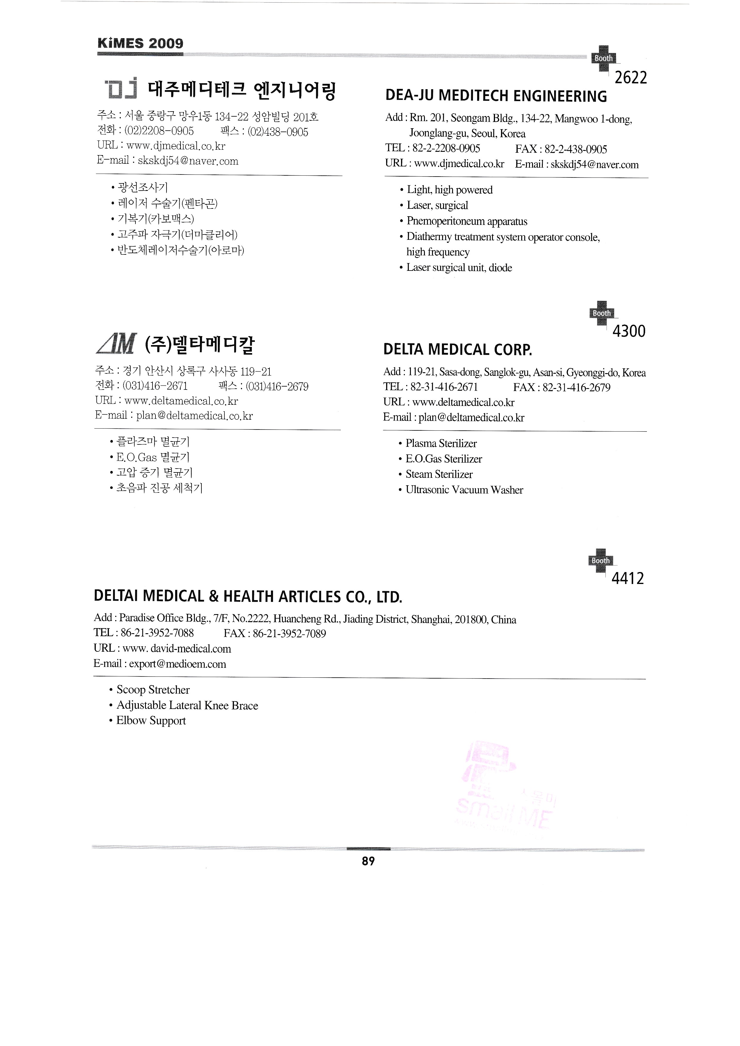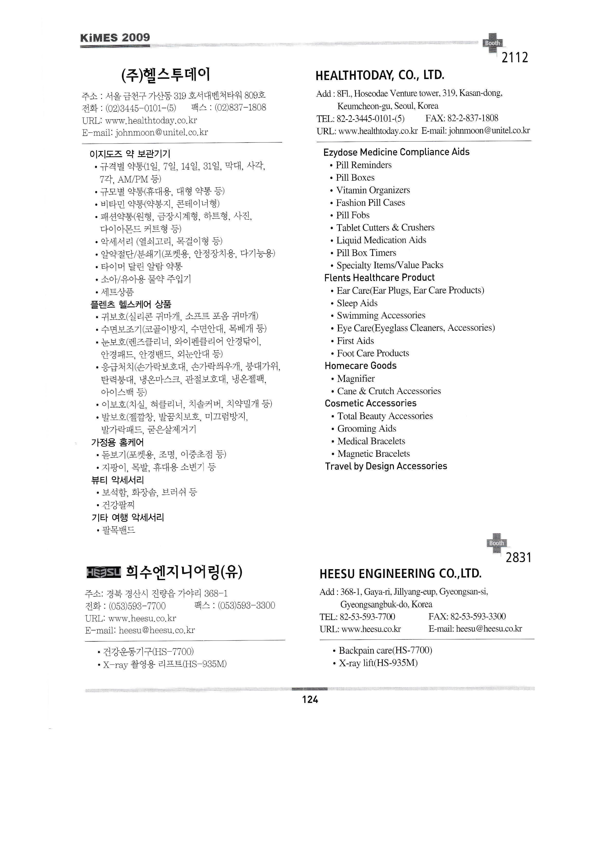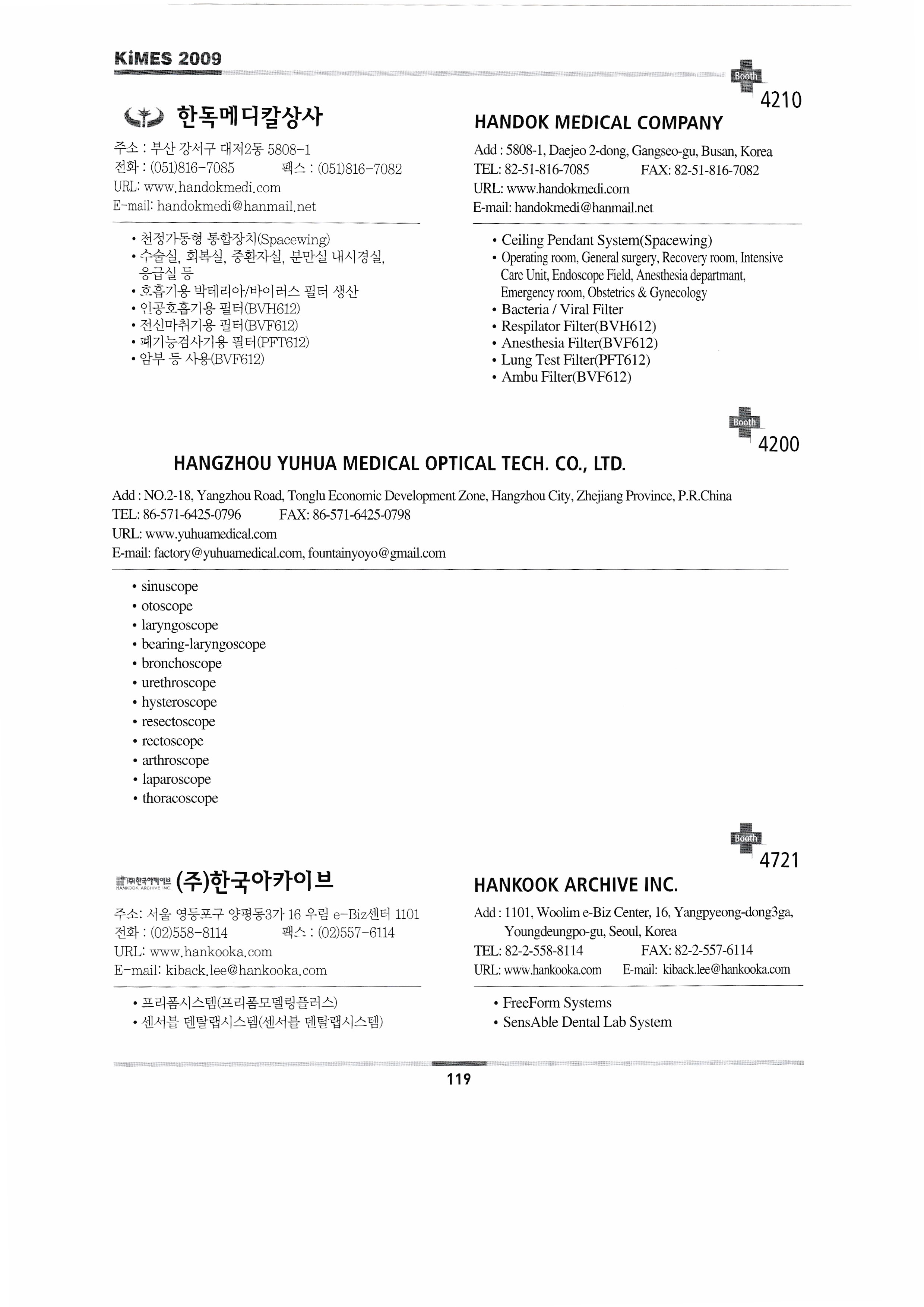 | 대운메디칼 대양의료기㈜ 대요메디㈜ ㈜대한랩테크 대화기기㈜ 단일에스엠씨 ㈜다산의료기 다빈치메디텍㈜ 다솔인터내셔날 대주메디테크 엔지니어링 ㈜델타메디칼 DELTAI MEDICAL & HEALTH ARTICLES CO.,LTD. 인제대학교 의용공학과 건양대학교 의공학과 DIAMOND DIAGNOSTICS INC. 다이노나㈜ ㈜디메텍 ㈜두앤비무역 두올에이드 한국돌기㈜ 동방침구제작소 ㈜동방 동림의료기 동강메디칼시스템㈜ 동강의료기㈜ 동방헬스다인㈜ ㈜디오시스 엠엔엠 ㈜동덕의료기 동진메디칼㈜ 드림에어메디칼 ㈜디알젬 닥터킴 디알에스메디칼㈜ ㈜디알텍 덕인양행 DUNLEE-DIVISION OF PHILIPS HEALTHCARE ㈜두리코씨앤티 ㈜에코레이 ㈜에코트론 EDAN INSTRUMENTS, INC. ㈜에드보우 ㈜엘바이오 ELITE BAGS, S.L. 엠파워㈜ 에너지플러스 엔스텍 ㈜에고테크 어고트론 이에스테크 이에스엠티㈜ ETAC AB ㈜이다시티엔디 ㈜유진메디케어 ㈜유진의료전자 극동마케팅(유러피안호스피탈) ㈜페모지아 ㈜대원포티스 화인메디칼엔지니어링 ㈜파인엠 ㈜화인메디케어 FOR A CARE INC. FORMOSA CULTURAL CORPORATION ㈜퓨런메디칼 에프와이이엔지 ㈜지엔엠텍 가드너덴버코리아㈜ ㈜가성팩 지디메디칼㈜ ㈜지디에프아이 & 독일 엠티 프로멧 컨설팅 지이헬스케어 ㈜젬텍 제넥셀메디칼㈜ ㈜제노레이 지지엠 ㈜지하이웰 거성 ㈜지엘 ㈜지엘씨 ㈜글로벌메디칼 ㈜지메디 고디자인 그레피스 ㈜그린메디칼서플라이 그린피아기술㈜ ㈜지테크 인터내셔날 (재)경남테크노파크 고려흥진㈜ 하배런메디컬 해성메디칼 한림서원의료기 HANGZHOU TONGLU SOPHISTICATED ENDOSCOPE CO.,LTD. ㈜한길의료기 한독메디칼상사 HANGZHOU YUHUA MEDICAL OPTICAL TECH. CO.,LTD. ㈜한국아카이브 ㈜한일사이메드 ㈜한일티엠 ㈜한림의료기 ㈜한림테크놀로지 한양의료기 ㈜한메드 한미상사 ㈜한파워 한신메디칼㈜ 한성의료산업㈜ ㈜헬스투데이 희수엔지니어링(유) 희상 티앤씨 호진메디칼㈜ ㈜휴레브 ㈜허스라산업 힘맨ㄱ 현메딕스 현대아트 현대한방의료기기 현대메디텍 현대약품 현인메디칼 IAE S.P.A ㈜아이엠바이오 ㈜일진과학 |