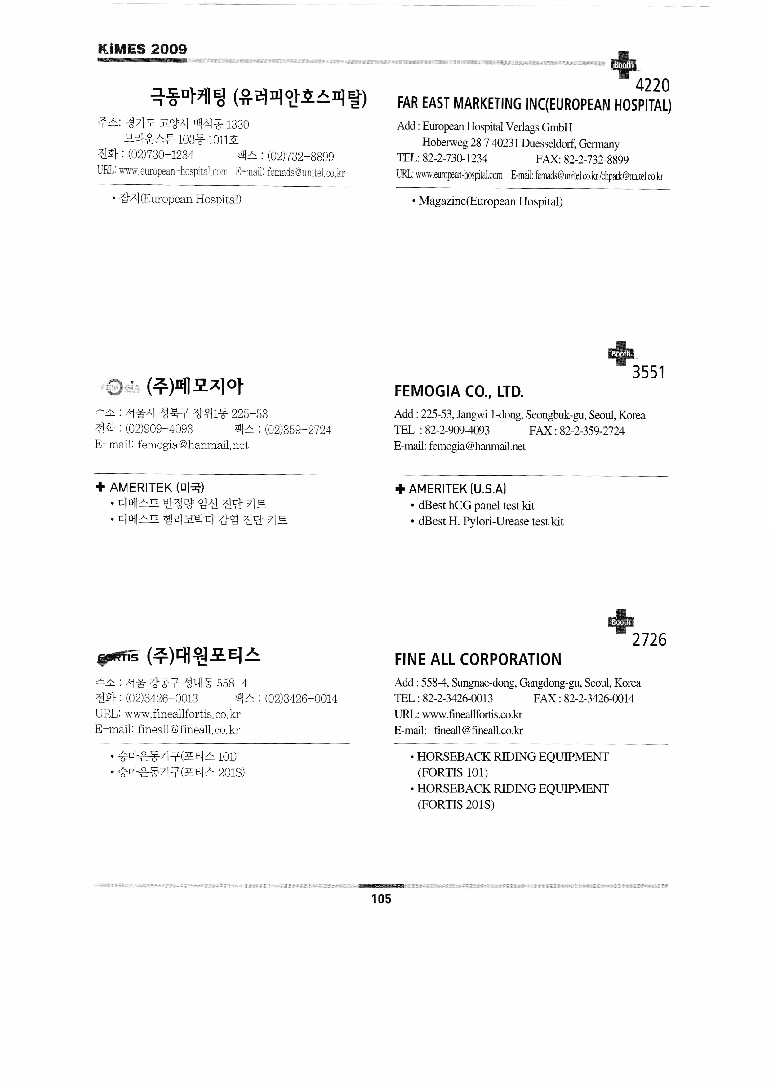 Daewoon Medical Daeyang Medical Equipment Co., Ltd. Daeyo Medi Co., Ltd. Daehan Lab Tech Daehwa Equipment Co., Ltd. Single SM Dasan Medical Co., Ltd. Davinci Meditech Co., Ltd. Dasol International Daeju Meditech Engineering Delta Medical Co., Ltd. DELTAI MEDICAL & HEALTH ARTICLES CO.,LTD. Inje University Department of Medical Engineering Department of Medical Engineering, Konyang University DIAMOND DIAGNOSTICS INC. Dynona Co., Ltd. Dimetech Co., Ltd. Do&B Trading Co., Ltd. Dooleide Korea Project Dongjik-gu Works Dongbang Co., Ltd. Donglim Medical Equipment Donggang Medical System Co., Ltd. Donggang Medical Equipment Co., Ltd. Dongbang Health Dyne Co., Ltd. Diosys M&M Dongduk Medical Equipment Co., Ltd. Dongjin Medical Co., Ltd. Dream Air Medical Realgem Co., Ltd. Dr. Kim RDS Medical Co., Ltd. Realtek Co., Ltd. Deokin DUNLEE-DIVISION OF PHILIPS HEALTHCARE Durico C&T Co., Ltd. Ecoray Co., Ltd. Ecotron Co., Ltd. EDAN INSTRUMENTS, INC. Ed Bow Co., Ltd. El Bio Corporation ELITE BAGS, S.L. M Power Co., Ltd. Energy Plus Enstech Ego Tech Co., Ltd. Ergotron ES Tech SMTC Co., Ltd. ETAC AB Ida City Endy Eugene Medicare Co., Ltd. Yujin Medical Electronics Co., Ltd. Kukdong Marketing (European Hospital) Femogia Co., Ltd. Daewon Fortis Co., Ltd. Fine Medical Engineering Fine M Fine Medicare Co., Ltd. FOR A CARE INC. FORMOSA CULTURAL CORPORATION Furon Medical Co., Ltd. FWENG G&M Tech Co., Ltd. Gardner Denver Korea Co., Ltd. Gasung Pack Co., Ltd. GD Medical Co., Ltd. GD F & M. Promet Consulting, Germany GE Healthcare Gemtech Co., Ltd. Genexel Medical Co., Ltd. Genoray Co., Ltd. Jijim Ghiwell Co., Ltd. Geoseong Gl Corporation GLC Corporation Global Medical Co., Ltd. G Medi Inc. High design Grepis Green Medical Supply Greenpia Technology G-Tech International Co., Ltd. Kyungnam Techno Park Korea Heungjin Co., Ltd. Harun Run Medical Haesung Medical Hallym Seowon Medical Equipment HANGZHOU TONGLU SOPHISTICATED ENDOSCOPE CO.,LTD. Hangil Medical Co., Ltd. Handok Medical Corporation HANGZHOU YUHUA MEDICAL OPTICAL TECH. CO.,LTD. Korea Archive Co., Ltd. Hanil Cymed Co., Ltd. Hanil TM Co., Ltd. Hallym Medical Co., Ltd. Hallym Technology Co., Ltd. Hanyang Medical Equipment Han Med Corporation Hanmi Corporation Han Power Co., Ltd. Hanshin Medical Co., Ltd. Hansung Medical Industry Health Today Heesu Engineering (Yu) Imagination TNC Hojin Medical Co., Ltd. Hurev Co., Ltd. Husra Industries Co., Ltd. Power man Hyun Medics Hyundai Art Hyundai Oriental Medical Equipment Hyundai Meditech Hyundai Pharmaceutical Hyunin Medical IAE S.P.A IB Bio Inc. ILJIN Science |