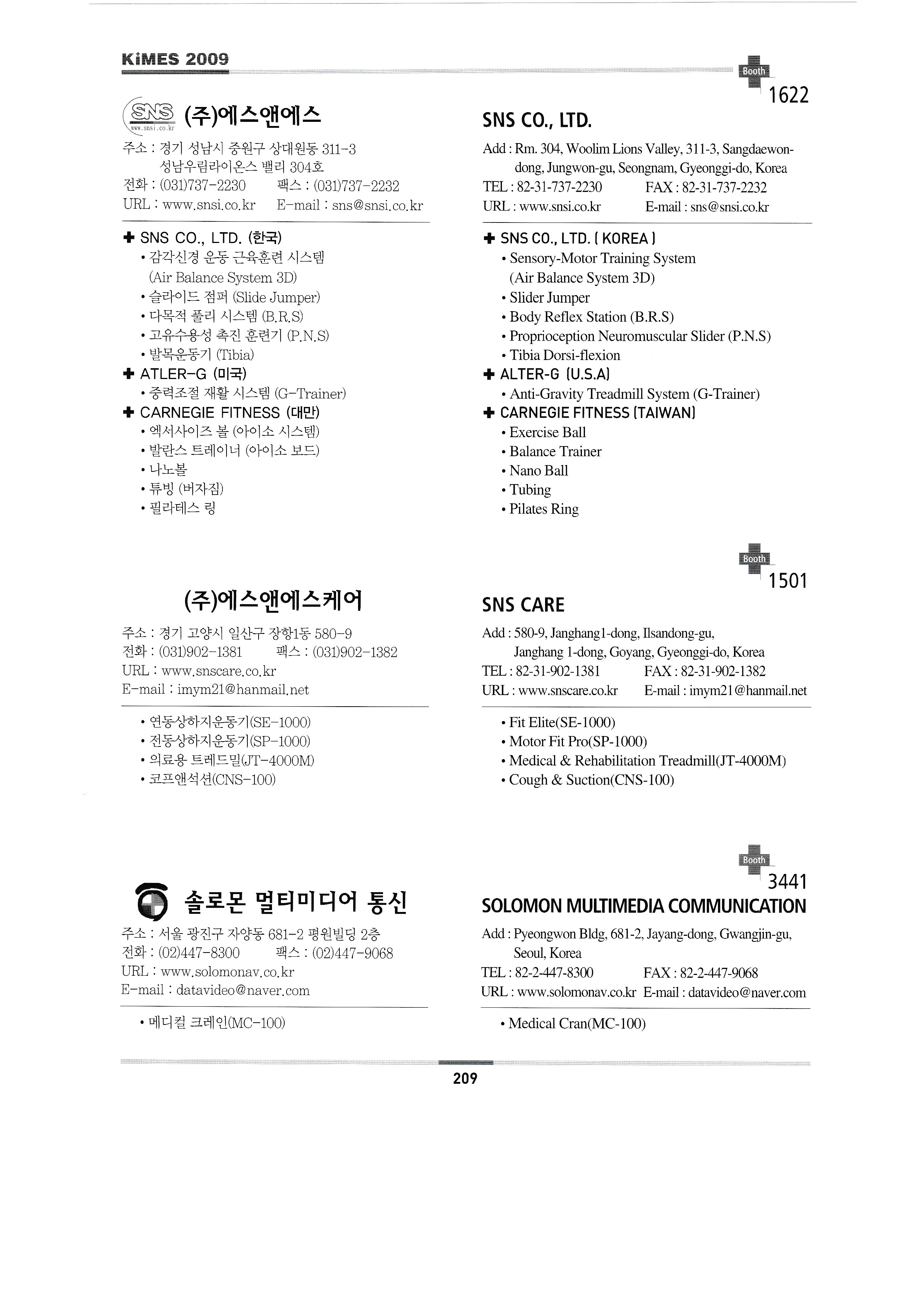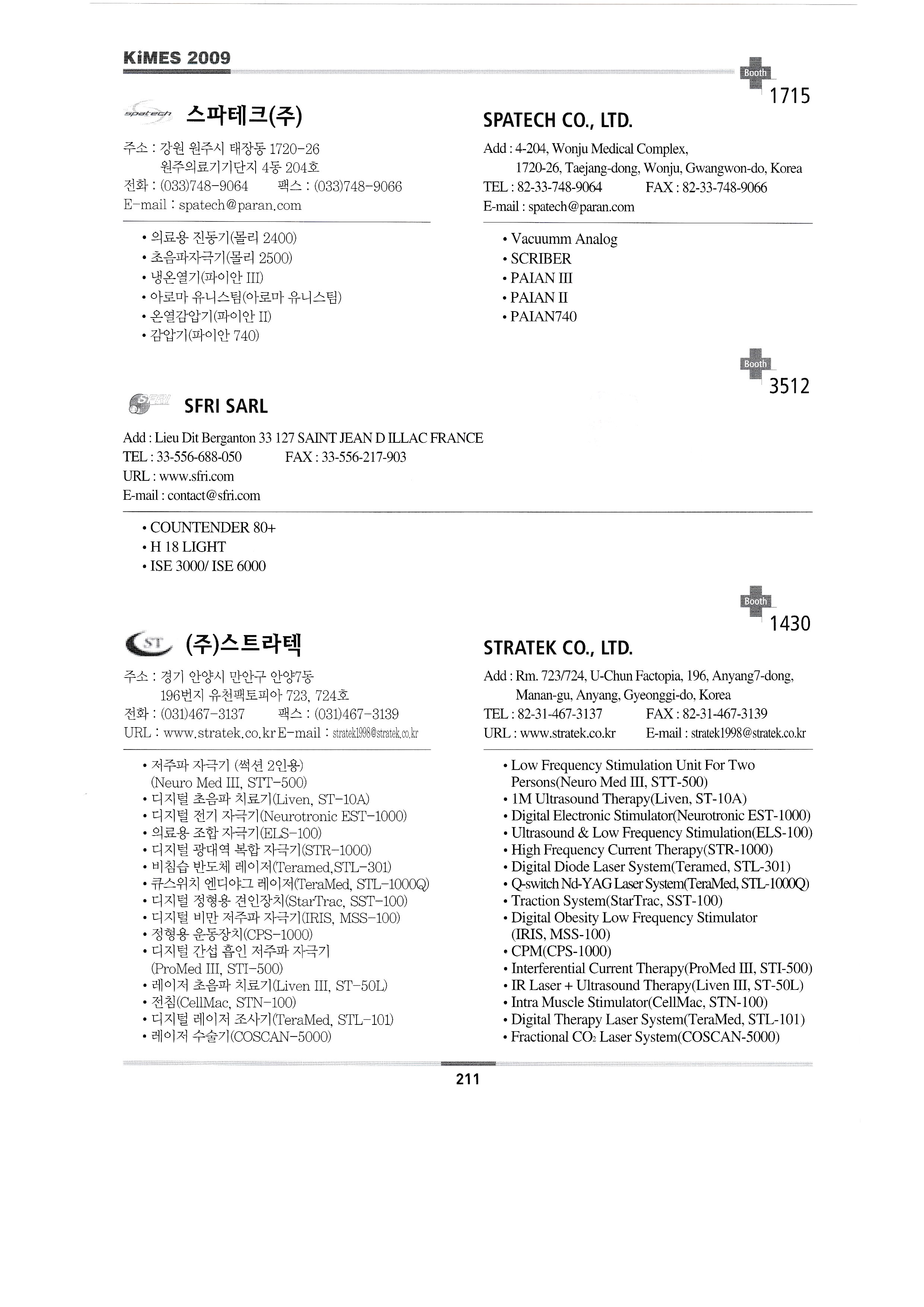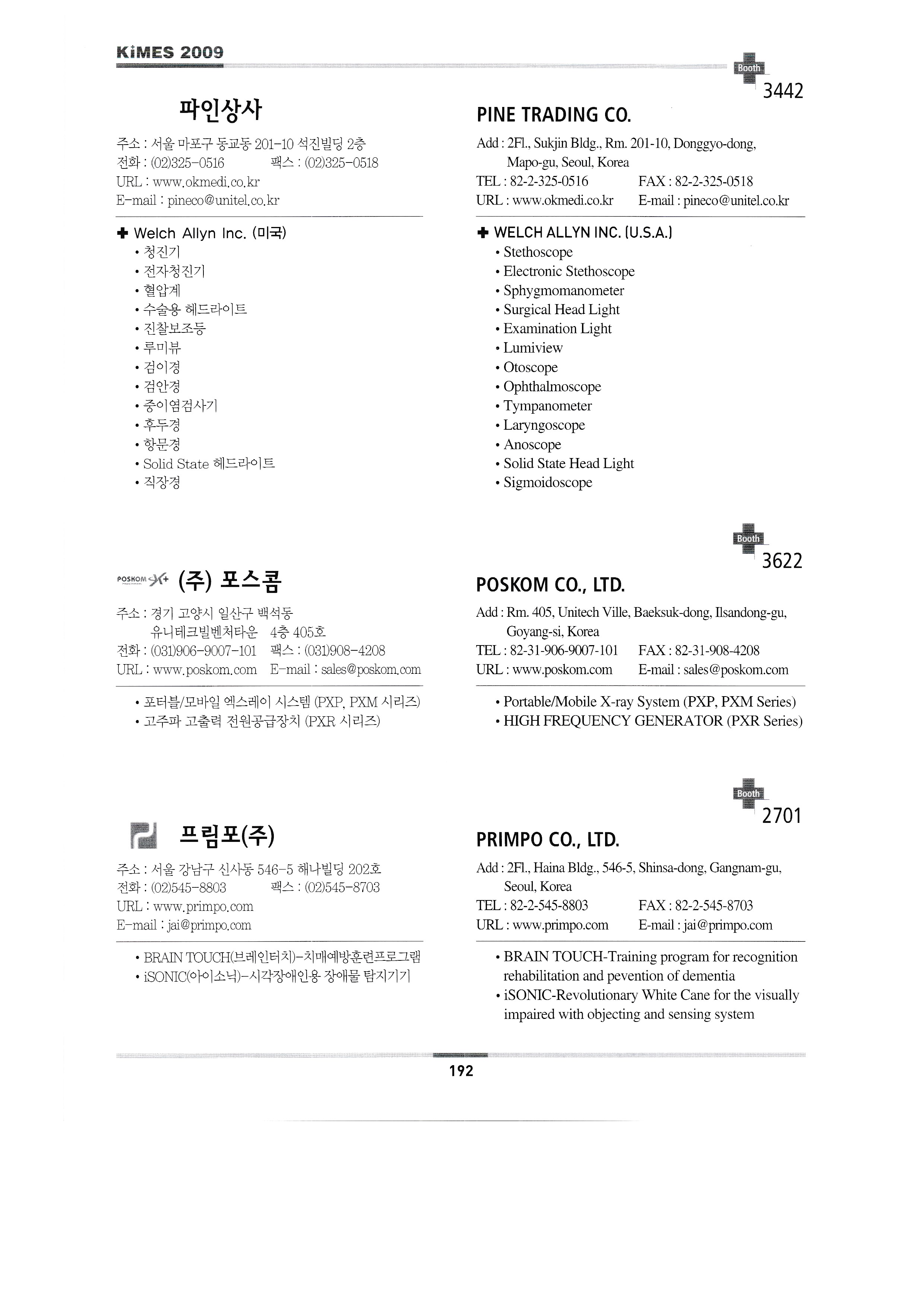 | 미래메딕스 ㈜미래에스앤티 ㈜미소텍B&H 미리 ㈜엠엠에이코리아 명세씨엠케이㈜ ㈜엠케이티 (합)모우메디칼 ㈜MS헬스케어 ㈜앤케어 나가이레벤㈜/주식회사 보보트레이딩 ㈜나노카보나 ㈜나음케어 ㈜네오닥터 네오메드 존 코퍼레이션 네오플라스틱서져리앤드코스메틱인터내셔널 ㈜넷블루 넥슨㈜ ㈜넥스트세이프 놀란바이오 ㈜엔텍 ㈜누가의료기 ㈜오코메드 ㈜오성마이더스 오엠에이 오므론헬스케어㈜ 한마음케어 ㈜옵토바이오메드 ㈜옵토웰 동의대학교 한방실버웰니스사업단 올텍 오릭스 ㈜오씸코리아 ㈜오에스오 ㈜오송라이프 ㈜오스테오시스 오토스테크㈜ ㈜오픈케어 PACIFIC HOSPITAL SUPPLY CO.,LTD. 한국 폴㈜ 피플레이저테크 ㈜파나노믹스 펜실베니아 ㈜피플스 퍼슨메디컬 피닉스비전 ㈜피브트로 ㈜필립스전자 피닉스메카노 코리아㈜ 프러스 ㈜포인트닉스 파인상사 ㈜포스콤 프림포㈜ PRIMESTAR INSTRUMENTS ㈜프로토스 피에스아이㈜ 펄스캠생활과학㈜ 퀸텀메딕스㈜ R.S. 세라코 ㈜알비앤드씨 ㈜리디자인 REED SINOPHARM EXHIBITIONS CO.,LTD. ㈜렙테크 ㈜레베코메디칼 ROSSMAX INTERNATIONAL LTD. 라인메쎄㈜ 로얄전자의료기 RUBBEREX MALAYSIA ㈜로얄메디칼 2009 노후준비& 실버산업박람회 ㈜새한메디텍 ㈜새하늘바이오텍 삼우전자정밀㈜ 삼손 ㈜삼송캐스터 ㈜삼손 삼성보호대 상도메드 ㈜산암텍 세일유프리저 상정상사㈜ 에스씨에이하이진프로덕츠 세인산업 세미텍메드 2009 시니어&장애인 엑스포 ㈜세우 서동무역 신창의료기공업사 신광산업(에스지메드) SHENZHEN BIOCARE ELECTRONICS CO.,LTD. 신화의료기 ㈜신진전자 신신메디테크 신우인터교역 ㈜신용덴탈 지멘스 헬스케어 신우메디칼, 쏠라코리아 ㈜씨텍메디칼 에스케이에스메디칼 ㈜에스엠티 에스엠메디칼테크 (룩소 코리아) ㈜에스앤에스 ㈜에스앤에스케어 솔로몬 멀티미디어 통신 ㈜썸텍 ㈜수일개발 스타빌루스(효일이엔티) 스파테크㈜ SFRI SARL ㈜스트라텍 STERYLAB SRL 썬인터내셔날/두바이국제의료전 태양기계㈜ 성진 주식회사 성진시무라 ㈜성환이엔비 성광메디텍 썬메디텍㈜ SUNPEX TECHNOLOGY CO.,LTD. 성심의료산업㈜ 선우 순우리통상 |